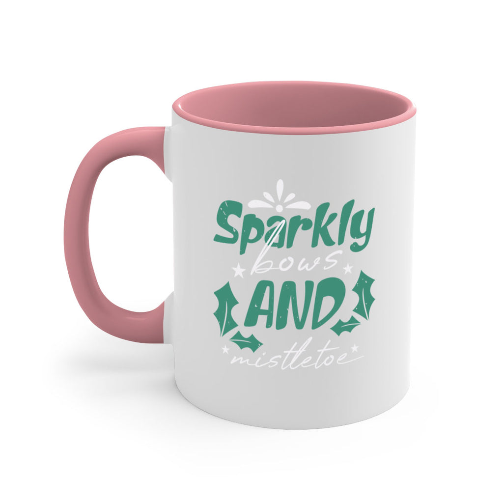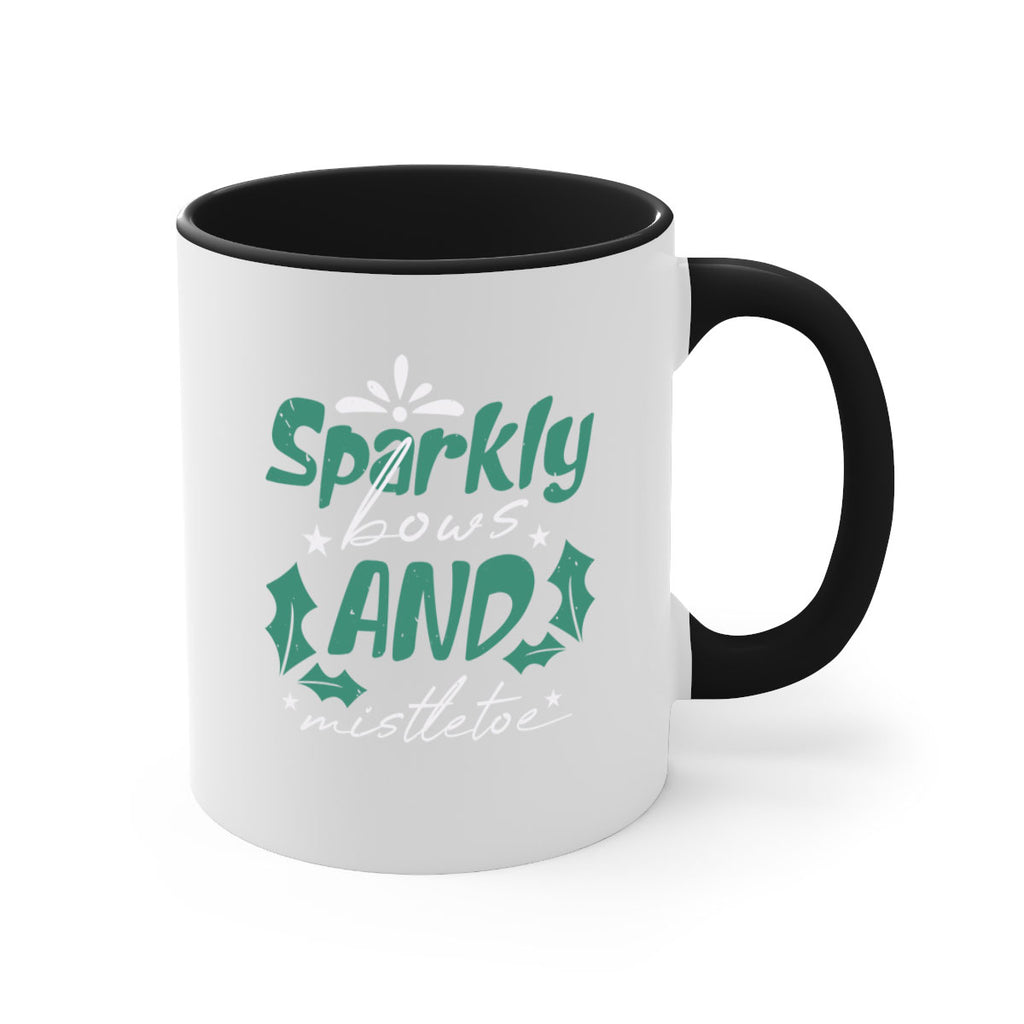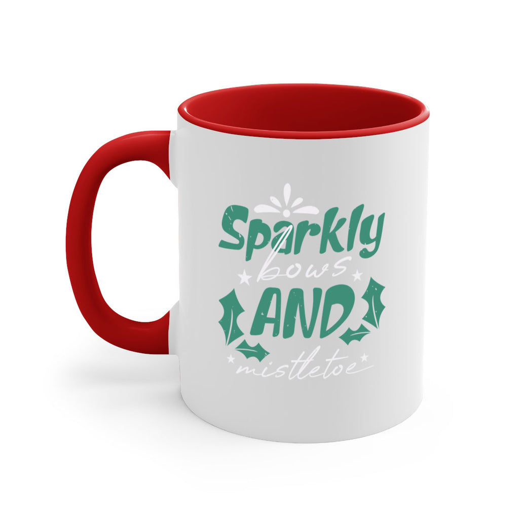 Enjoy the sparkly bows and mistletoe 357# Mug . Here to bring big gulps of coffee, Tea or any beverage and style, these two-tone coffee mugs help people around the world start the day just right. Choose between 5 different color options and 2 sizes to best complement the design. Each mug comes with a colored handle, a colored interior, and a classy, glossy finish so that your mugs become an instant favorite.