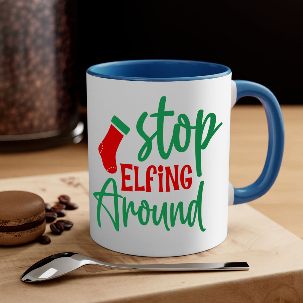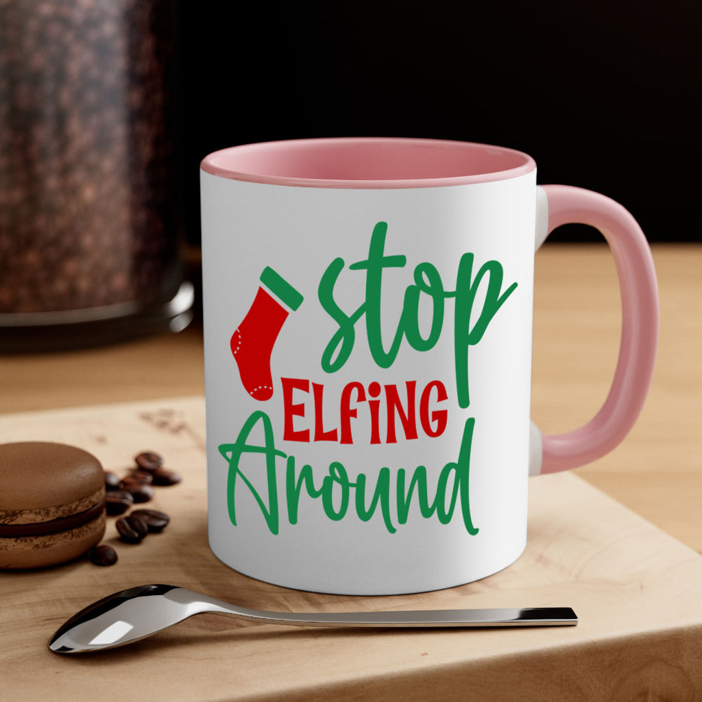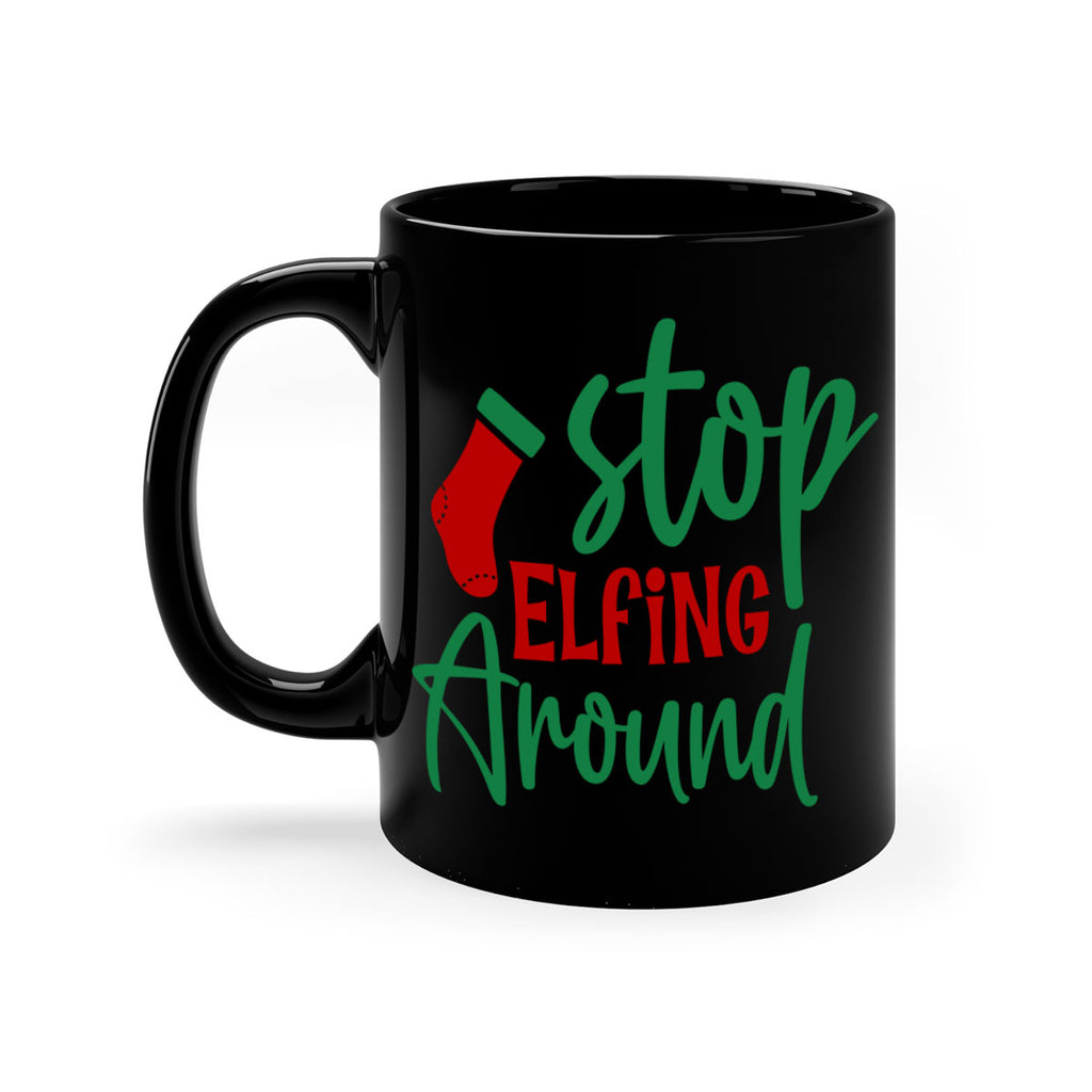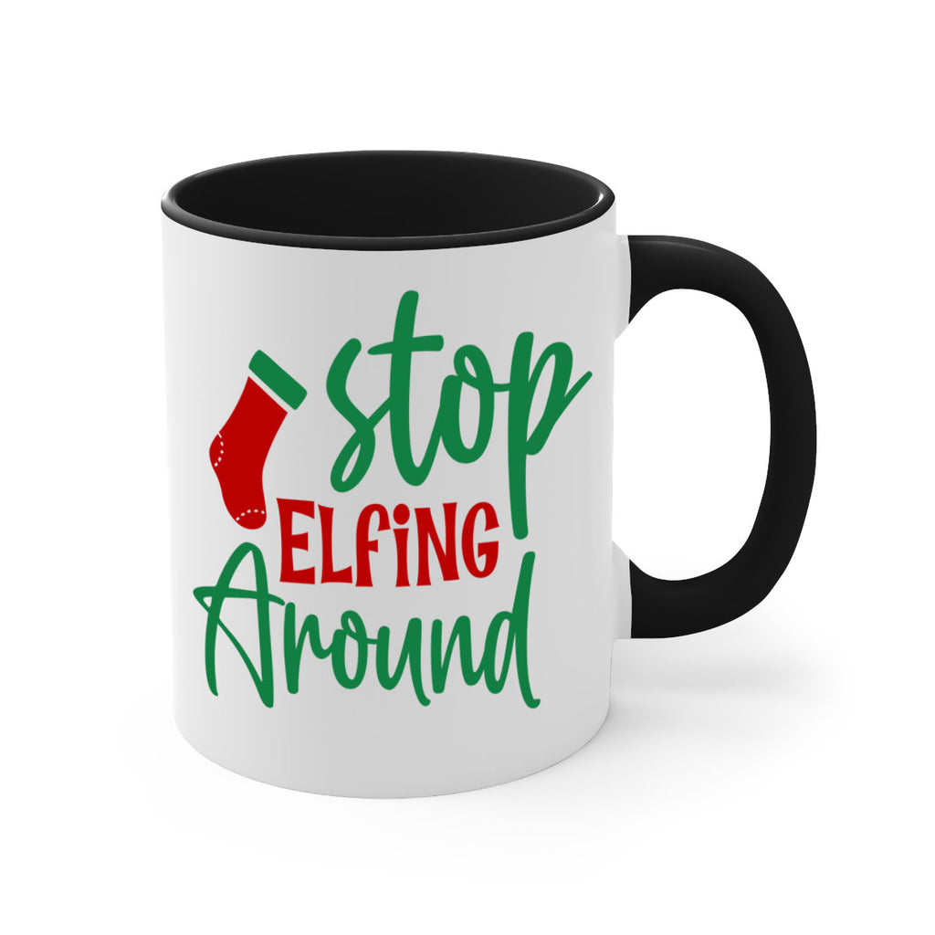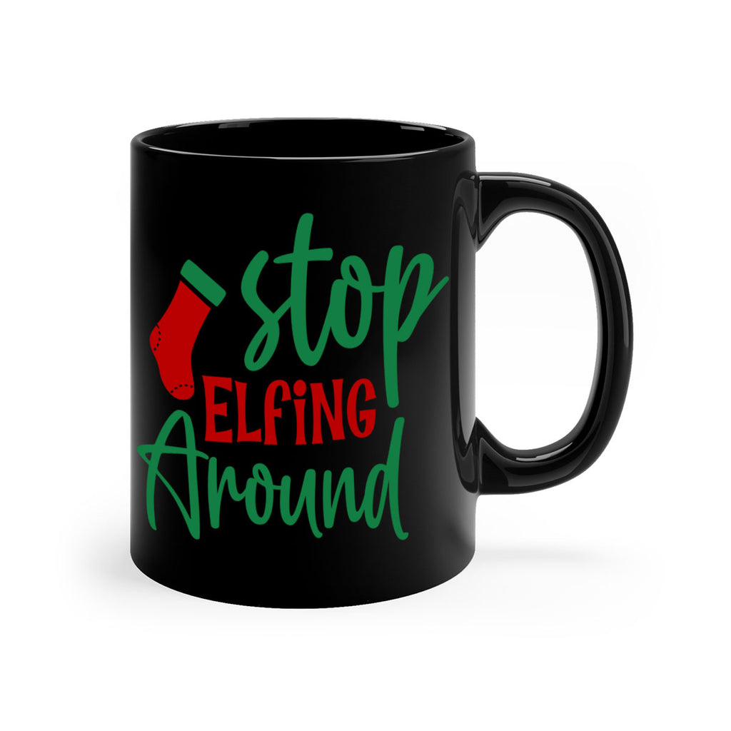 Enjoy the stop elfing around style 1183# Mug . Here to bring big gulps of coffee, Tea or any beverage and style, these two-tone coffee mugs help people around the world start the day just right. Choose between 5 different color options and 2 sizes to best complement the design. Each mug comes with a colored handle, a colored interior, and a classy, glossy finish so that your mugs become an instant favorite.