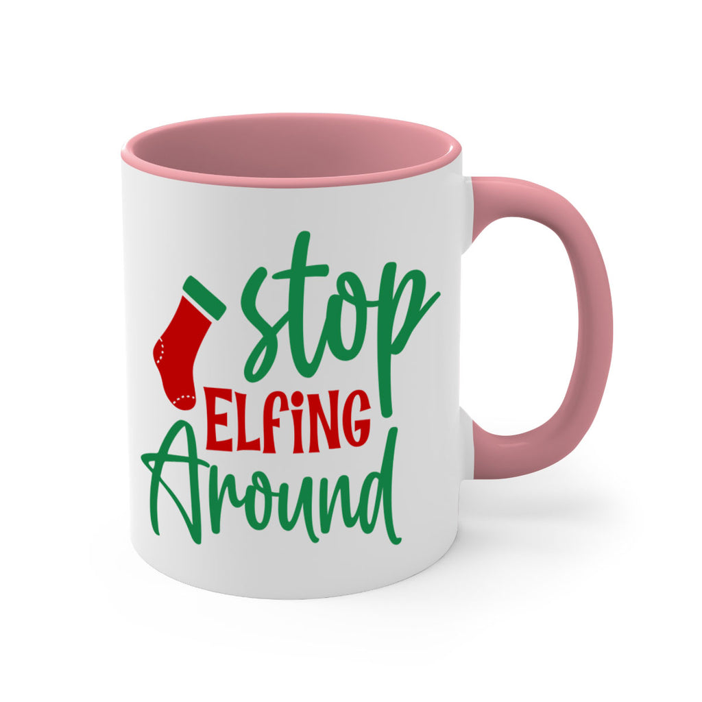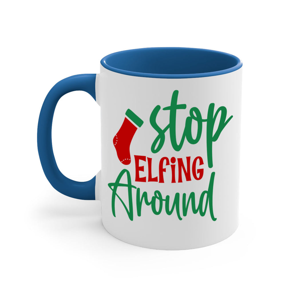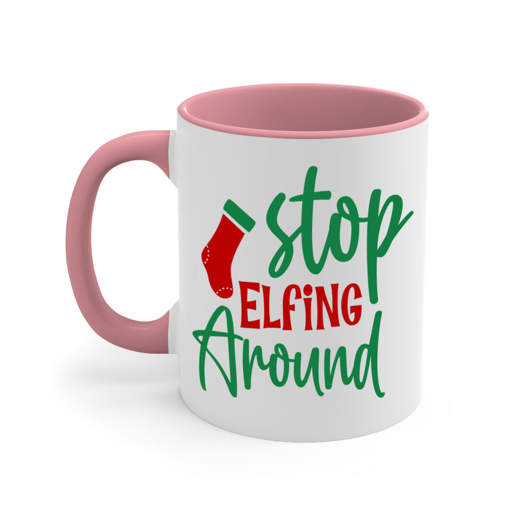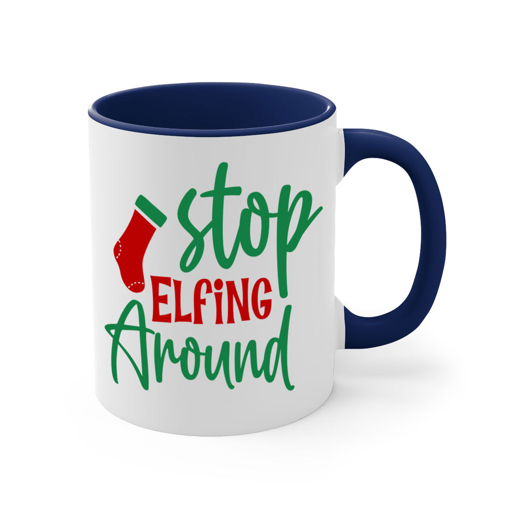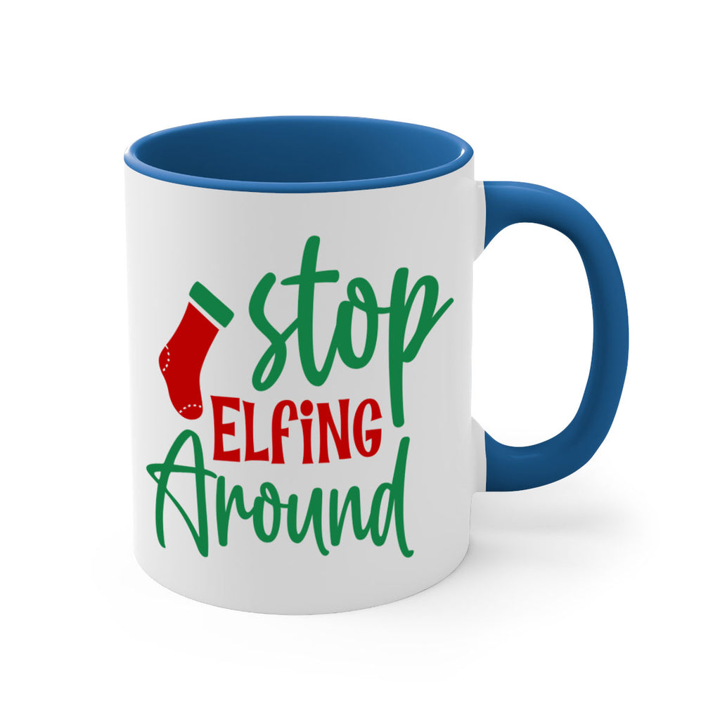 Enjoy the stop elfing around style 1183# Mug . Here to bring big gulps of coffee, Tea or any beverage and style, these two-tone coffee mugs help people around the world start the day just right. Choose between 5 different color options and 2 sizes to best complement the design. Each mug comes with a colored handle, a colored interior, and a classy, glossy finish so that your mugs become an instant favorite.