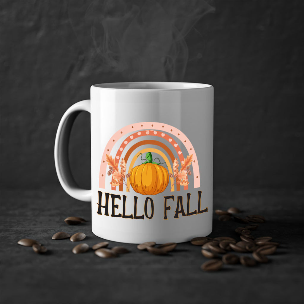 Enjoy the Fall Boho Rainbow 91# Mug . Here to bring big gulps of coffee, Tea or any beverage and style, these two-tone coffee mugs help people around the world start the day just right. Choose between 5 different color options and 2 sizes to best complement the design. Each mug comes with a colored handle, a colored interior, and a classy, glossy finish so that your mugs become an instant favorite.