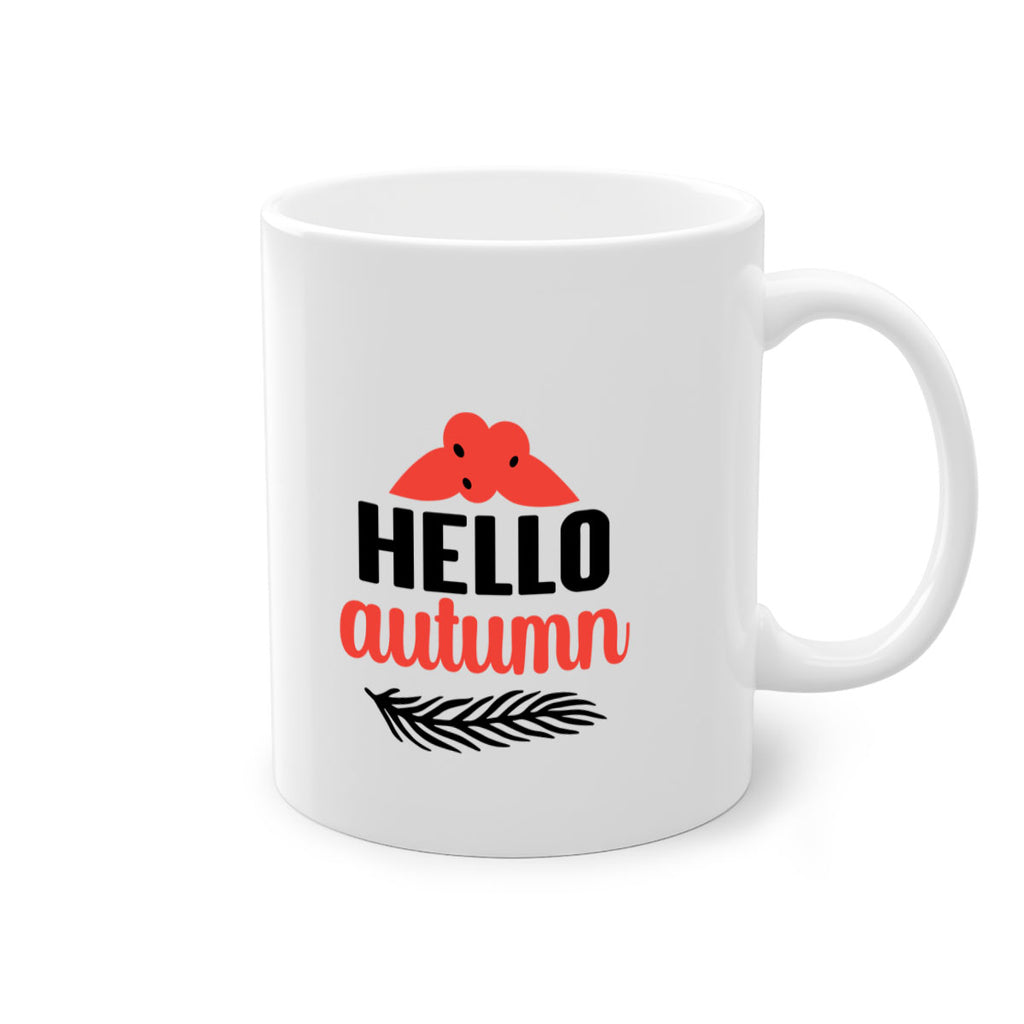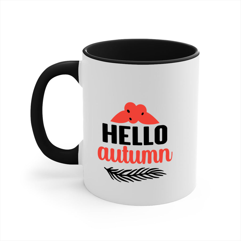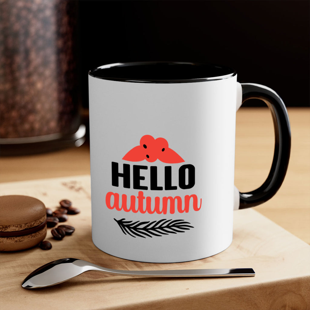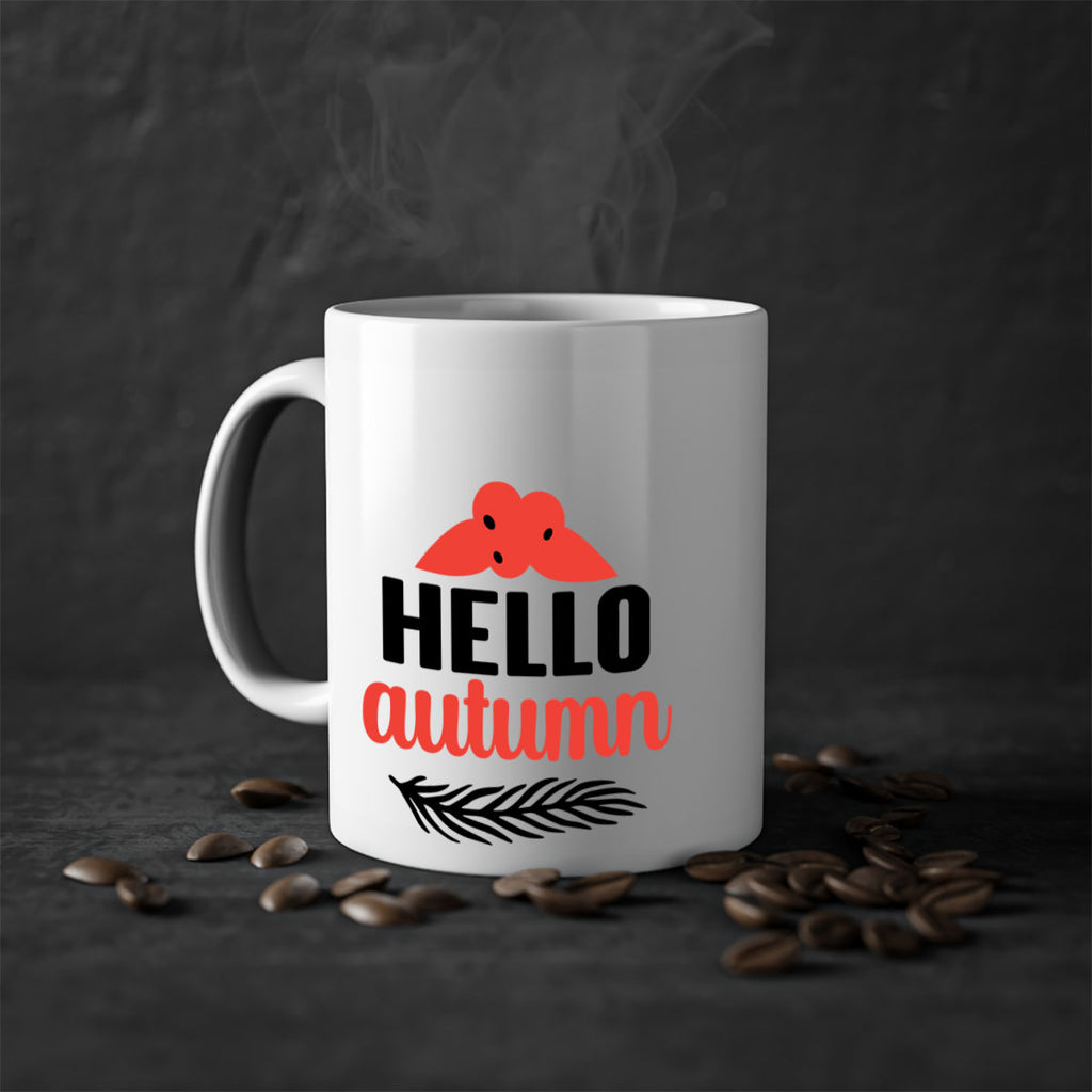 Enjoy the Hello autumn 269# Mug . Here to bring big gulps of coffee, Tea or any beverage and style, these two-tone coffee mugs help people around the world start the day just right. Choose between 5 different color options and 2 sizes to best complement the design. Each mug comes with a colored handle, a colored interior, and a classy, glossy finish so that your mugs become an instant favorite.