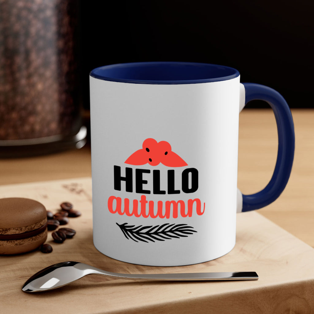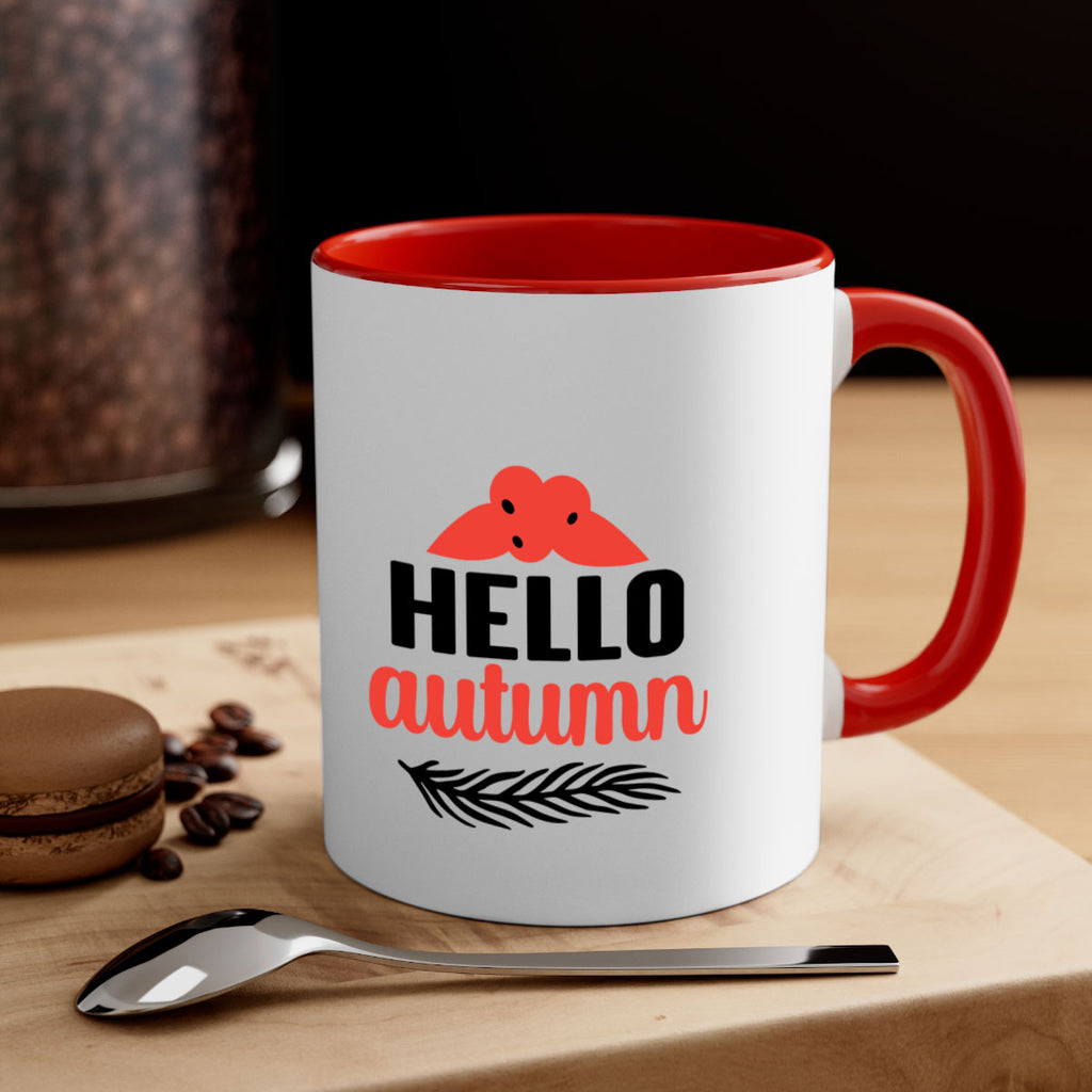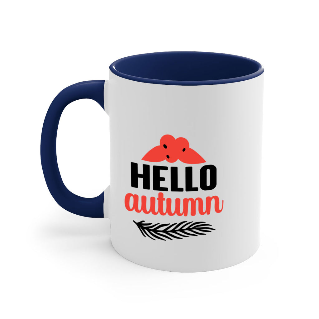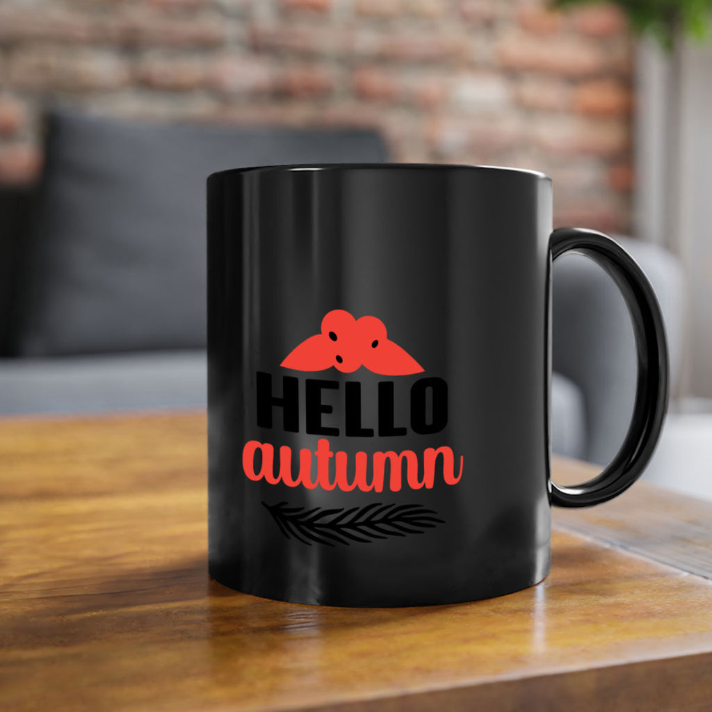 Enjoy the Hello autumn 269# Mug . Here to bring big gulps of coffee, Tea or any beverage and style, these two-tone coffee mugs help people around the world start the day just right. Choose between 5 different color options and 2 sizes to best complement the design. Each mug comes with a colored handle, a colored interior, and a classy, glossy finish so that your mugs become an instant favorite.
