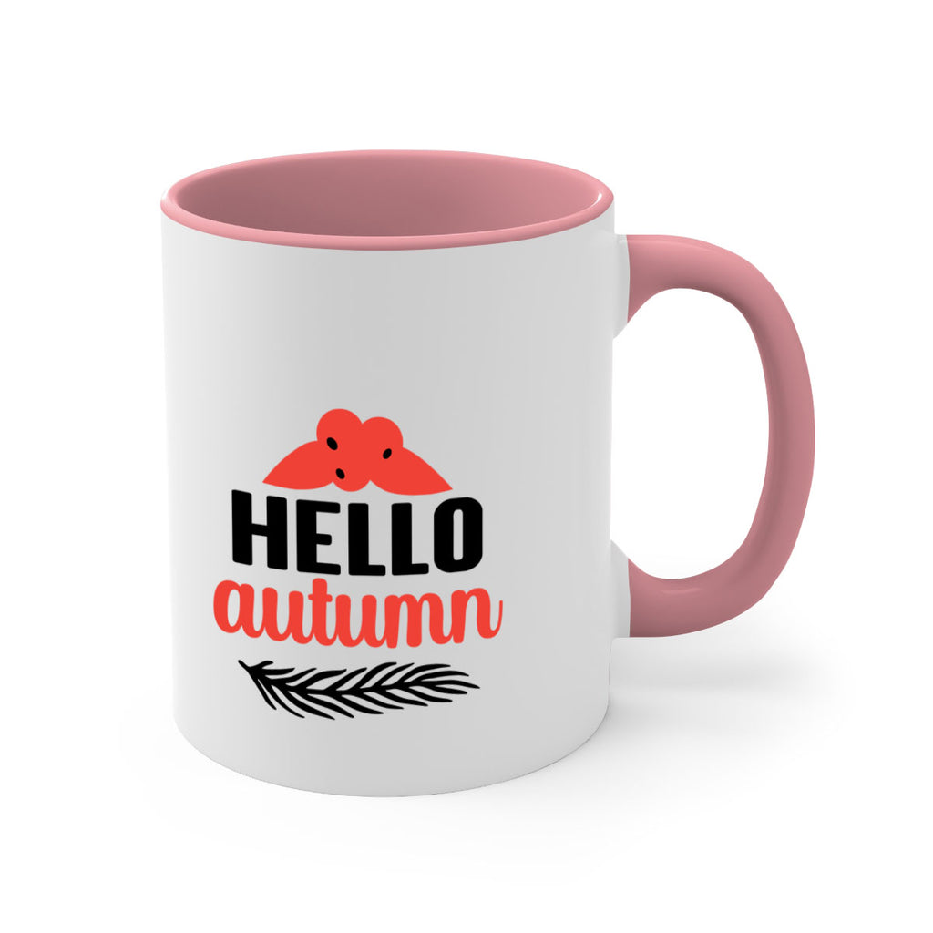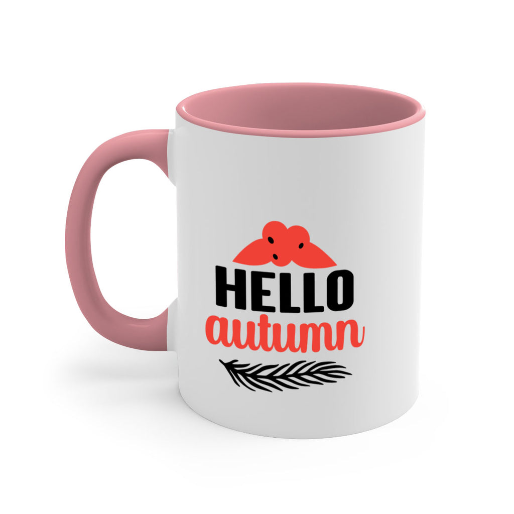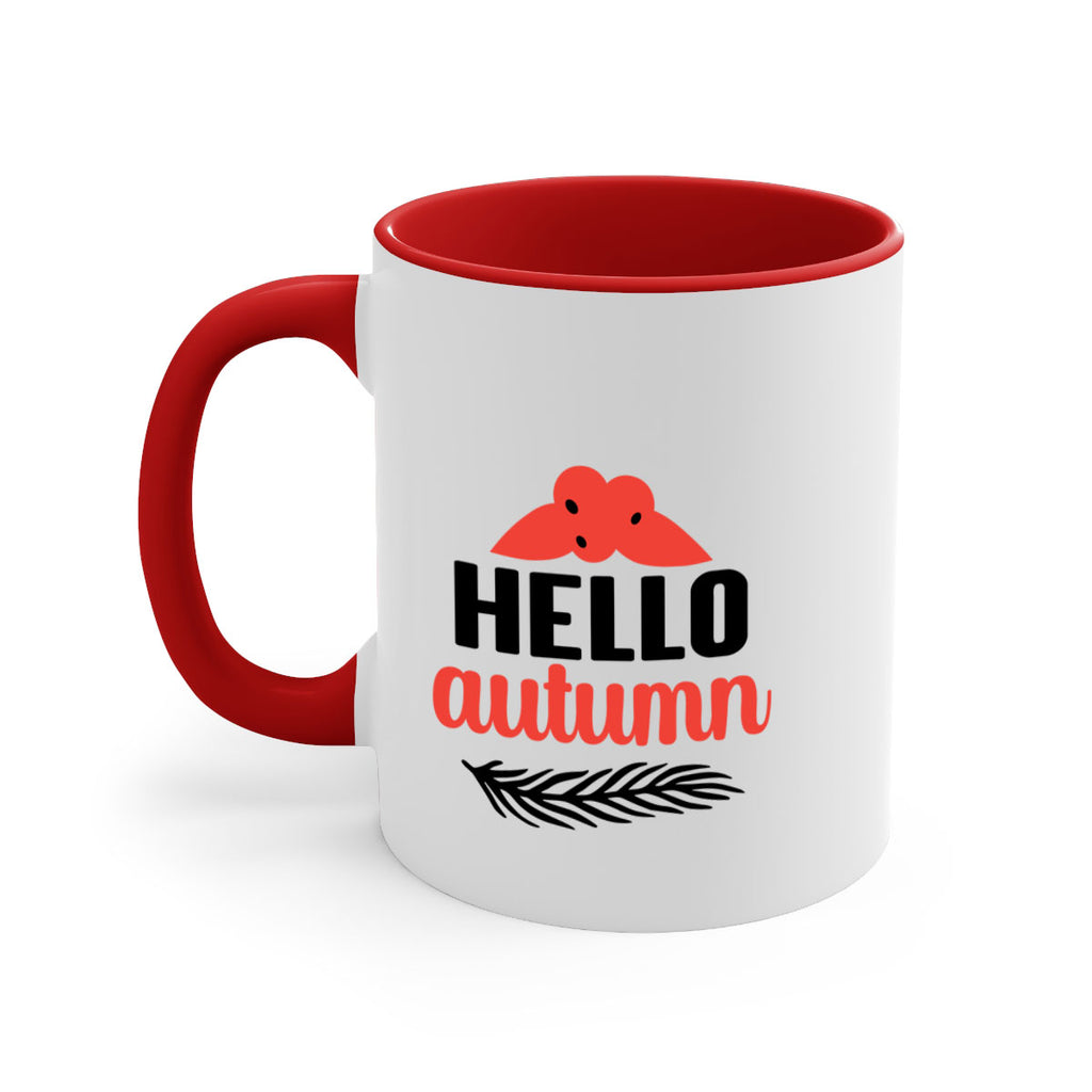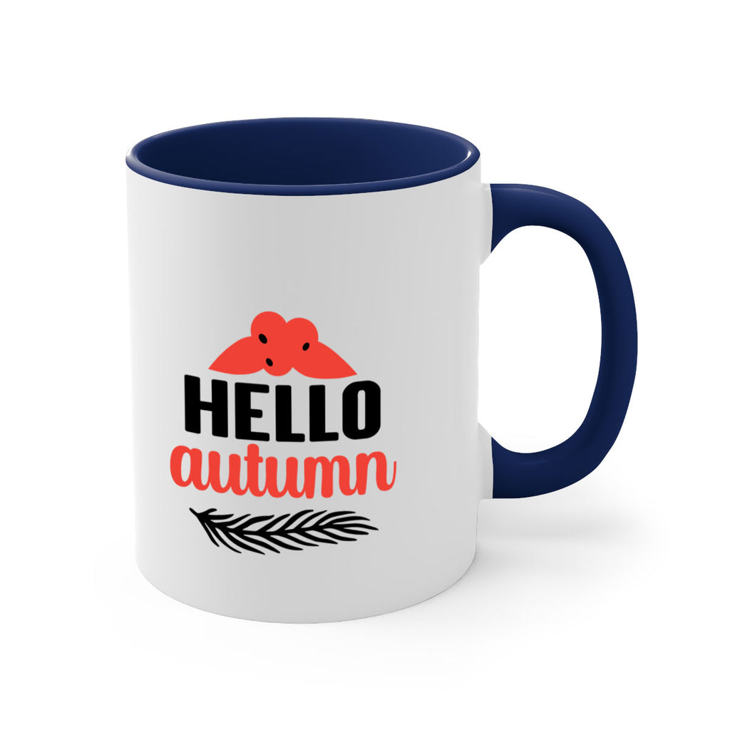 Enjoy the Hello autumn 269# Mug . Here to bring big gulps of coffee, Tea or any beverage and style, these two-tone coffee mugs help people around the world start the day just right. Choose between 5 different color options and 2 sizes to best complement the design. Each mug comes with a colored handle, a colored interior, and a classy, glossy finish so that your mugs become an instant favorite.
