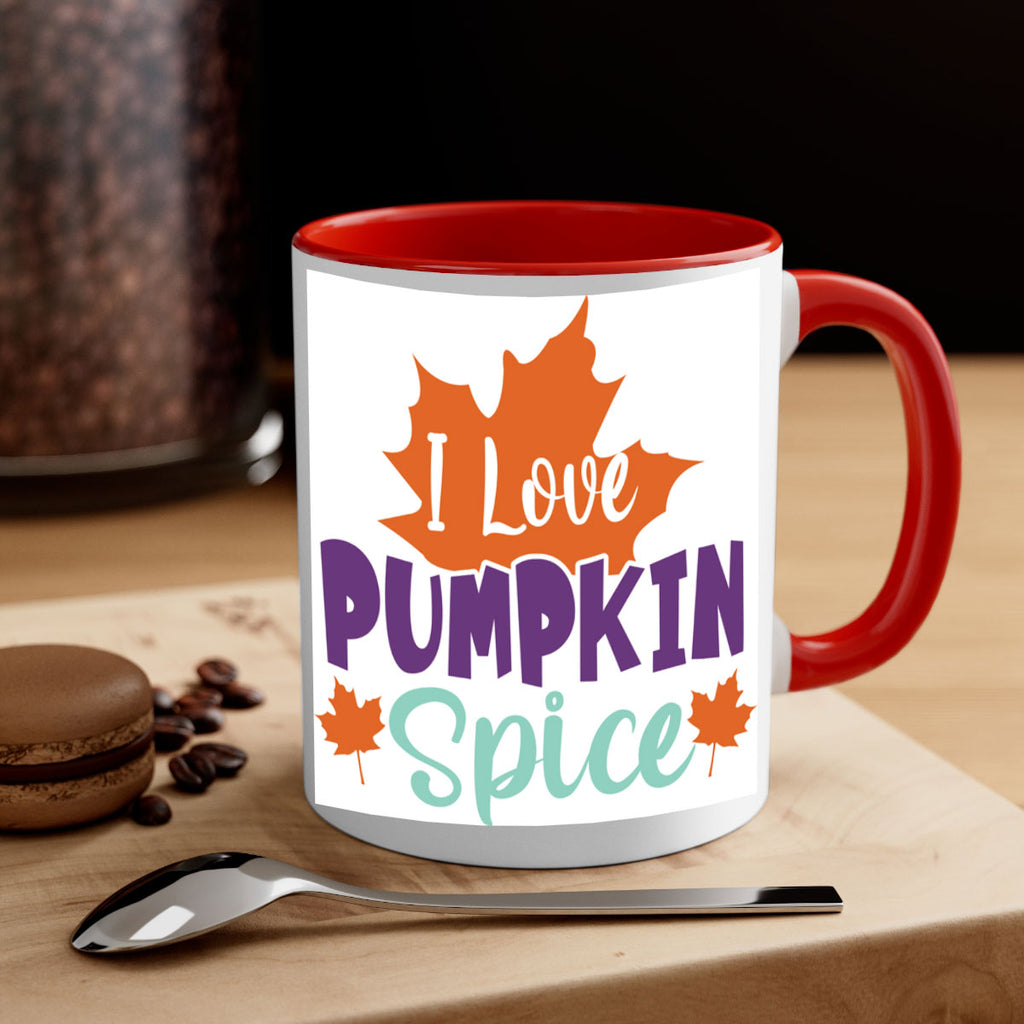 Enjoy the ILovePumpkinSpice 349# Mug . Here to bring big gulps of coffee, Tea or any beverage and style, these two-tone coffee mugs help people around the world start the day just right. Choose between 5 different color options and 2 sizes to best complement the design. Each mug comes with a colored handle, a colored interior, and a classy, glossy finish so that your mugs become an instant favorite.