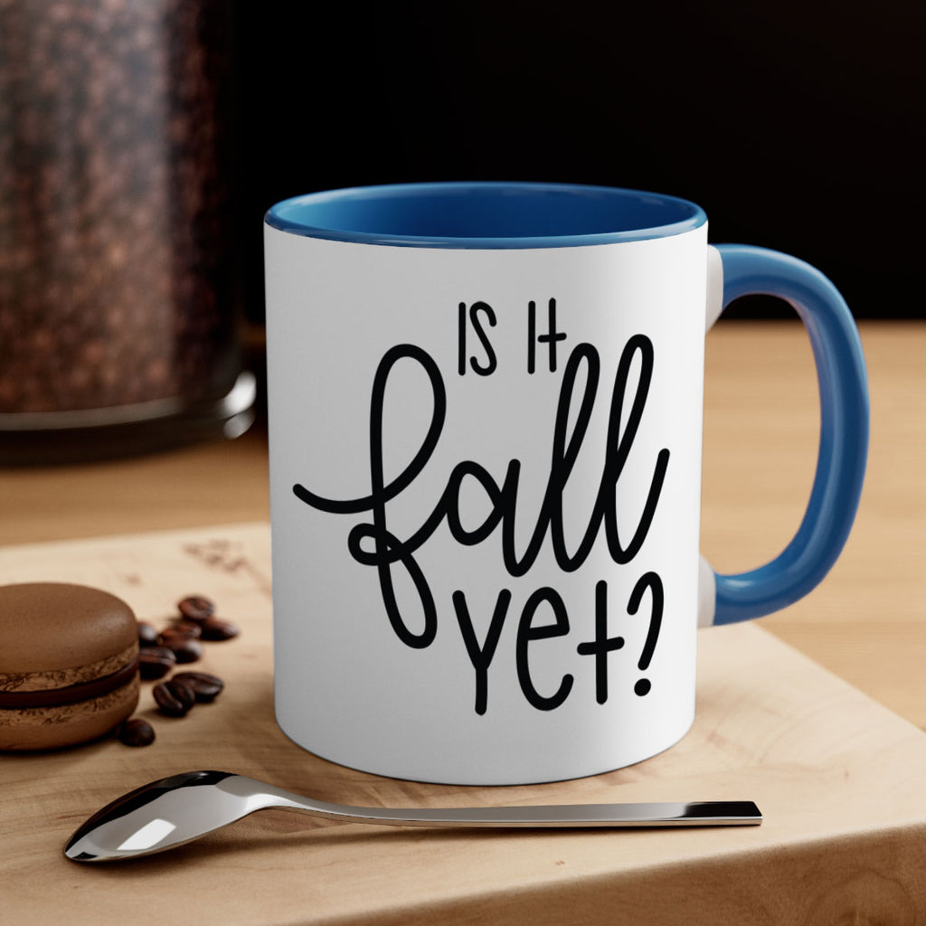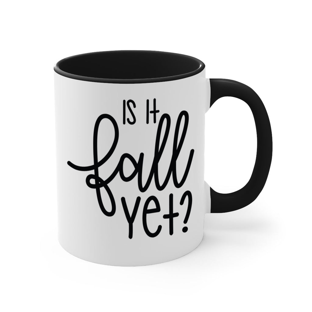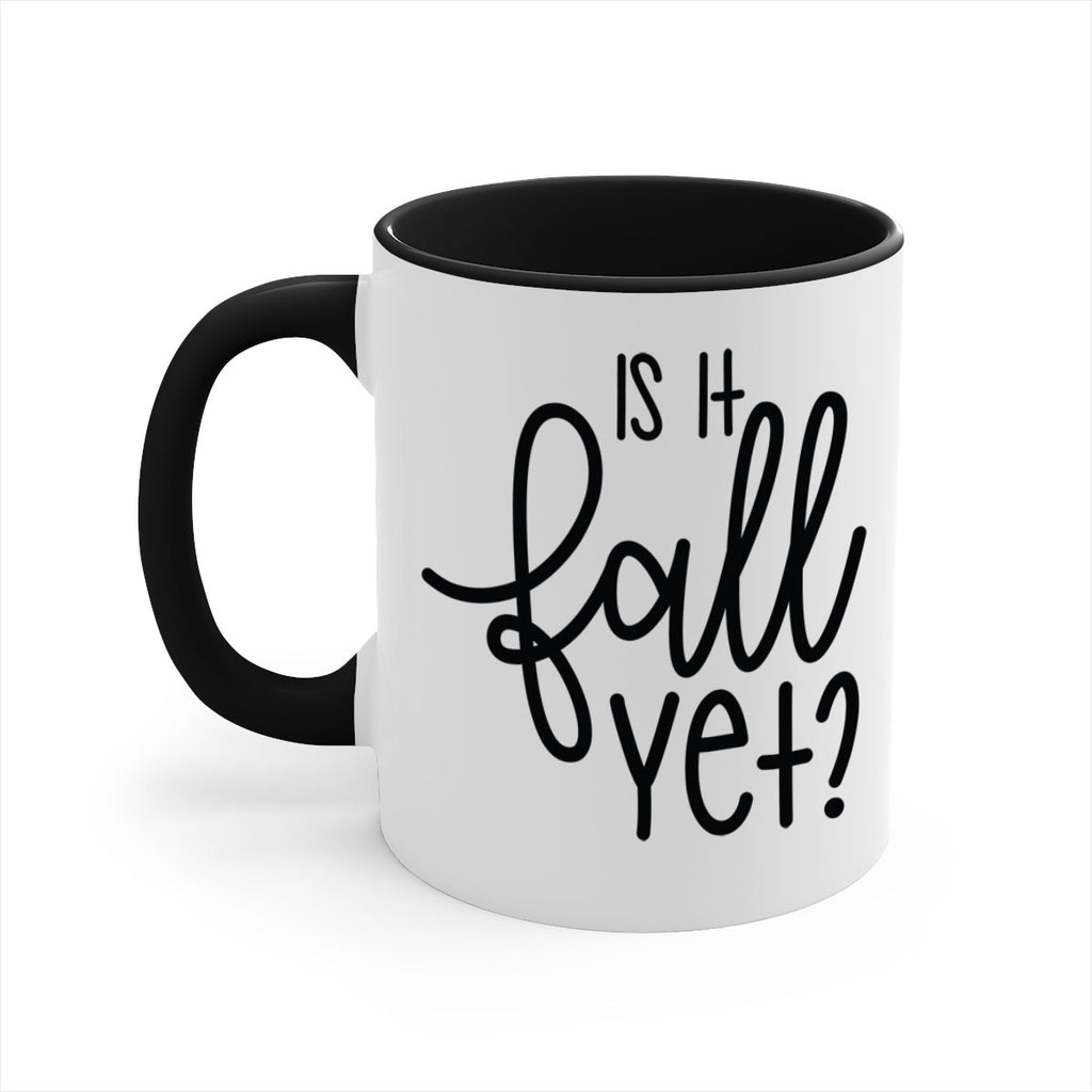 Enjoy the Is It Fall Yet 356# Mug . Here to bring big gulps of coffee, Tea or any beverage and style, these two-tone coffee mugs help people around the world start the day just right. Choose between 5 different color options and 2 sizes to best complement the design. Each mug comes with a colored handle, a colored interior, and a classy, glossy finish so that your mugs become an instant favorite.