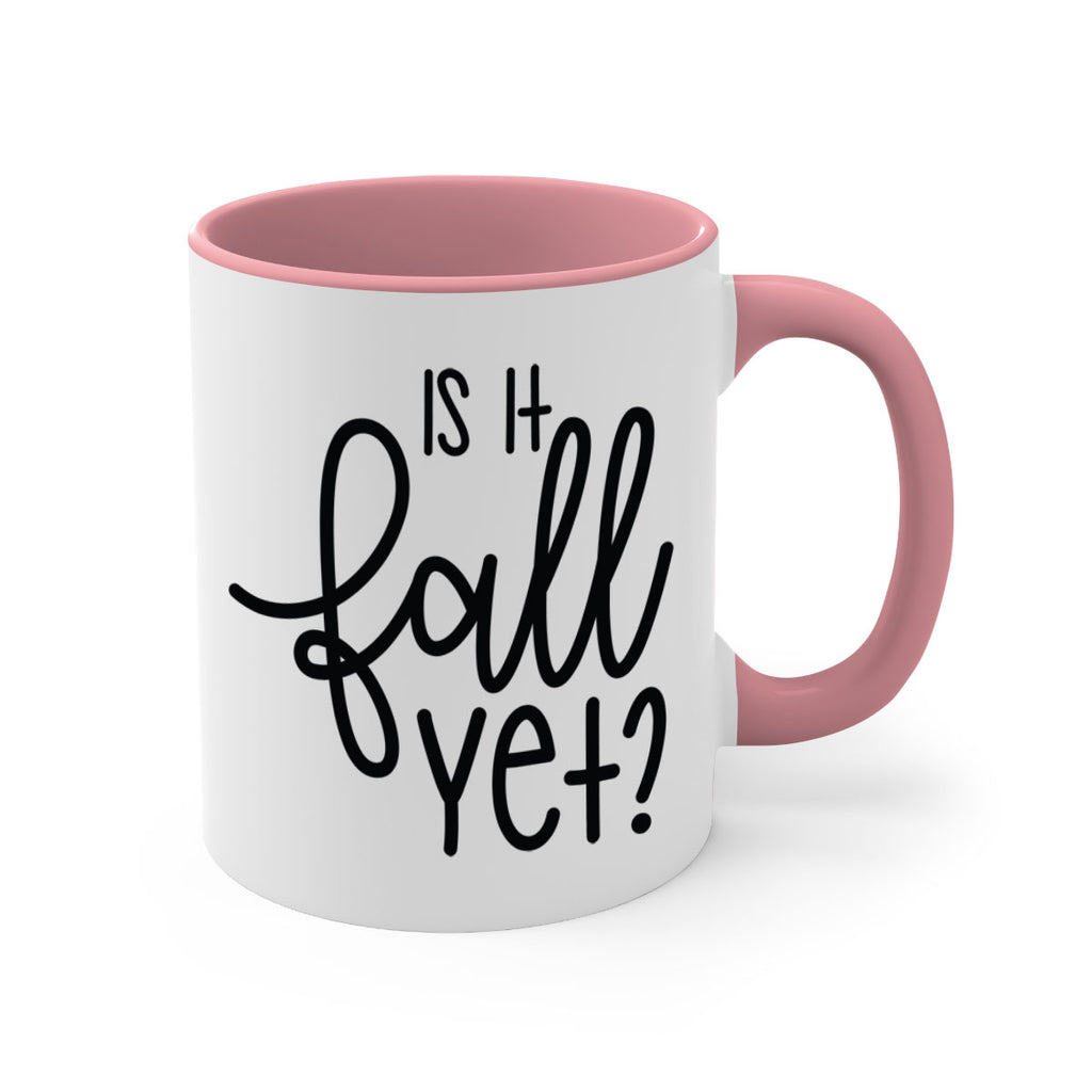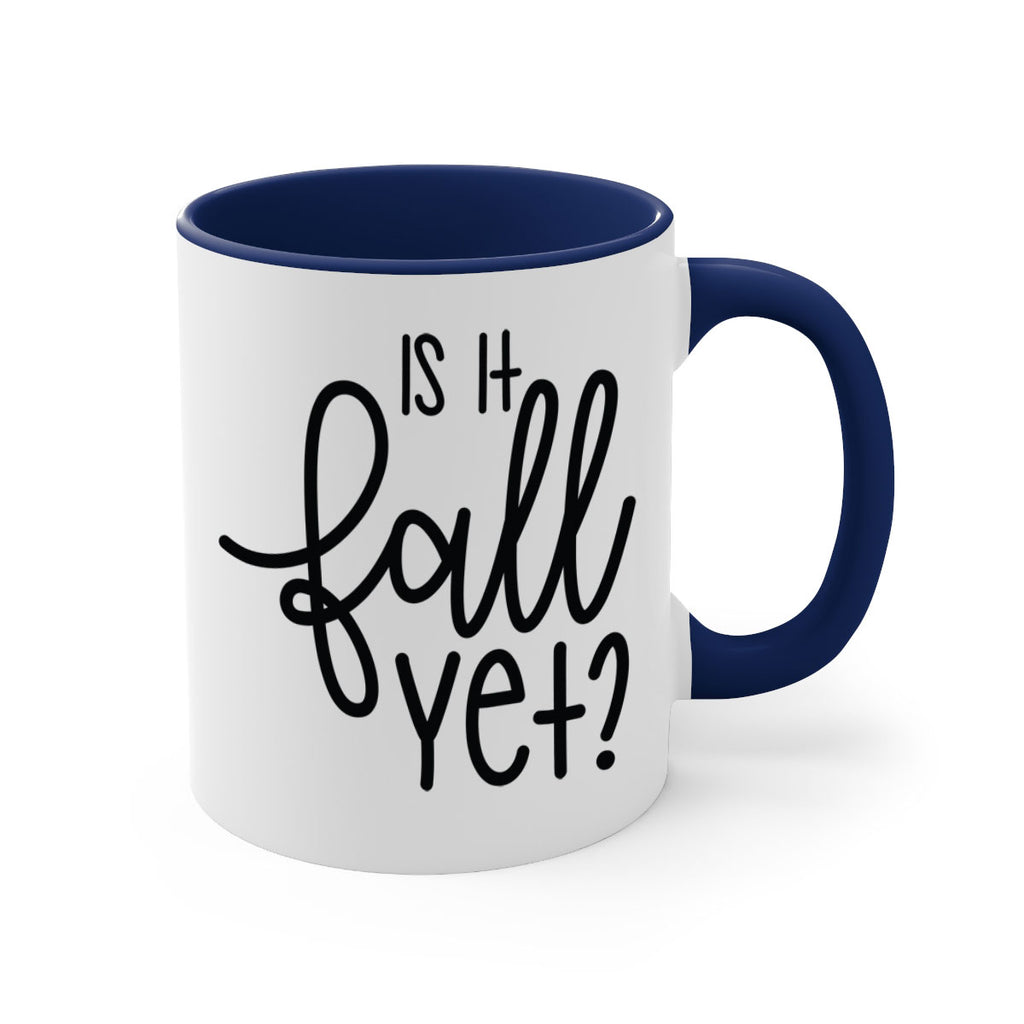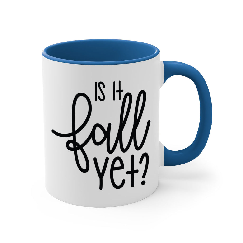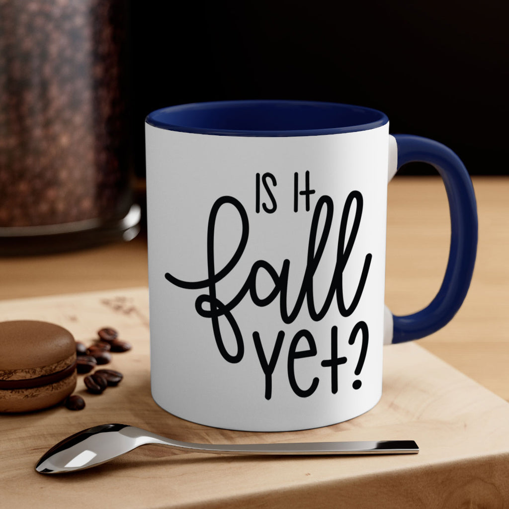 Enjoy the Is It Fall Yet 356# Mug . Here to bring big gulps of coffee, Tea or any beverage and style, these two-tone coffee mugs help people around the world start the day just right. Choose between 5 different color options and 2 sizes to best complement the design. Each mug comes with a colored handle, a colored interior, and a classy, glossy finish so that your mugs become an instant favorite.