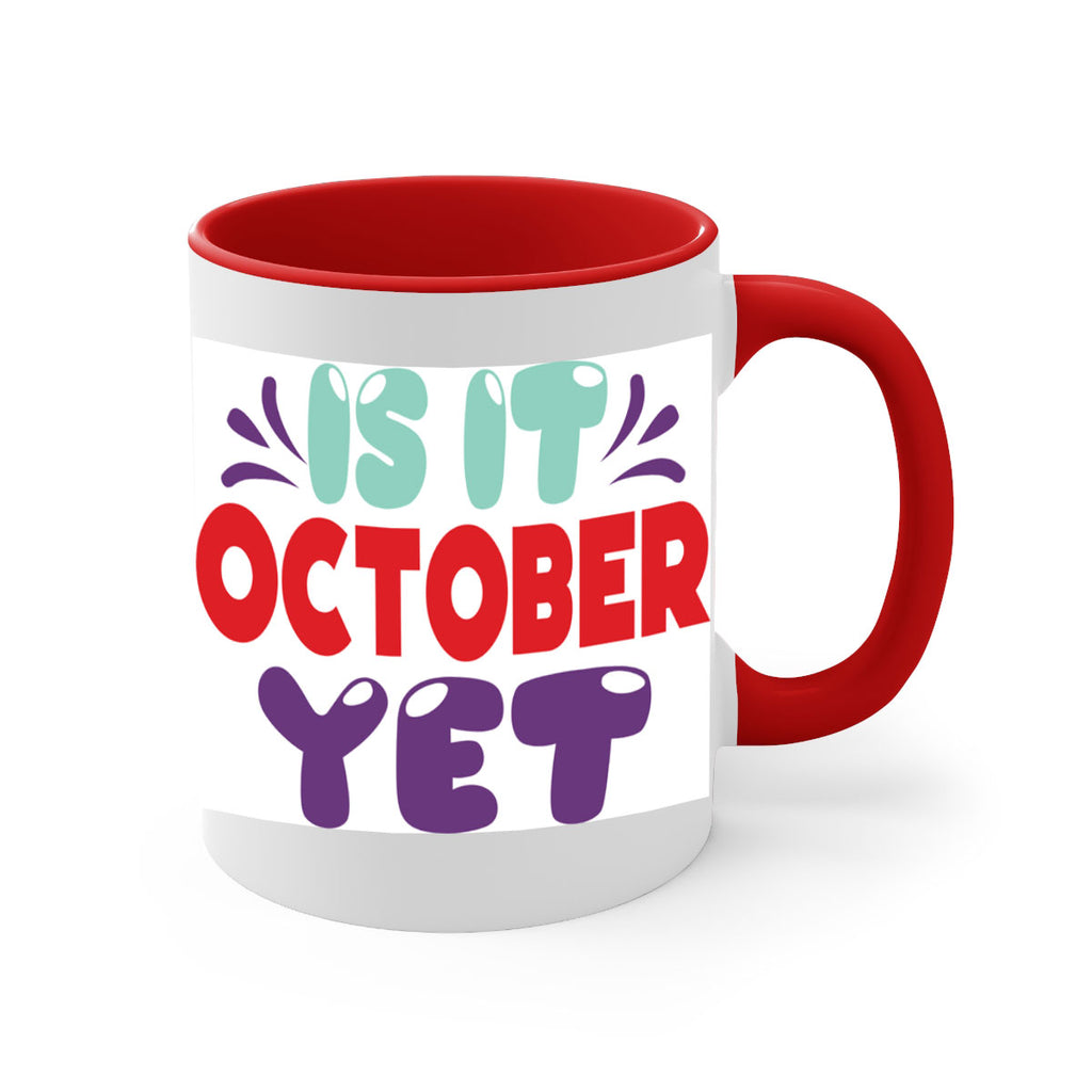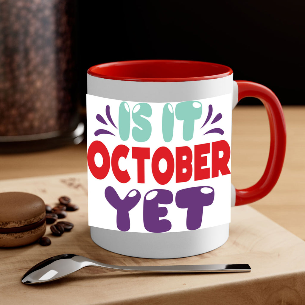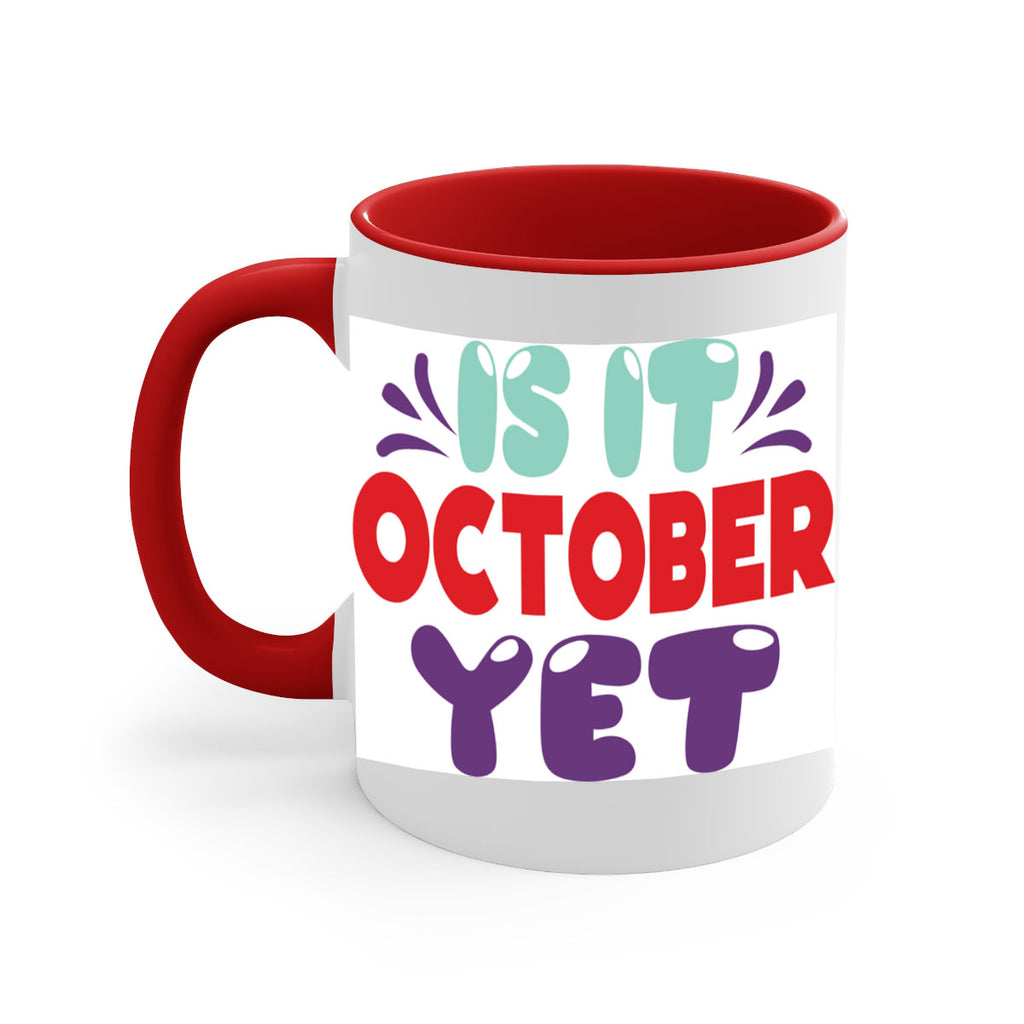 Enjoy the IsItOctoberYet 358# Mug . Here to bring big gulps of coffee, Tea or any beverage and style, these two-tone coffee mugs help people around the world start the day just right. Choose between 5 different color options and 2 sizes to best complement the design. Each mug comes with a colored handle, a colored interior, and a classy, glossy finish so that your mugs become an instant favorite.