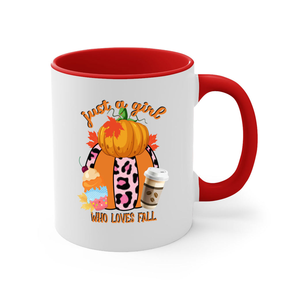 Enjoy the Just a Girl Who Loves Fall 383# Mug . Here to bring big gulps of coffee, Tea or any beverage and style, these two-tone coffee mugs help people around the world start the day just right. Choose between 5 different color options and 2 sizes to best complement the design. Each mug comes with a colored handle, a colored interior, and a classy, glossy finish so that your mugs become an instant favorite.
