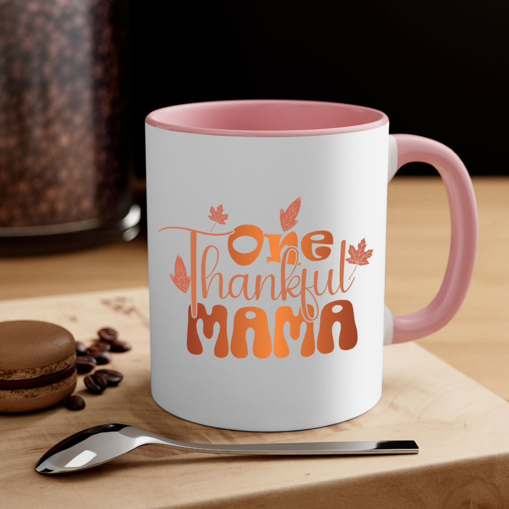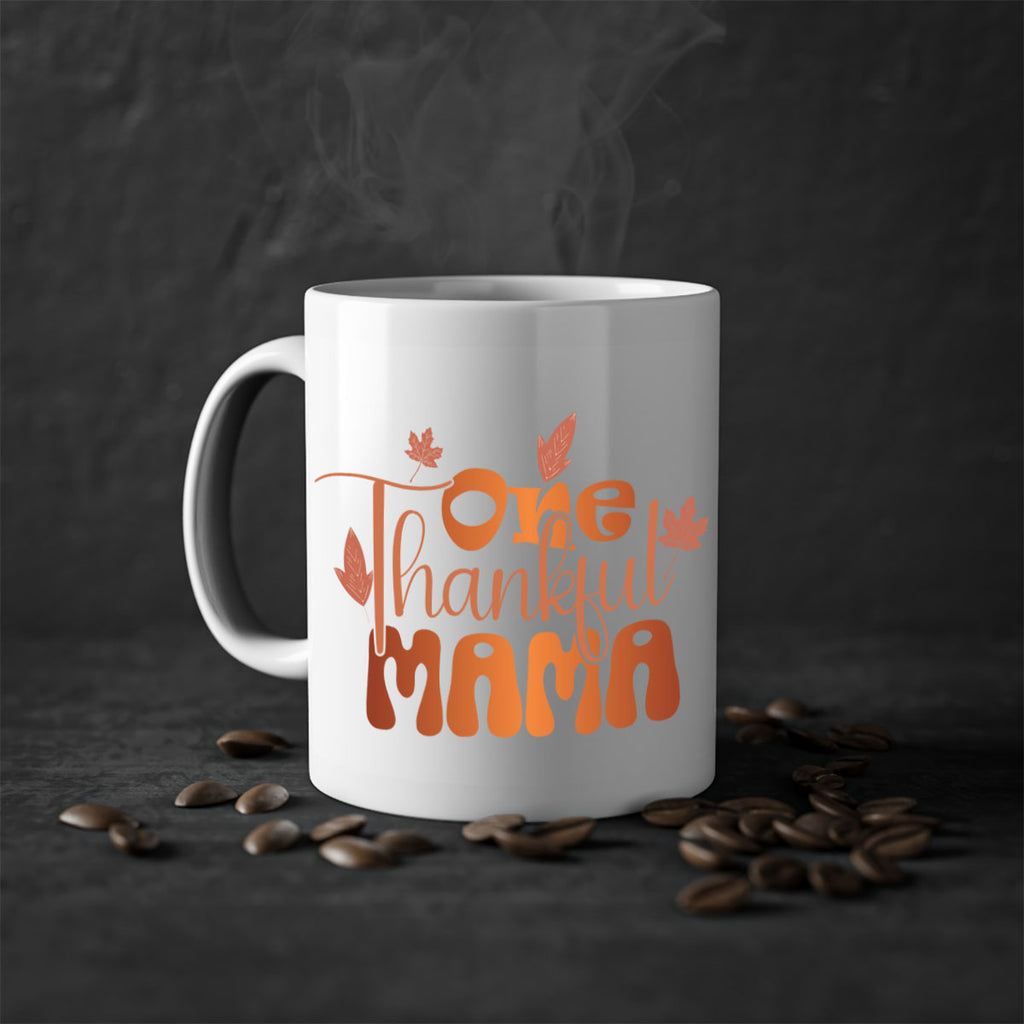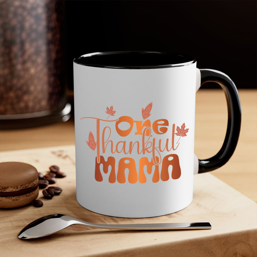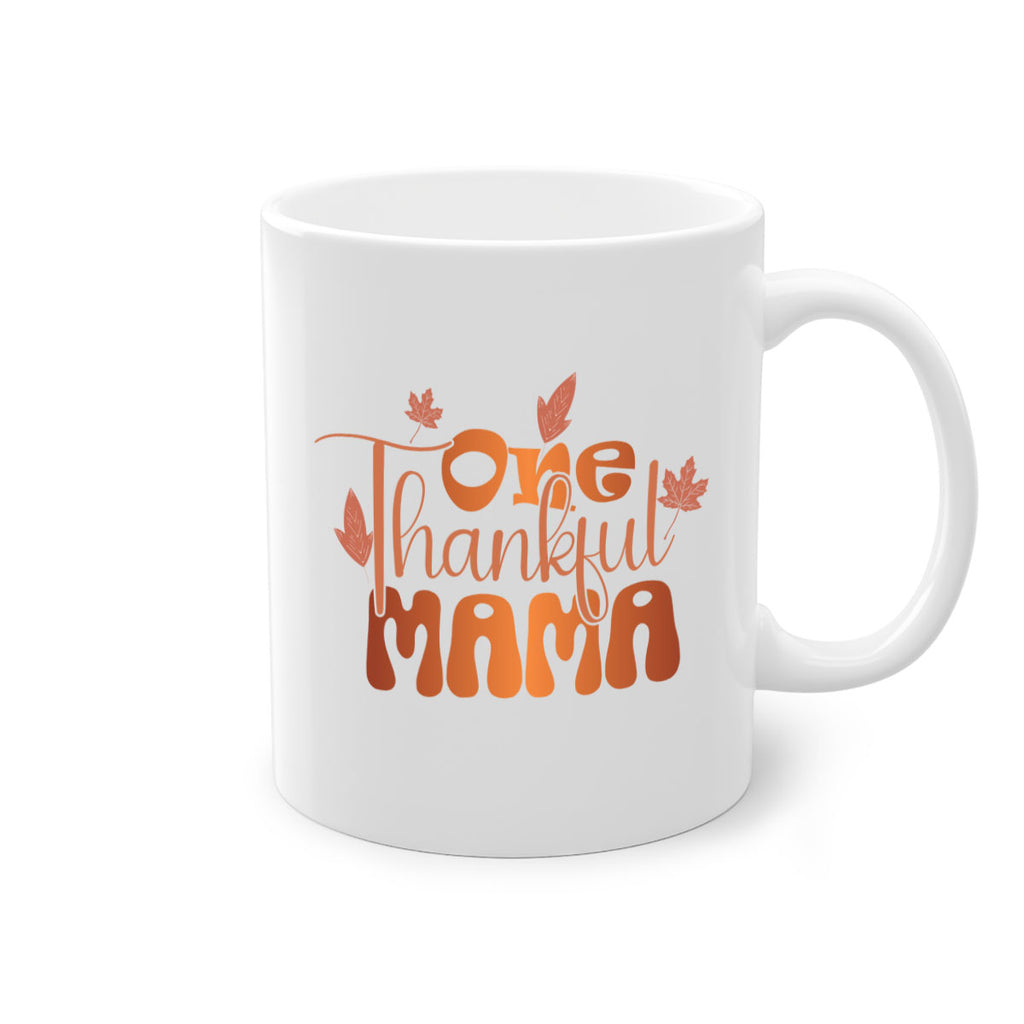 Enjoy the One Thankful Mama 465# Mug . Here to bring big gulps of coffee, Tea or any beverage and style, these two-tone coffee mugs help people around the world start the day just right. Choose between 5 different color options and 2 sizes to best complement the design. Each mug comes with a colored handle, a colored interior, and a classy, glossy finish so that your mugs become an instant favorite.