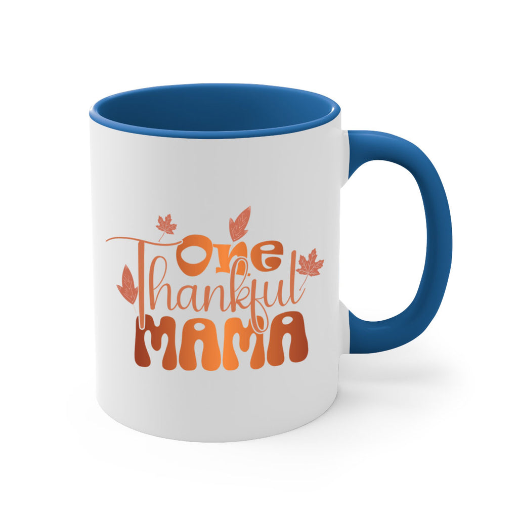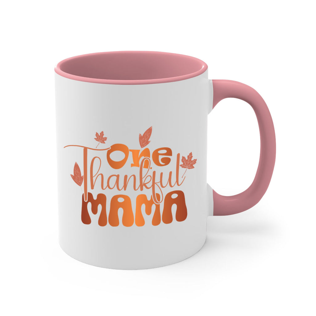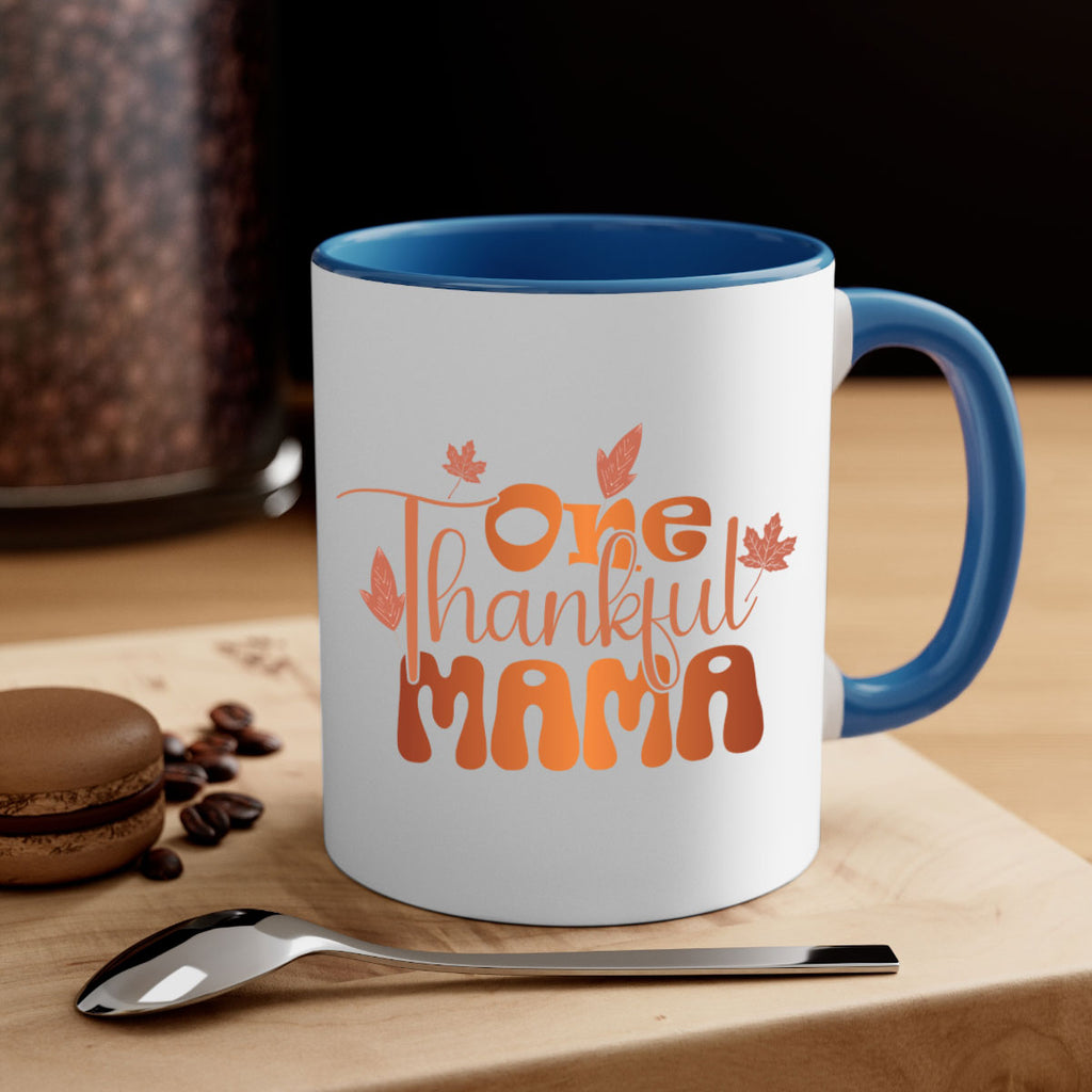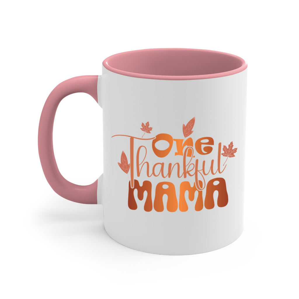 Enjoy the One Thankful Mama 465# Mug . Here to bring big gulps of coffee, Tea or any beverage and style, these two-tone coffee mugs help people around the world start the day just right. Choose between 5 different color options and 2 sizes to best complement the design. Each mug comes with a colored handle, a colored interior, and a classy, glossy finish so that your mugs become an instant favorite.
