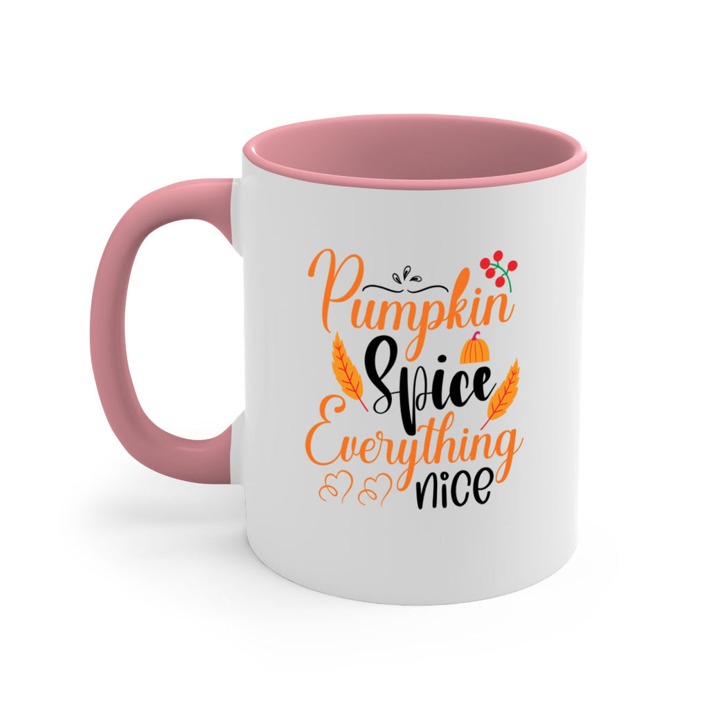 Enjoy the Pumpkin Spice Everything Nice 543# Mug . Here to bring big gulps of coffee, Tea or any beverage and style, these two-tone coffee mugs help people around the world start the day just right. Choose between 5 different color options and 2 sizes to best complement the design. Each mug comes with a colored handle, a colored interior, and a classy, glossy finish so that your mugs become an instant favorite.