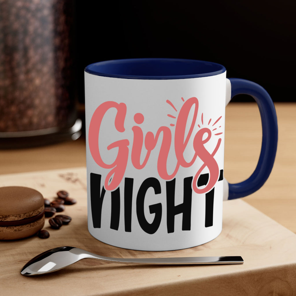 Enjoy the girls night Style 53# Mug . Here to bring big gulps of coffee, Tea or any beverage and style, these two-tone coffee mugs help people around the world start the day just right. Choose between 5 different color options and 2 sizes to best complement the design. Each mug comes with a colored handle, a colored interior, and a classy, glossy finish so that your mugs become an instant favorite.