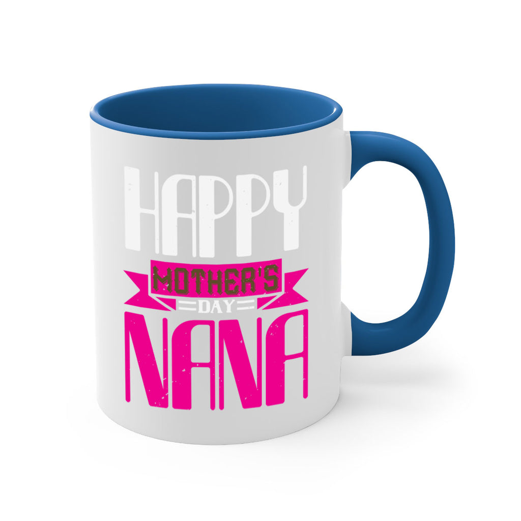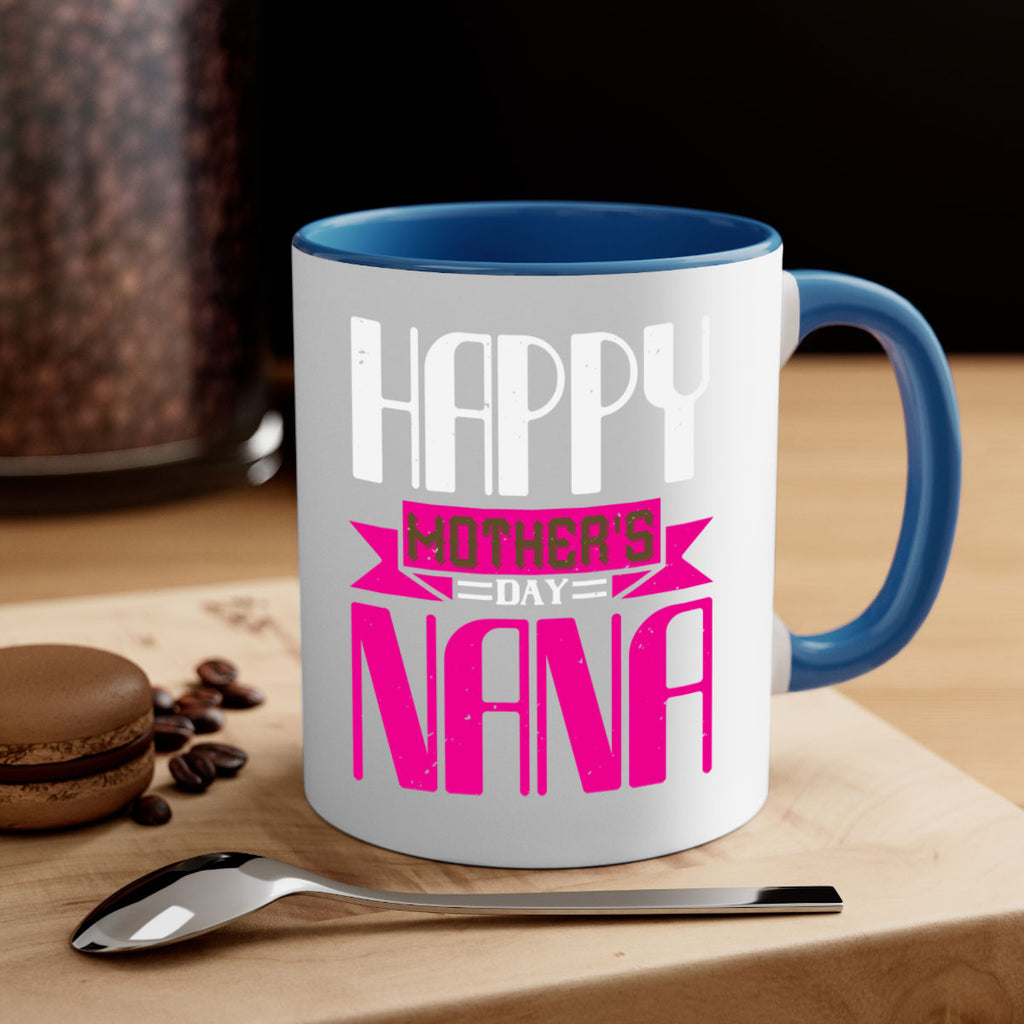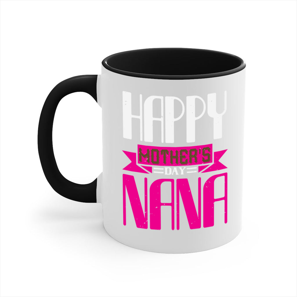 Enjoy the HAPPY mothers day nana 105# Mug . Here to bring big gulps of coffee, Tea or any beverage and style, these two-tone coffee mugs help people around the world start the day just right. Choose between 5 different color options and 2 sizes to best complement the design. Each mug comes with a colored handle, a colored interior, and a classy, glossy finish so that your mugs become an instant favorite.