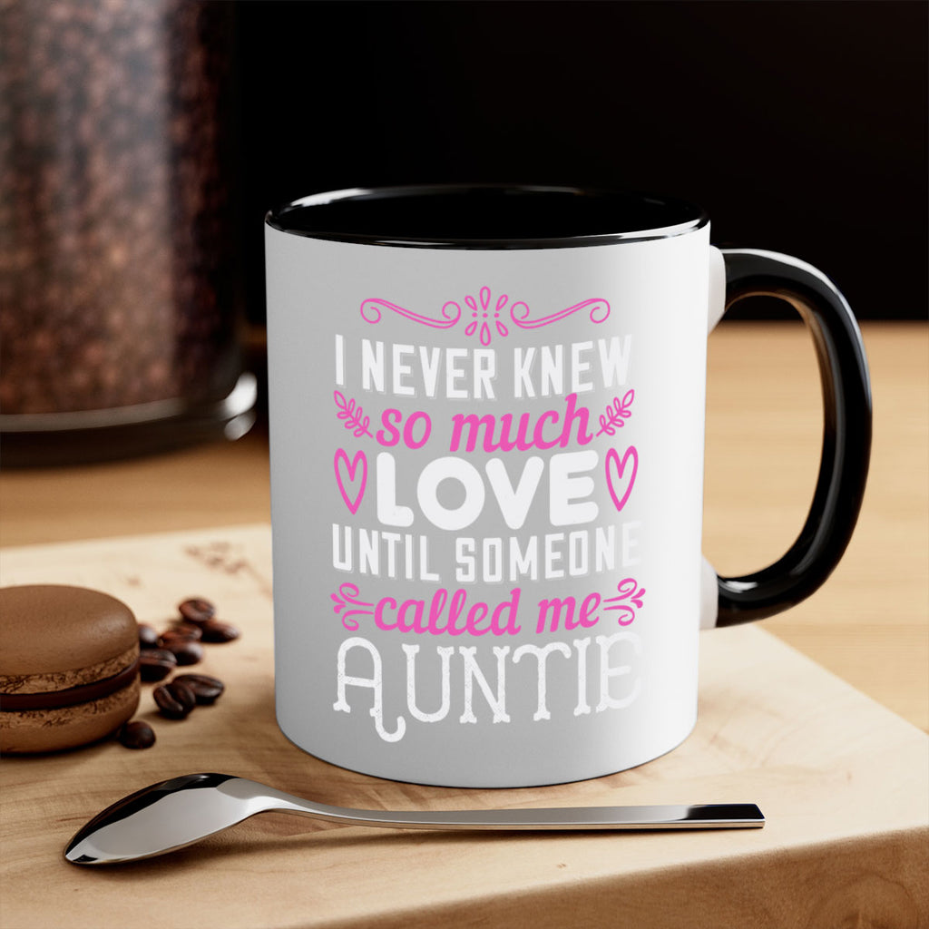 Enjoy the i never knew so much love until someone called me auntie Style 48# Mug . Here to bring big gulps of coffee, Tea or any beverage and style, these two-tone coffee mugs help people around the world start the day just right. Choose between 5 different color options and 2 sizes to best complement the design. Each mug comes with a colored handle, a colored interior, and a classy, glossy finish so that your mugs become an instant favorite.