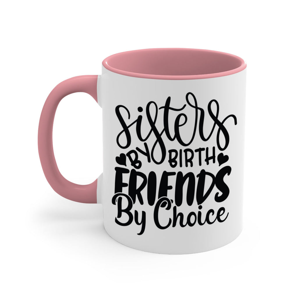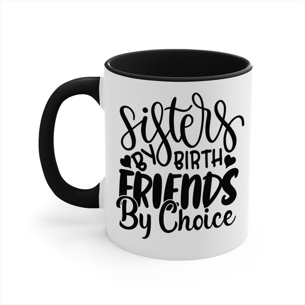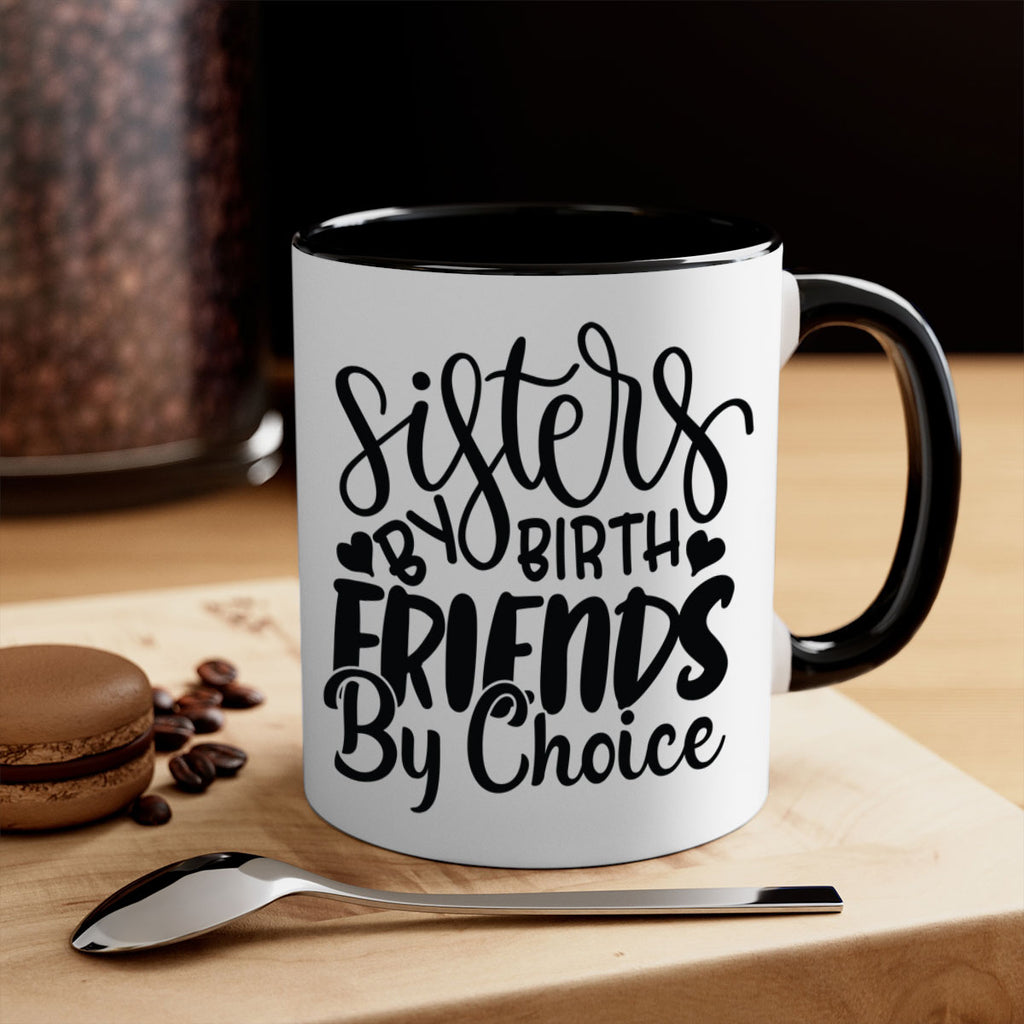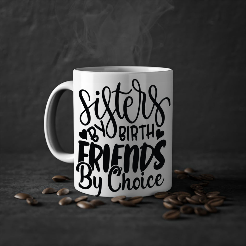 Enjoy the sisters by birth friends by choice 56# Mug . Here to bring big gulps of coffee, Tea or any beverage and style, these two-tone coffee mugs help people around the world start the day just right. Choose between 5 different color options and 2 sizes to best complement the design. Each mug comes with a colored handle, a colored interior, and a classy, glossy finish so that your mugs become an instant favorite.