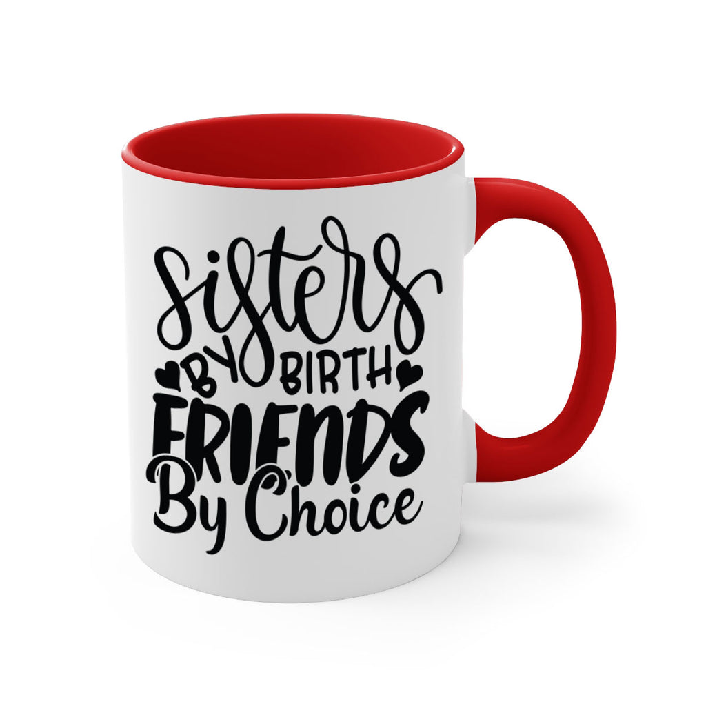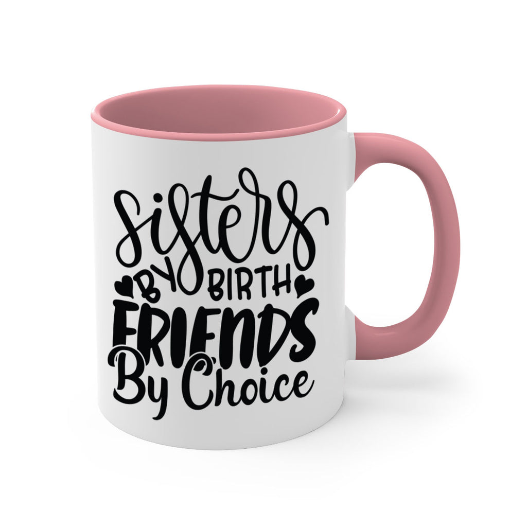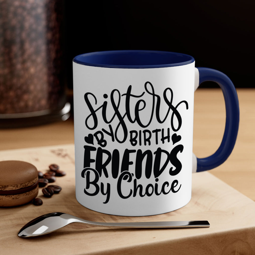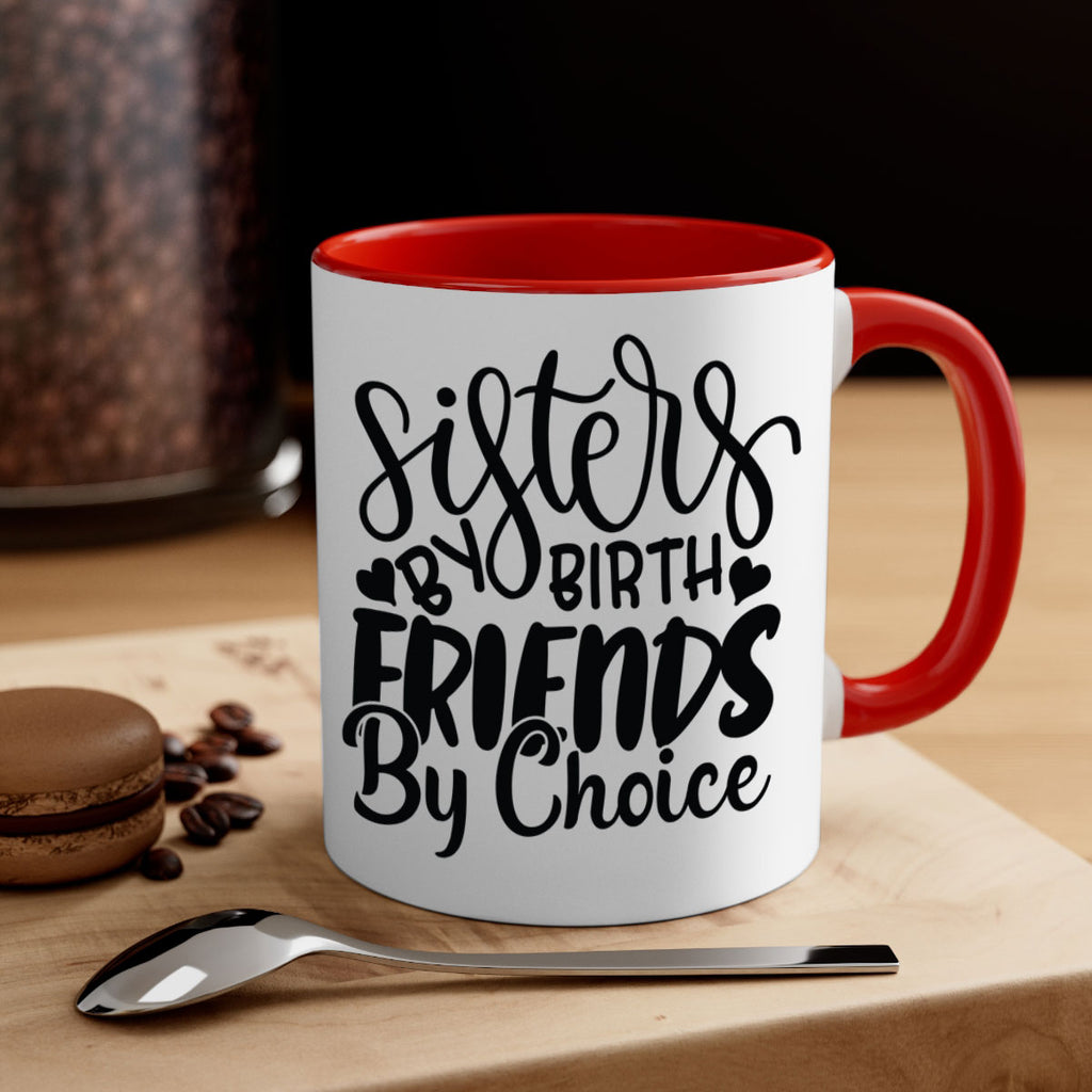 Enjoy the sisters by birth friends by choice 56# Mug . Here to bring big gulps of coffee, Tea or any beverage and style, these two-tone coffee mugs help people around the world start the day just right. Choose between 5 different color options and 2 sizes to best complement the design. Each mug comes with a colored handle, a colored interior, and a classy, glossy finish so that your mugs become an instant favorite.