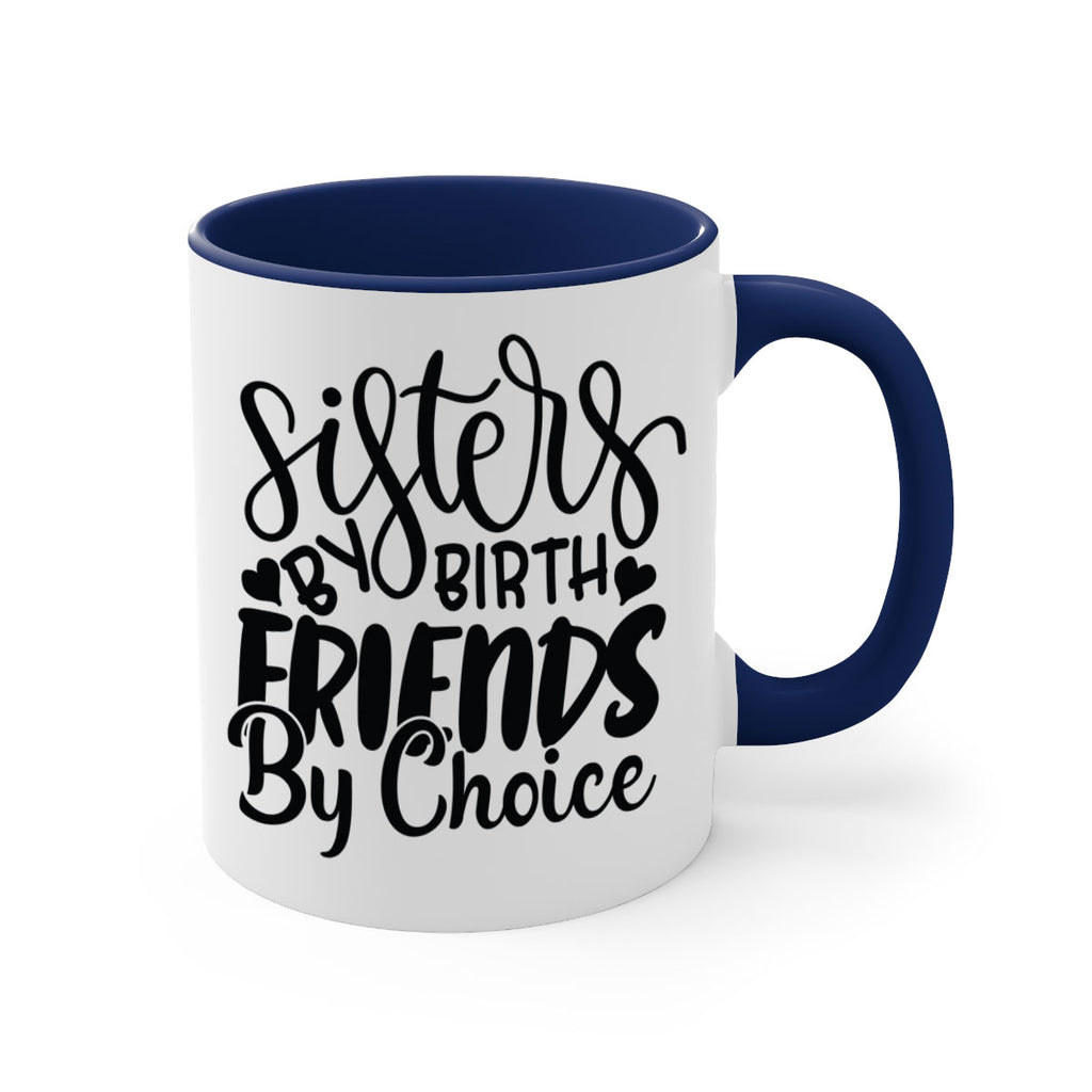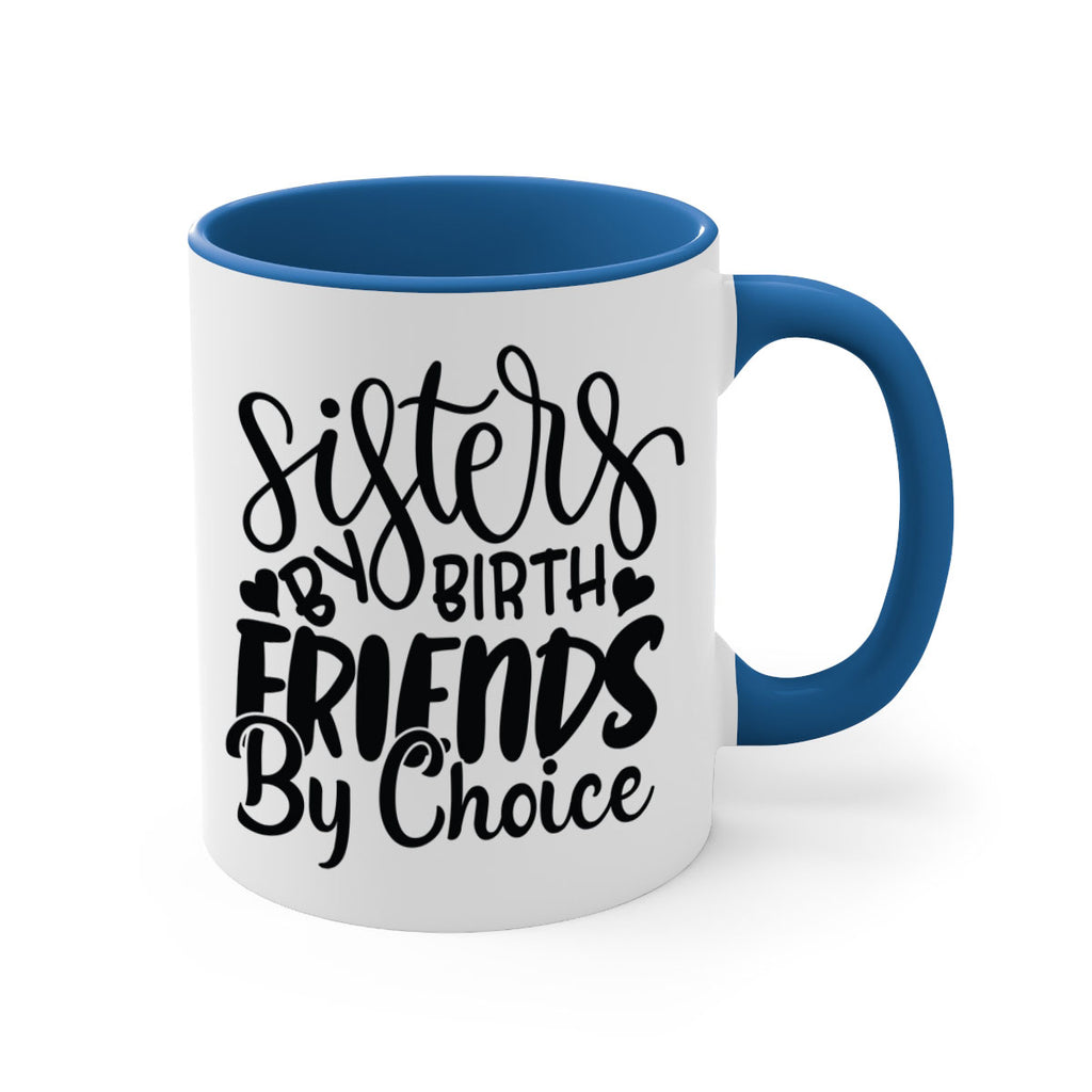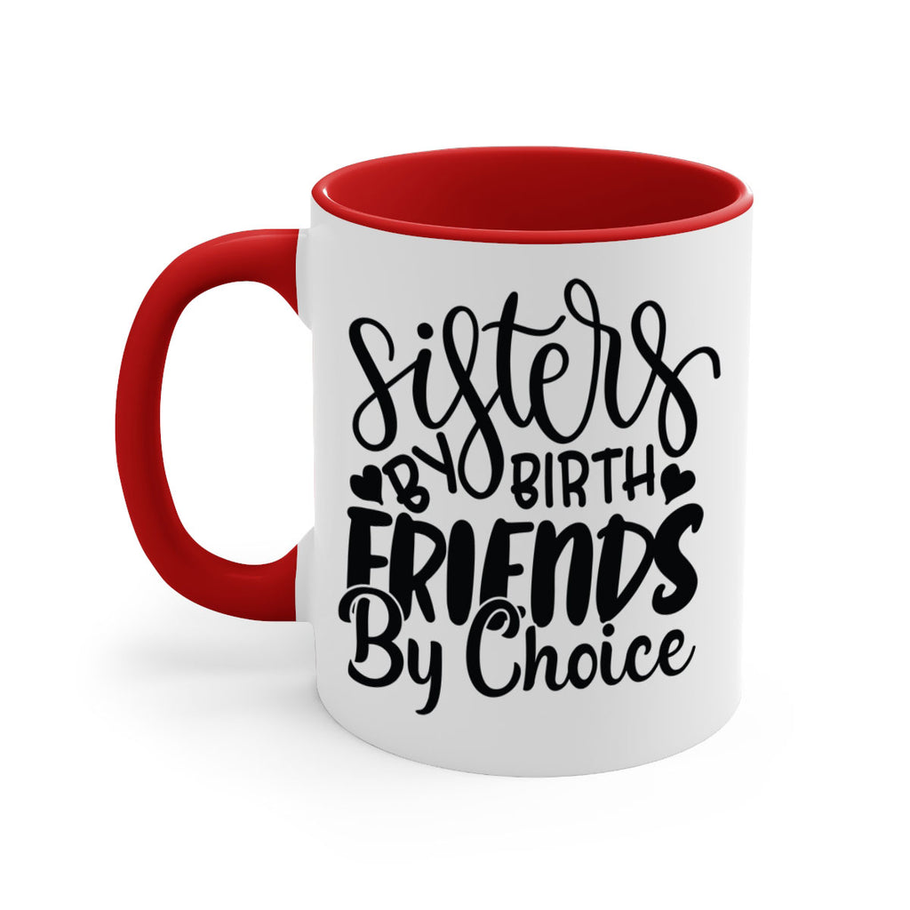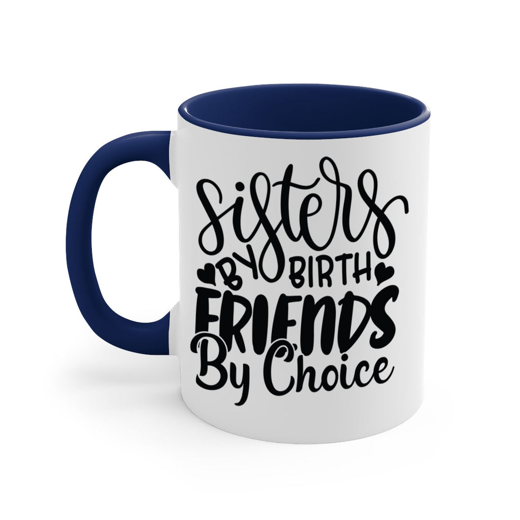 Enjoy the sisters by birth friends by choice 56# Mug . Here to bring big gulps of coffee, Tea or any beverage and style, these two-tone coffee mugs help people around the world start the day just right. Choose between 5 different color options and 2 sizes to best complement the design. Each mug comes with a colored handle, a colored interior, and a classy, glossy finish so that your mugs become an instant favorite.