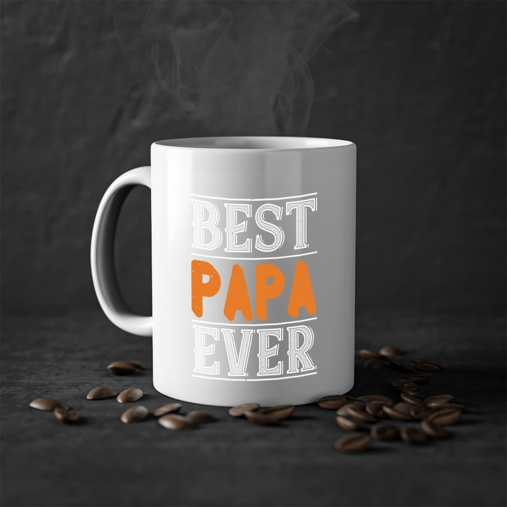 Enjoy the best papa ever 47# Mug . Here to bring big gulps of coffee, Tea or any beverage and style, these two-tone coffee mugs help people around the world start the day just right. Choose between 5 different color options and 2 sizes to best complement the design. Each mug comes with a colored handle, a colored interior, and a classy, glossy finish so that your mugs become an instant favorite.