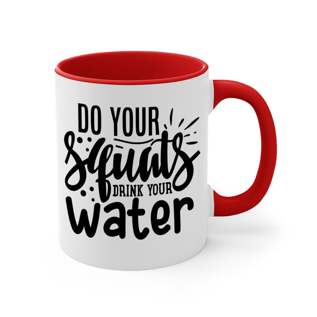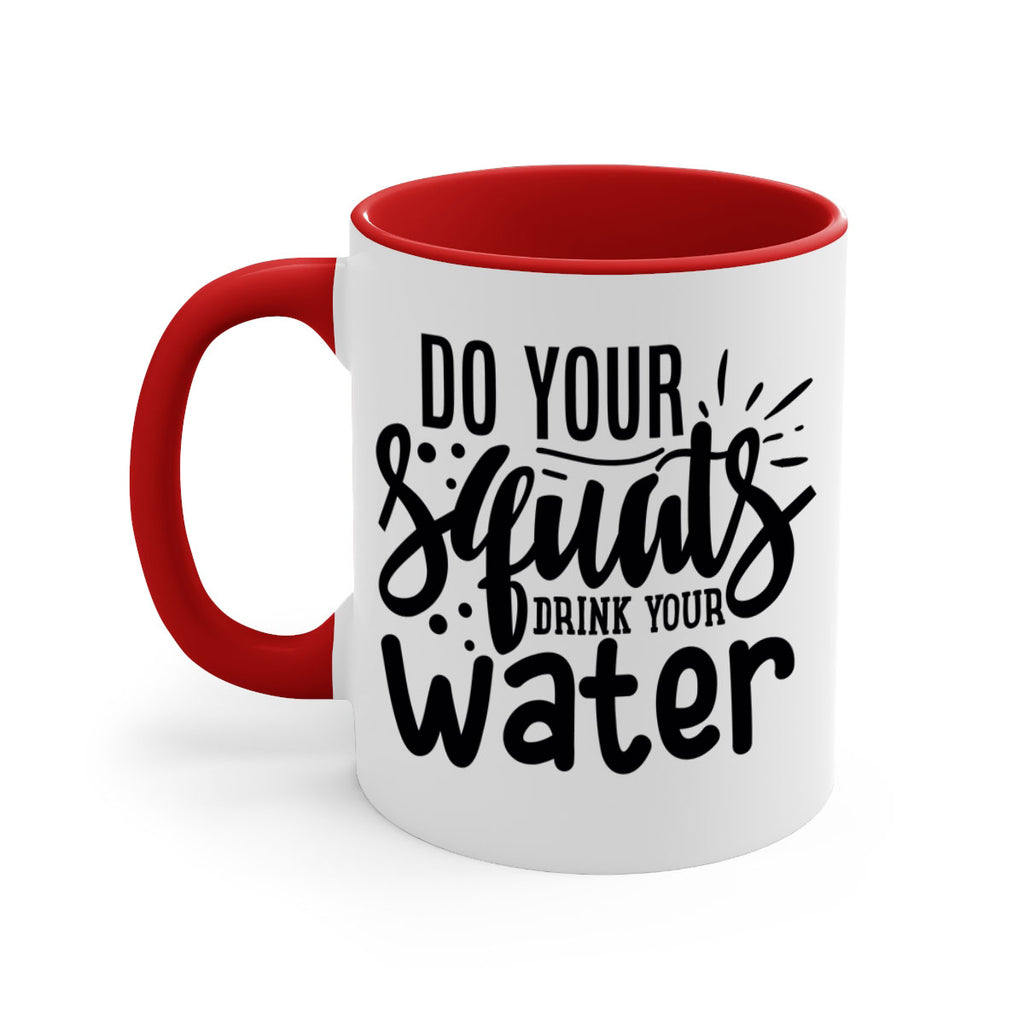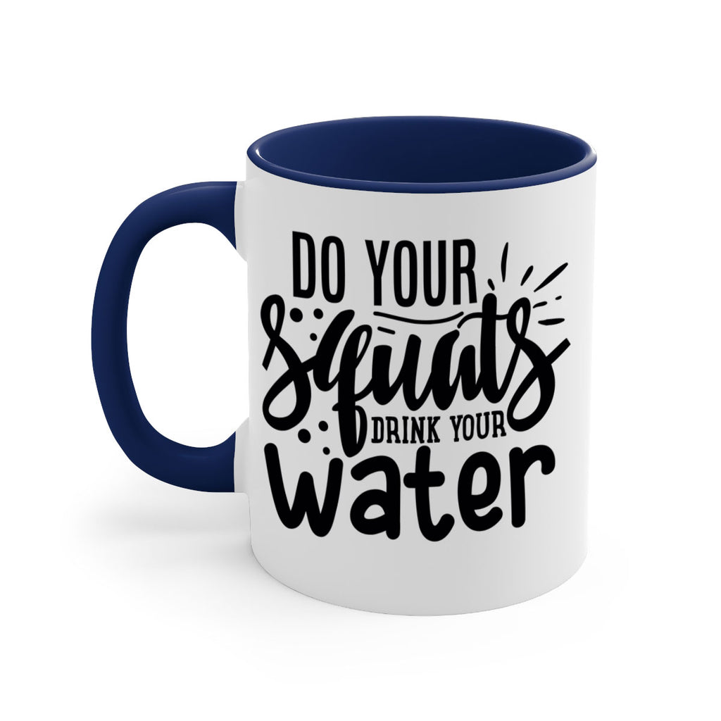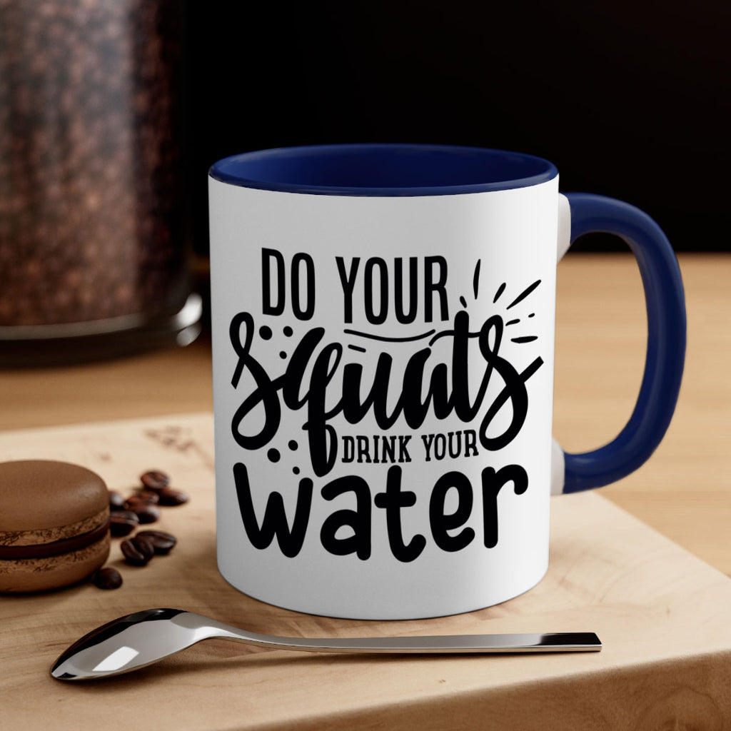 Enjoy the do your squats drink your water 48# Mug . Here to bring big gulps of coffee, Tea or any beverage and style, these two-tone coffee mugs help people around the world start the day just right. Choose between 5 different color options and 2 sizes to best complement the design. Each mug comes with a colored handle, a colored interior, and a classy, glossy finish so that your mugs become an instant favorite.