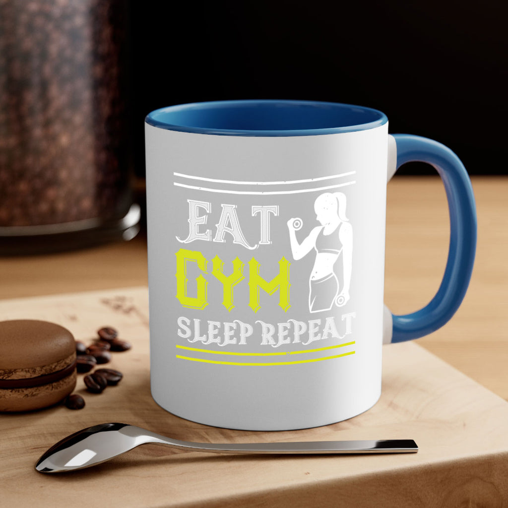 Enjoy the eat gym sleep repeat 69# Mug . Here to bring big gulps of coffee, Tea or any beverage and style, these two-tone coffee mugs help people around the world start the day just right. Choose between 5 different color options and 2 sizes to best complement the design. Each mug comes with a colored handle, a colored interior, and a classy, glossy finish so that your mugs become an instant favorite.