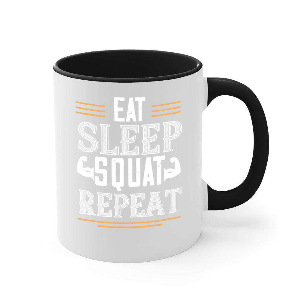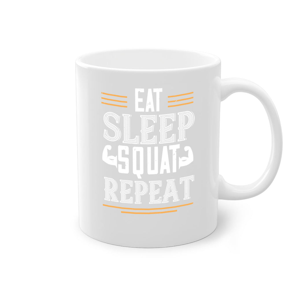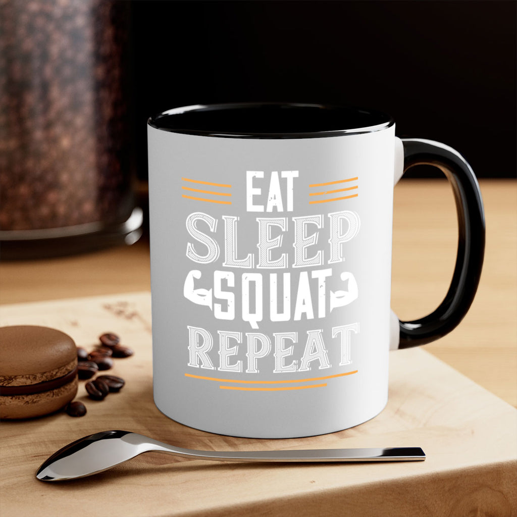 Enjoy the eat sleep squat repeat 58# Mug . Here to bring big gulps of coffee, Tea or any beverage and style, these two-tone coffee mugs help people around the world start the day just right. Choose between 5 different color options and 2 sizes to best complement the design. Each mug comes with a colored handle, a colored interior, and a classy, glossy finish so that your mugs become an instant favorite.