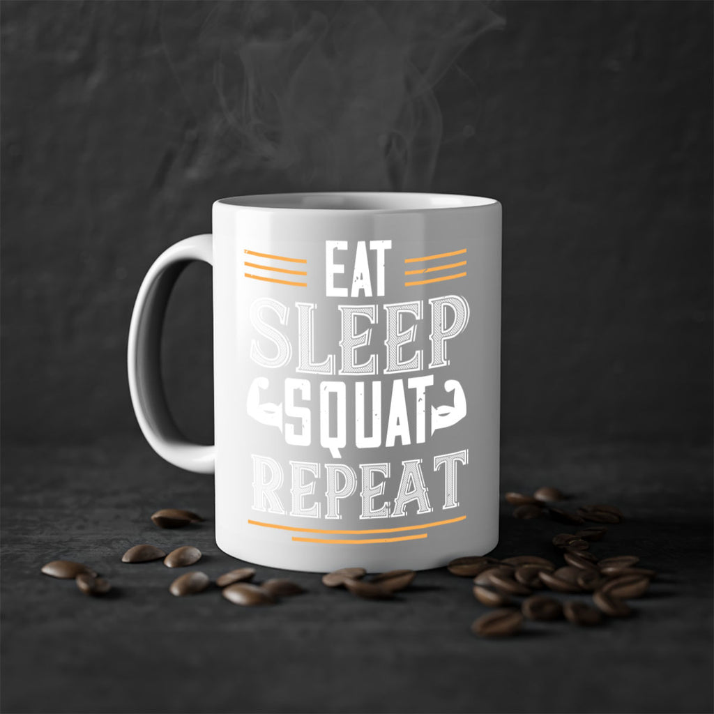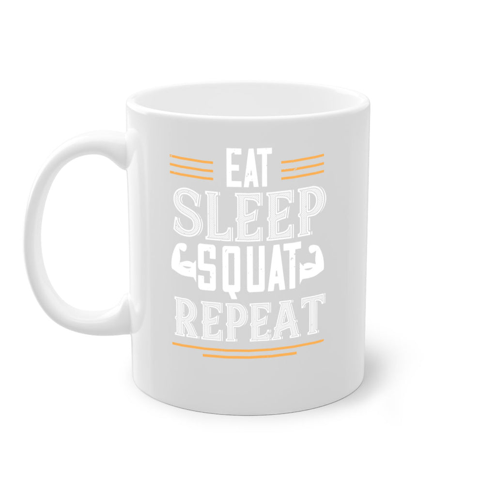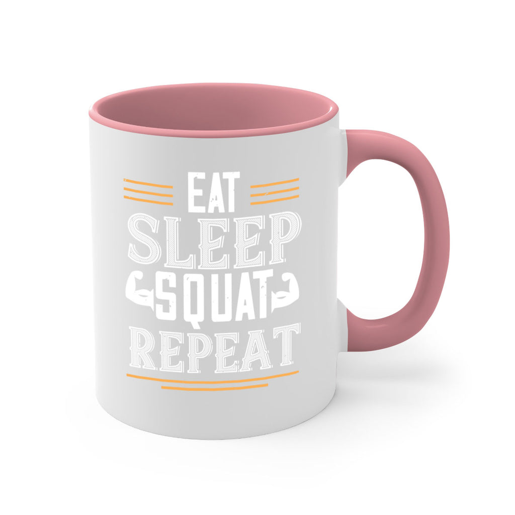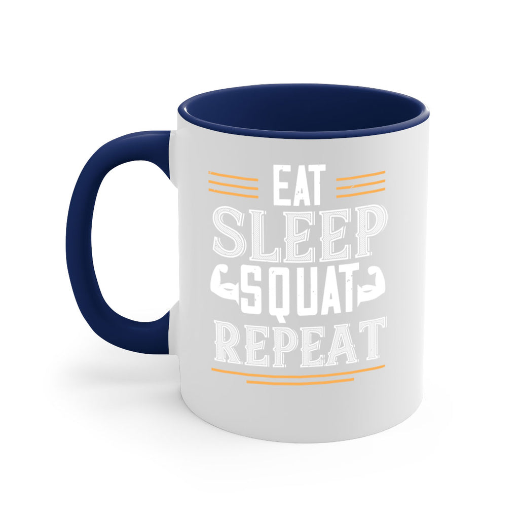Enjoy the eat sleep squat repeat 58# Mug . Here to bring big gulps of coffee, Tea or any beverage and style, these two-tone coffee mugs help people around the world start the day just right. Choose between 5 different color options and 2 sizes to best complement the design. Each mug comes with a colored handle, a colored interior, and a classy, glossy finish so that your mugs become an instant favorite.