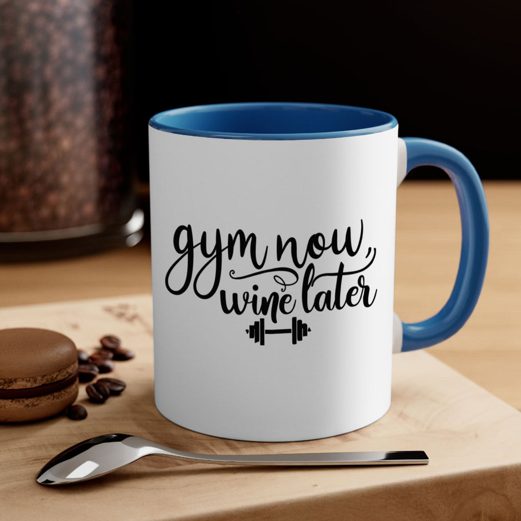 Enjoy the gym now wine later 42# Mug . Here to bring big gulps of coffee, Tea or any beverage and style, these two-tone coffee mugs help people around the world start the day just right. Choose between 5 different color options and 2 sizes to best complement the design. Each mug comes with a colored handle, a colored interior, and a classy, glossy finish so that your mugs become an instant favorite.