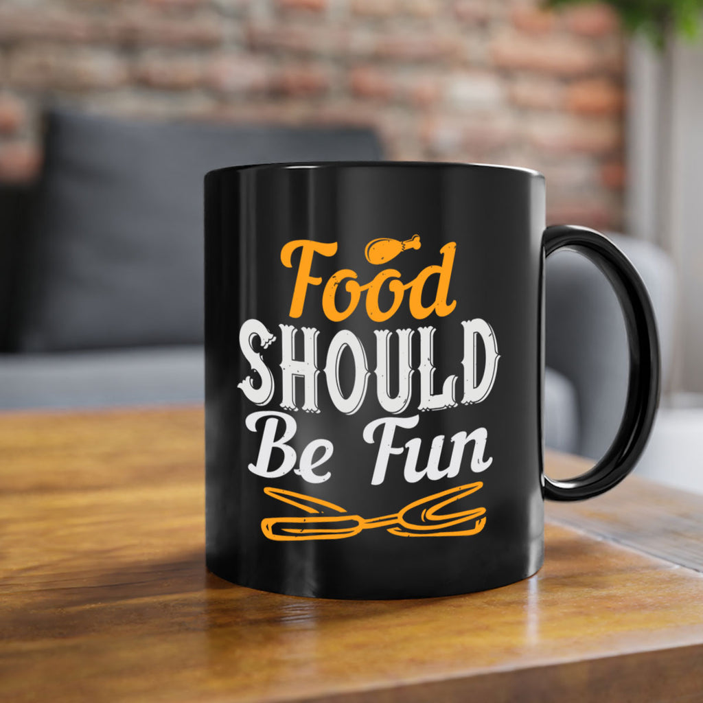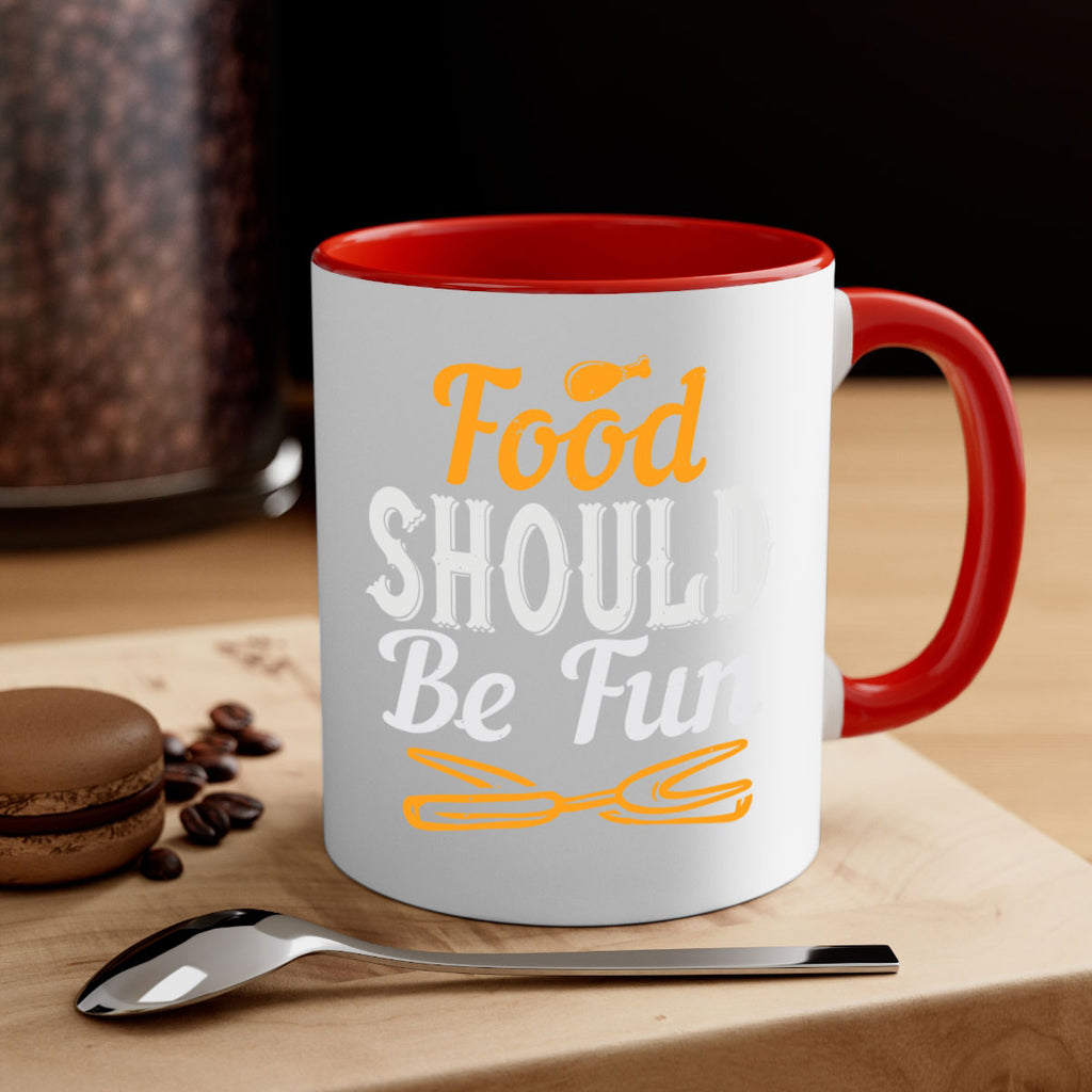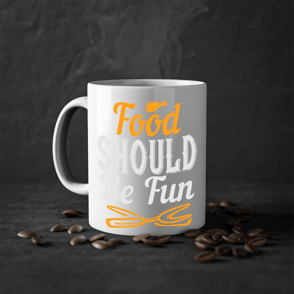 Enjoy the food should be fun 40# Mug . Here to bring big gulps of coffee, Tea or any beverage and style, these two-tone coffee mugs help people around the world start the day just right. Choose between 5 different color options and 2 sizes to best complement the design. Each mug comes with a colored handle, a colored interior, and a classy, glossy finish so that your mugs become an instant favorite.