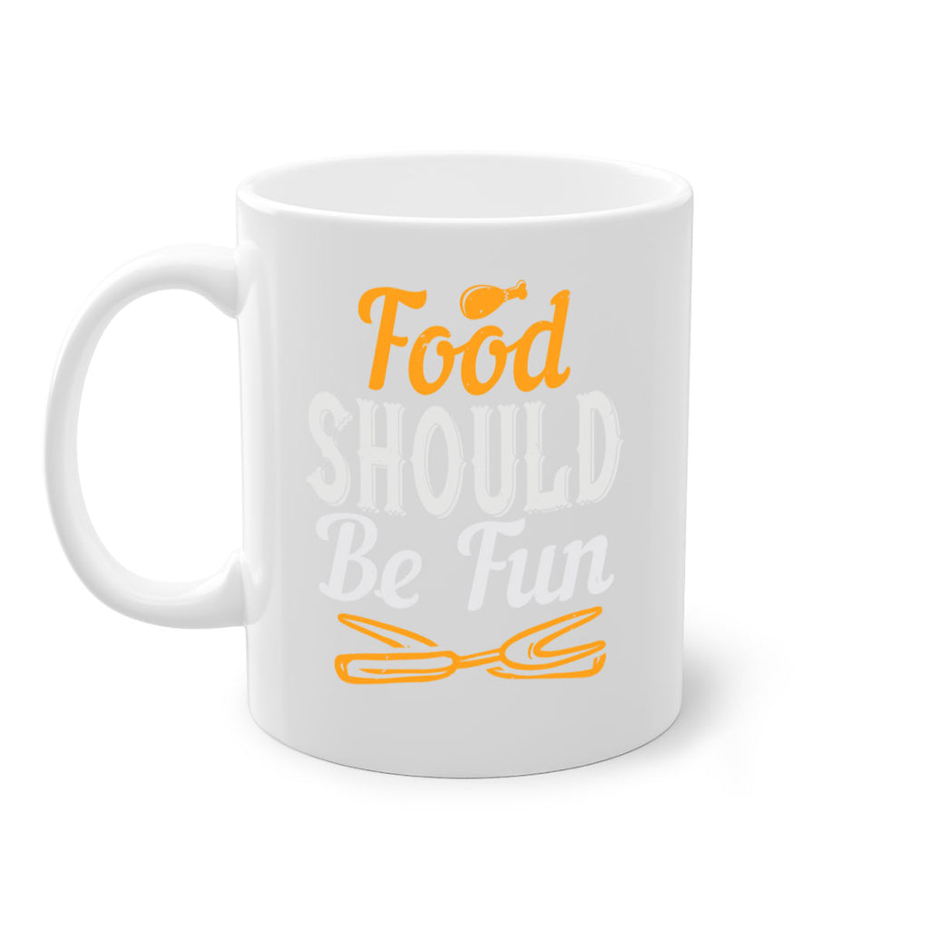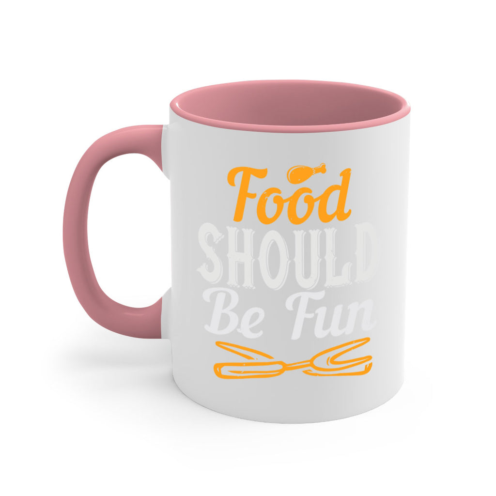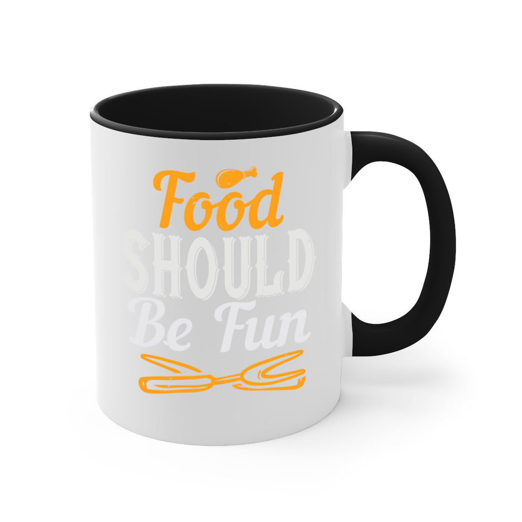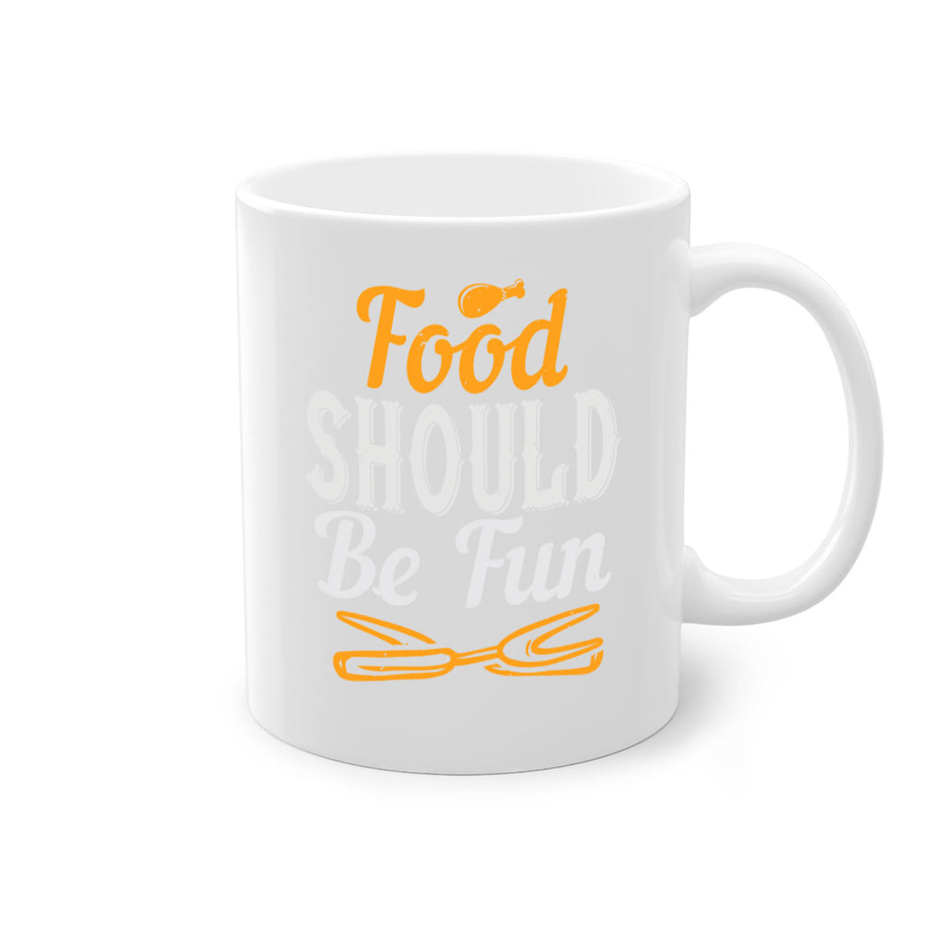 Enjoy the food should be fun 40# Mug . Here to bring big gulps of coffee, Tea or any beverage and style, these two-tone coffee mugs help people around the world start the day just right. Choose between 5 different color options and 2 sizes to best complement the design. Each mug comes with a colored handle, a colored interior, and a classy, glossy finish so that your mugs become an instant favorite.