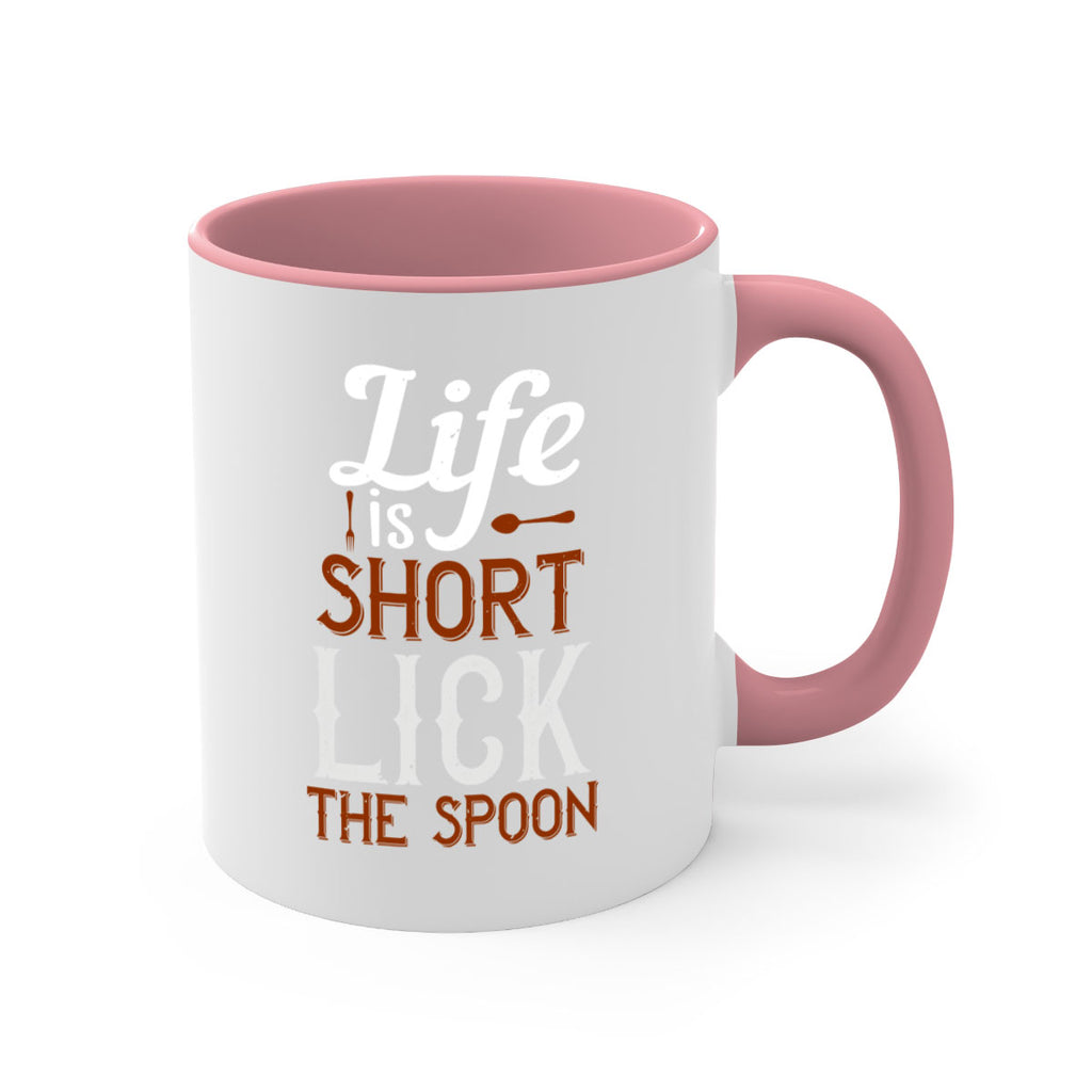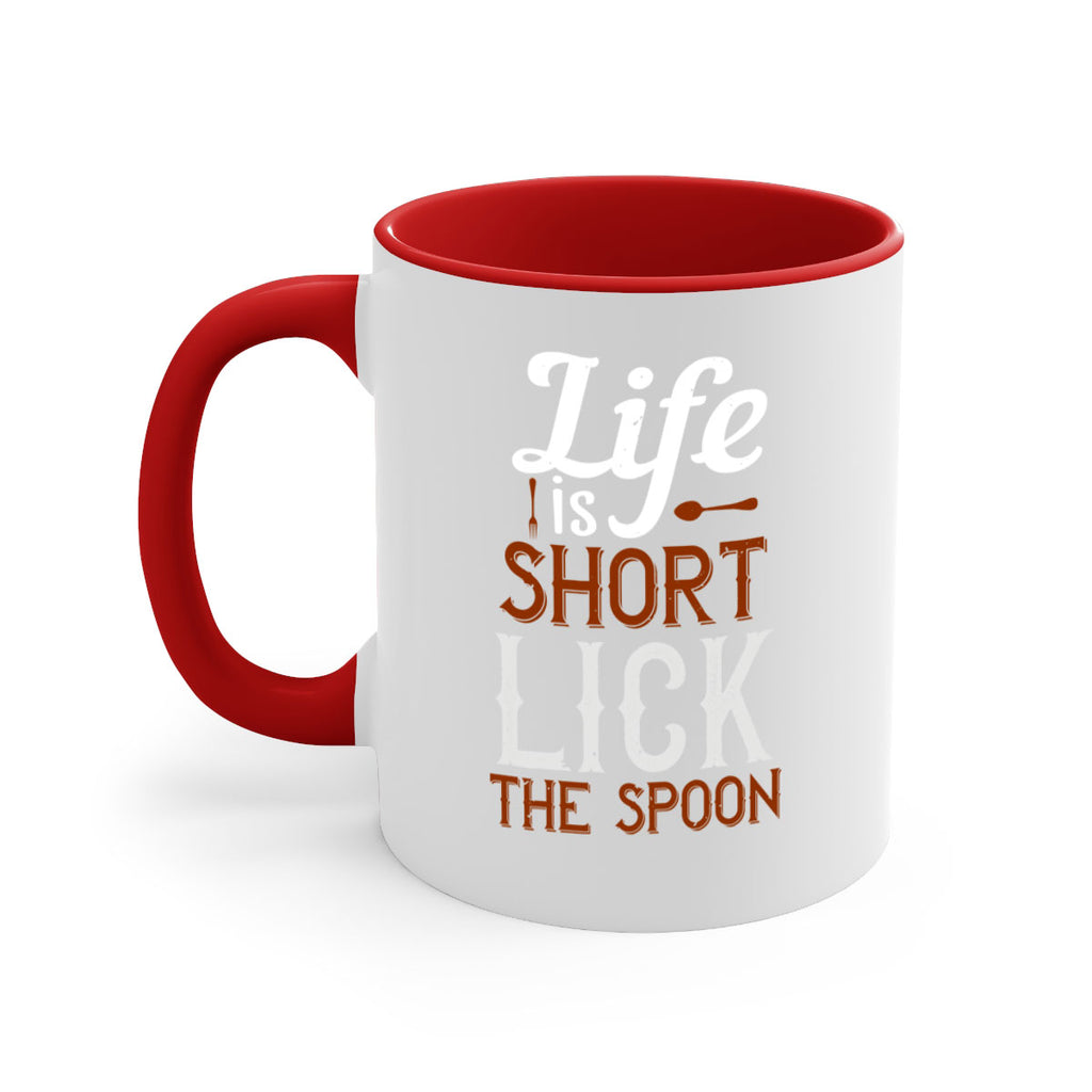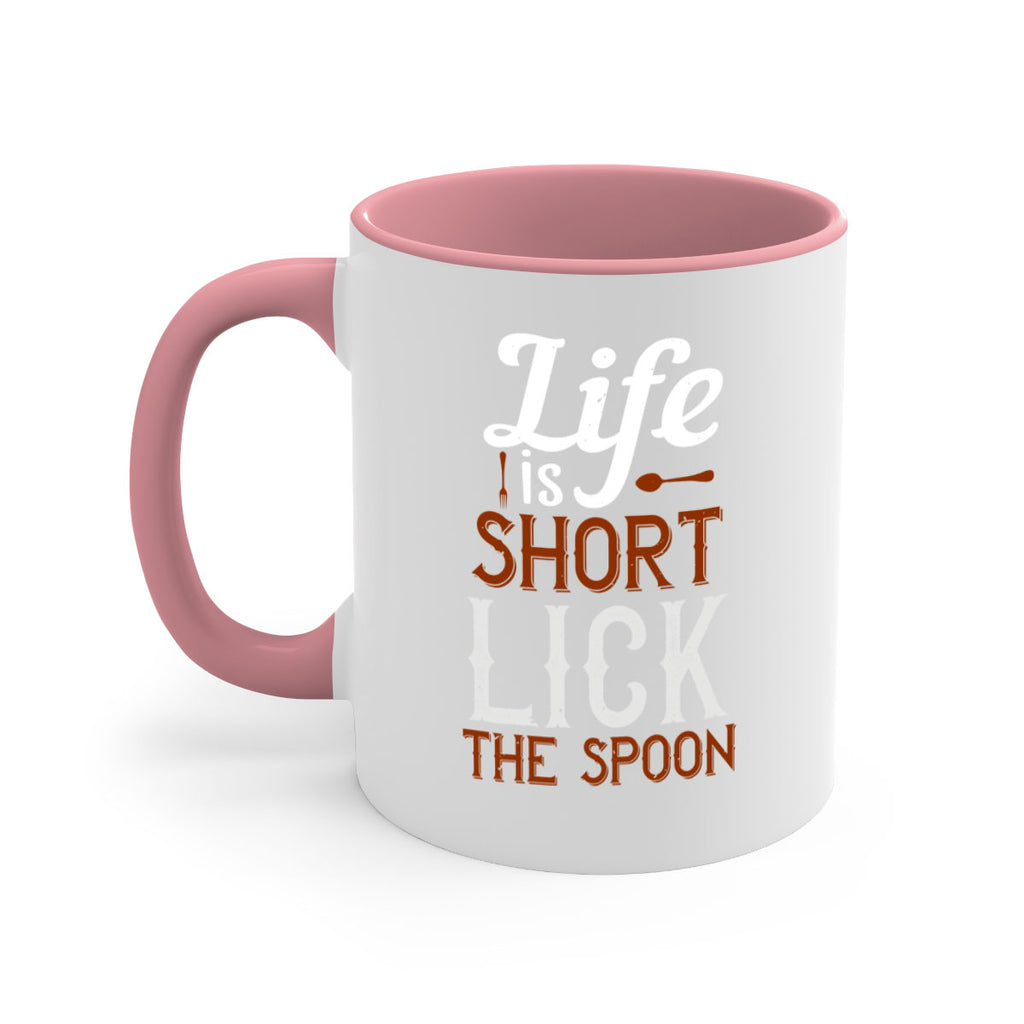 Enjoy the life is short lick the spoon 19# Mug . Here to bring big gulps of coffee, Tea or any beverage and style, these two-tone coffee mugs help people around the world start the day just right. Choose between 5 different color options and 2 sizes to best complement the design. Each mug comes with a colored handle, a colored interior, and a classy, glossy finish so that your mugs become an instant favorite.