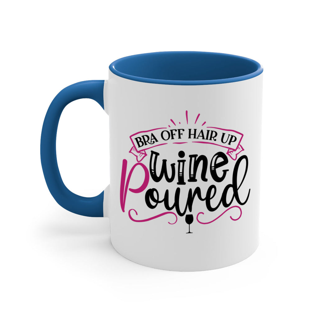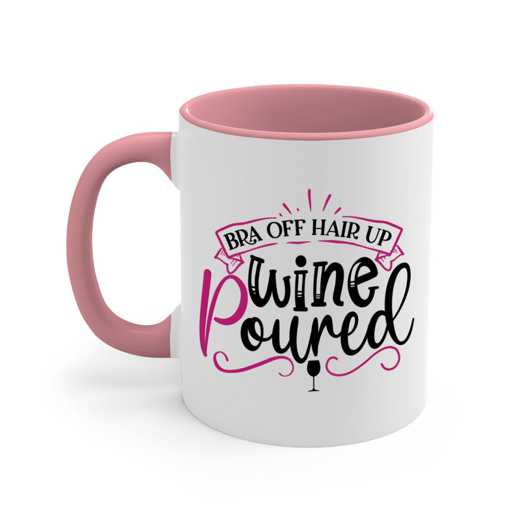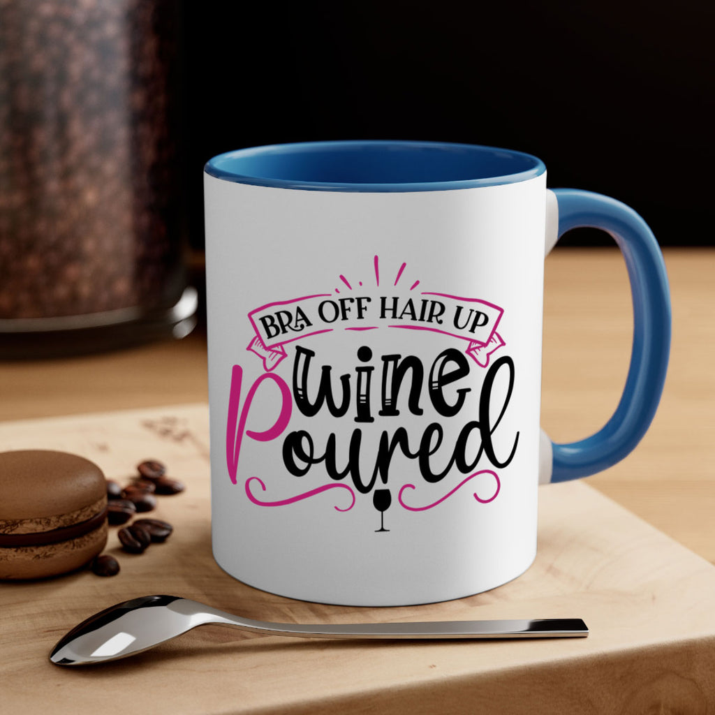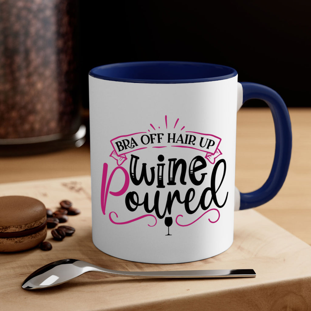 Enjoy the bra off hair up wine poured 206# Mug . Here to bring big gulps of coffee, Tea or any beverage and style, these two-tone coffee mugs help people around the world start the day just right. Choose between 5 different color options and 2 sizes to best complement the design. Each mug comes with a colored handle, a colored interior, and a classy, glossy finish so that your mugs become an instant favorite.