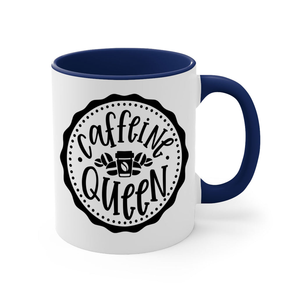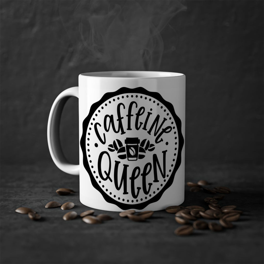 Enjoy the caffeine queen 185# Mug . Here to bring big gulps of coffee, Tea or any beverage and style, these two-tone coffee mugs help people around the world start the day just right. Choose between 5 different color options and 2 sizes to best complement the design. Each mug comes with a colored handle, a colored interior, and a classy, glossy finish so that your mugs become an instant favorite.