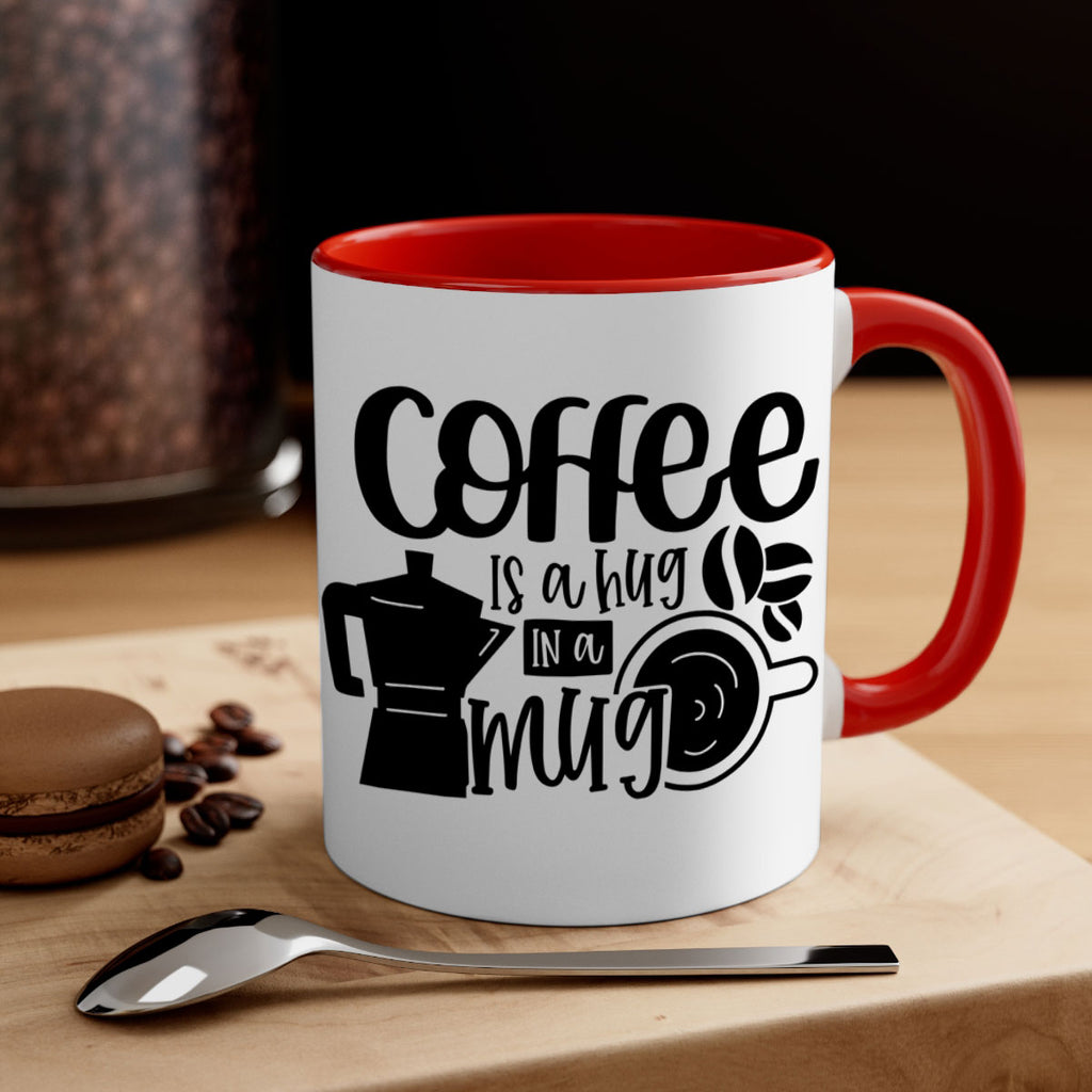 Enjoy the coffee is a hug in a mug 161# Mug . Here to bring big gulps of coffee, Tea or any beverage and style, these two-tone coffee mugs help people around the world start the day just right. Choose between 5 different color options and 2 sizes to best complement the design. Each mug comes with a colored handle, a colored interior, and a classy, glossy finish so that your mugs become an instant favorite.