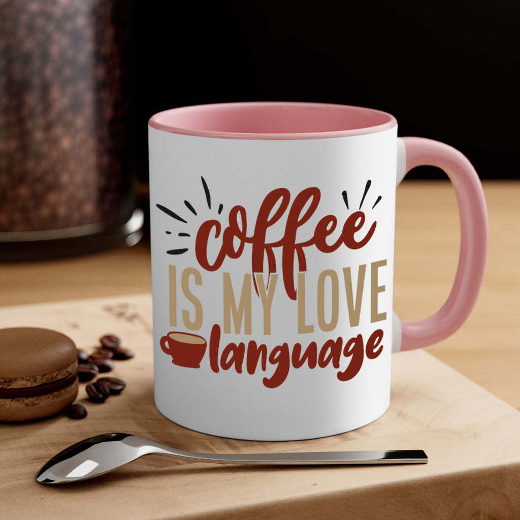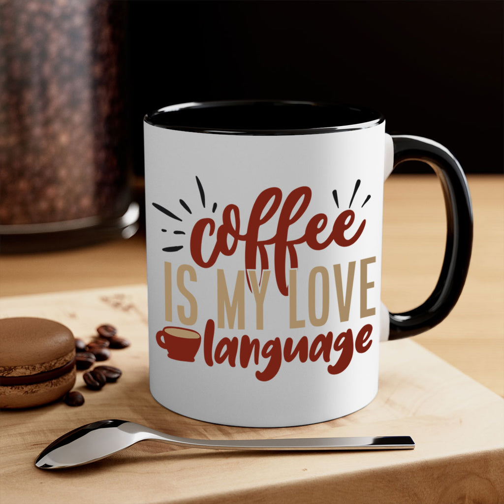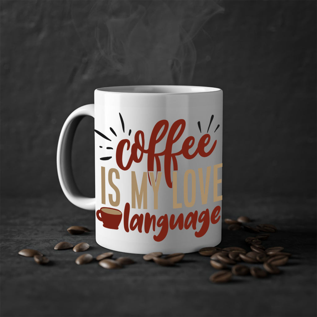 Enjoy the coffee is my love language 218# Mug . Here to bring big gulps of coffee, Tea or any beverage and style, these two-tone coffee mugs help people around the world start the day just right. Choose between 5 different color options and 2 sizes to best complement the design. Each mug comes with a colored handle, a colored interior, and a classy, glossy finish so that your mugs become an instant favorite.