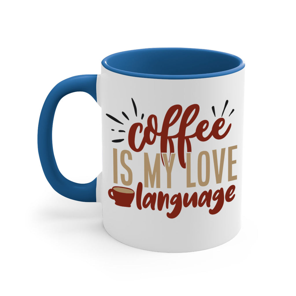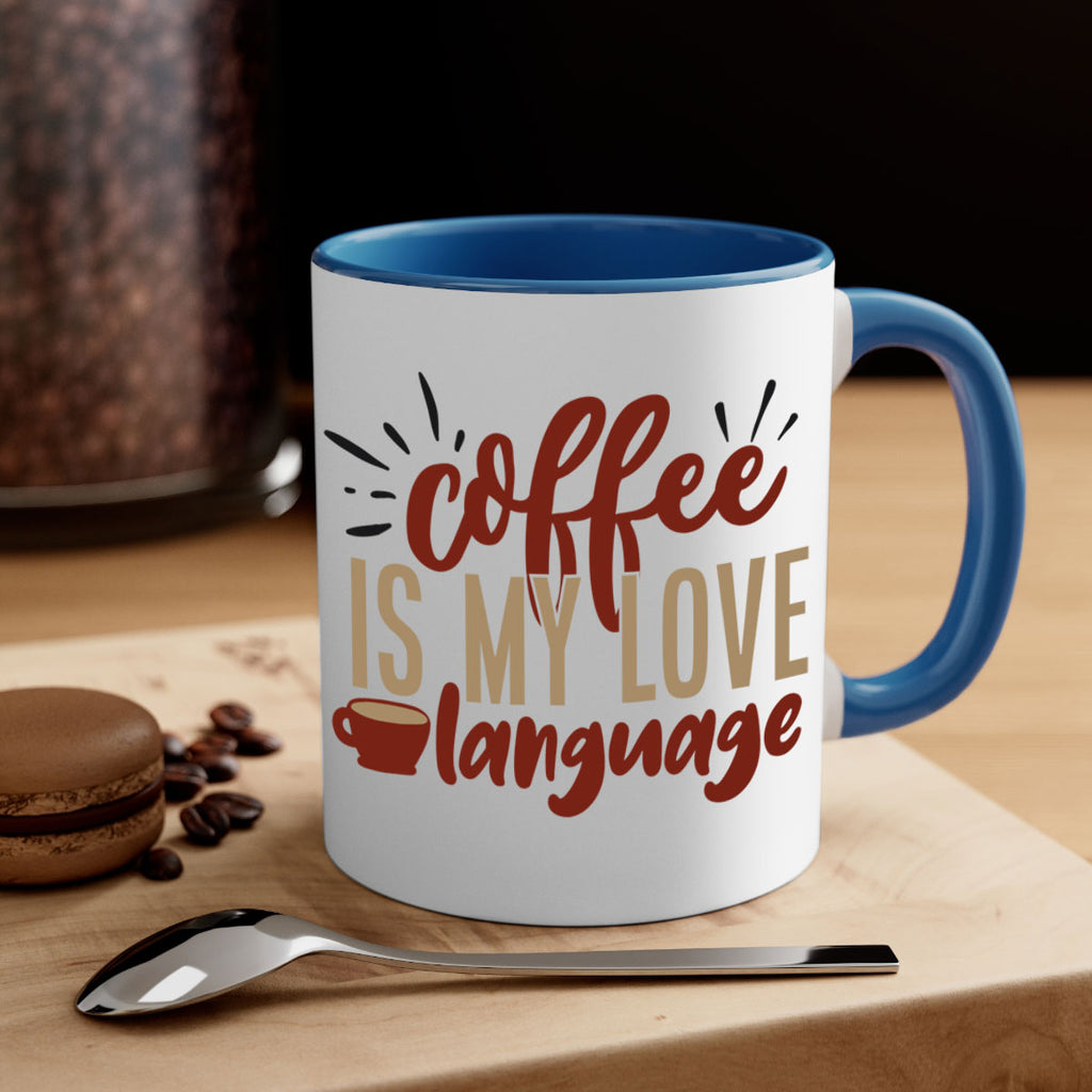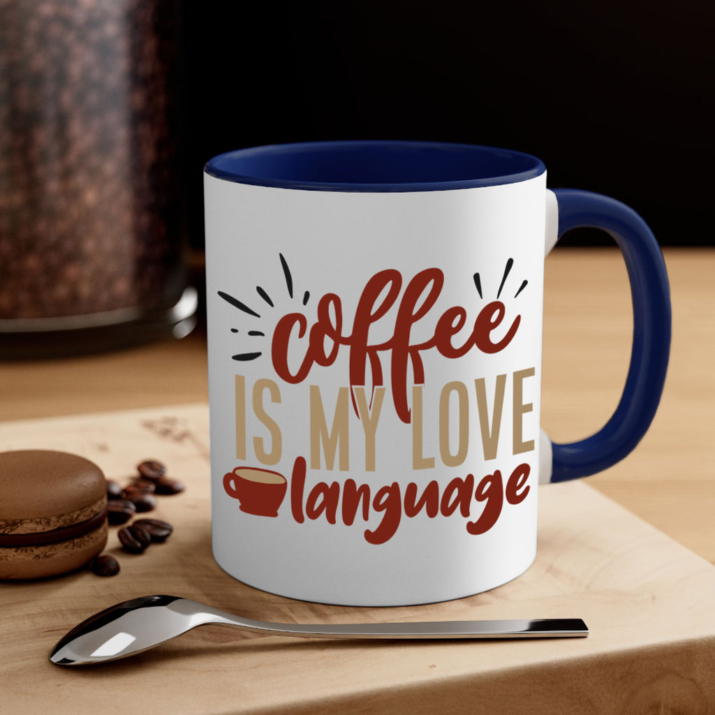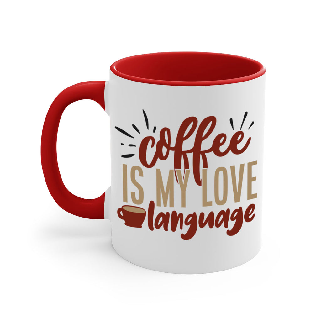 Enjoy the coffee is my love language 218# Mug . Here to bring big gulps of coffee, Tea or any beverage and style, these two-tone coffee mugs help people around the world start the day just right. Choose between 5 different color options and 2 sizes to best complement the design. Each mug comes with a colored handle, a colored interior, and a classy, glossy finish so that your mugs become an instant favorite.