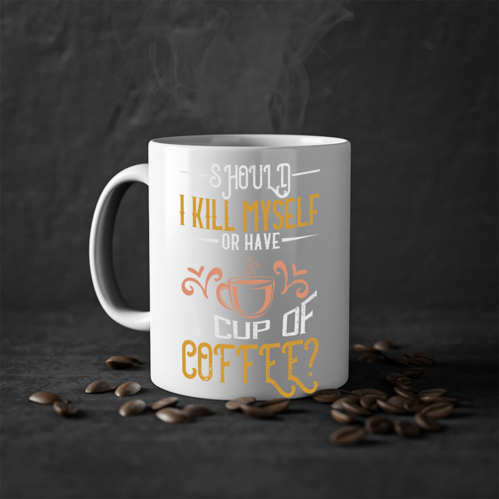 Enjoy the should i kill myself or have a cup of coffee 234# Mug . Here to bring big gulps of coffee, Tea or any beverage and style, these two-tone coffee mugs help people around the world start the day just right. Choose between 5 different color options and 2 sizes to best complement the design. Each mug comes with a colored handle, a colored interior, and a classy, glossy finish so that your mugs become an instant favorite.