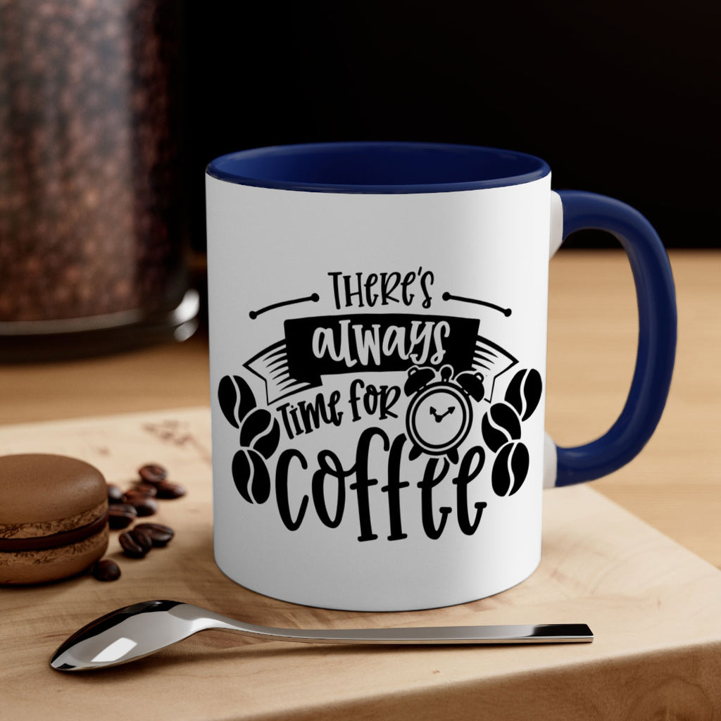 Enjoy the theres always time for coffee 20# Mug . Here to bring big gulps of coffee, Tea or any beverage and style, these two-tone coffee mugs help people around the world start the day just right. Choose between 5 different color options and 2 sizes to best complement the design. Each mug comes with a colored handle, a colored interior, and a classy, glossy finish so that your mugs become an instant favorite.