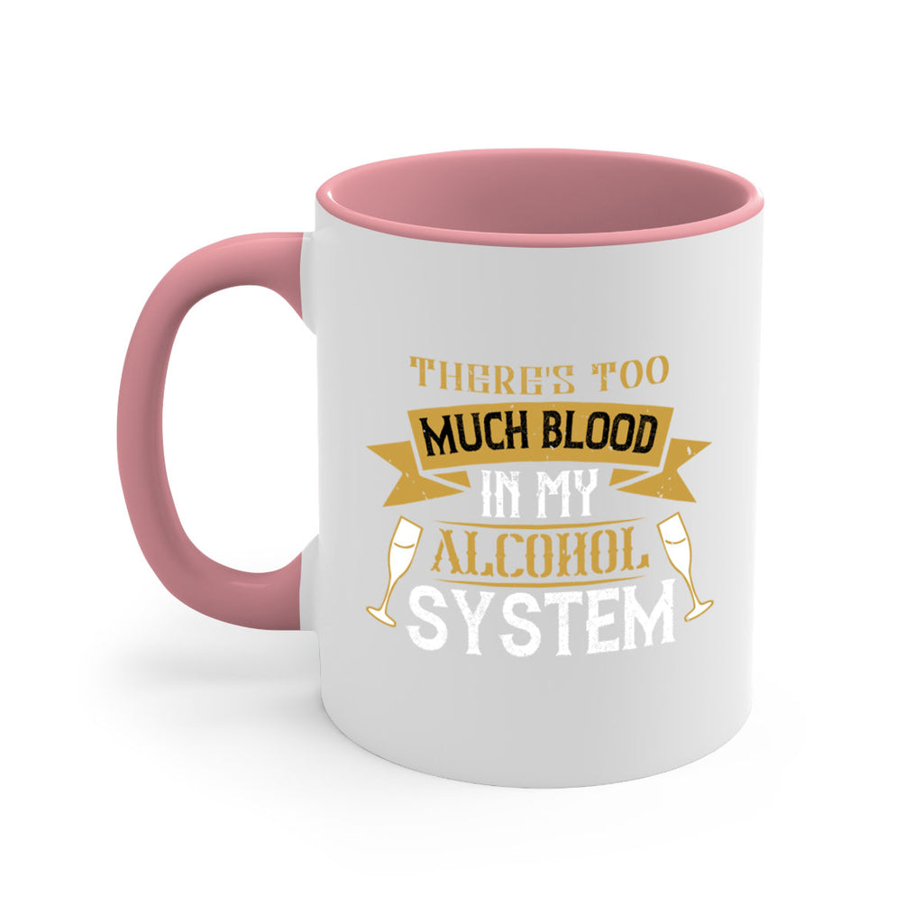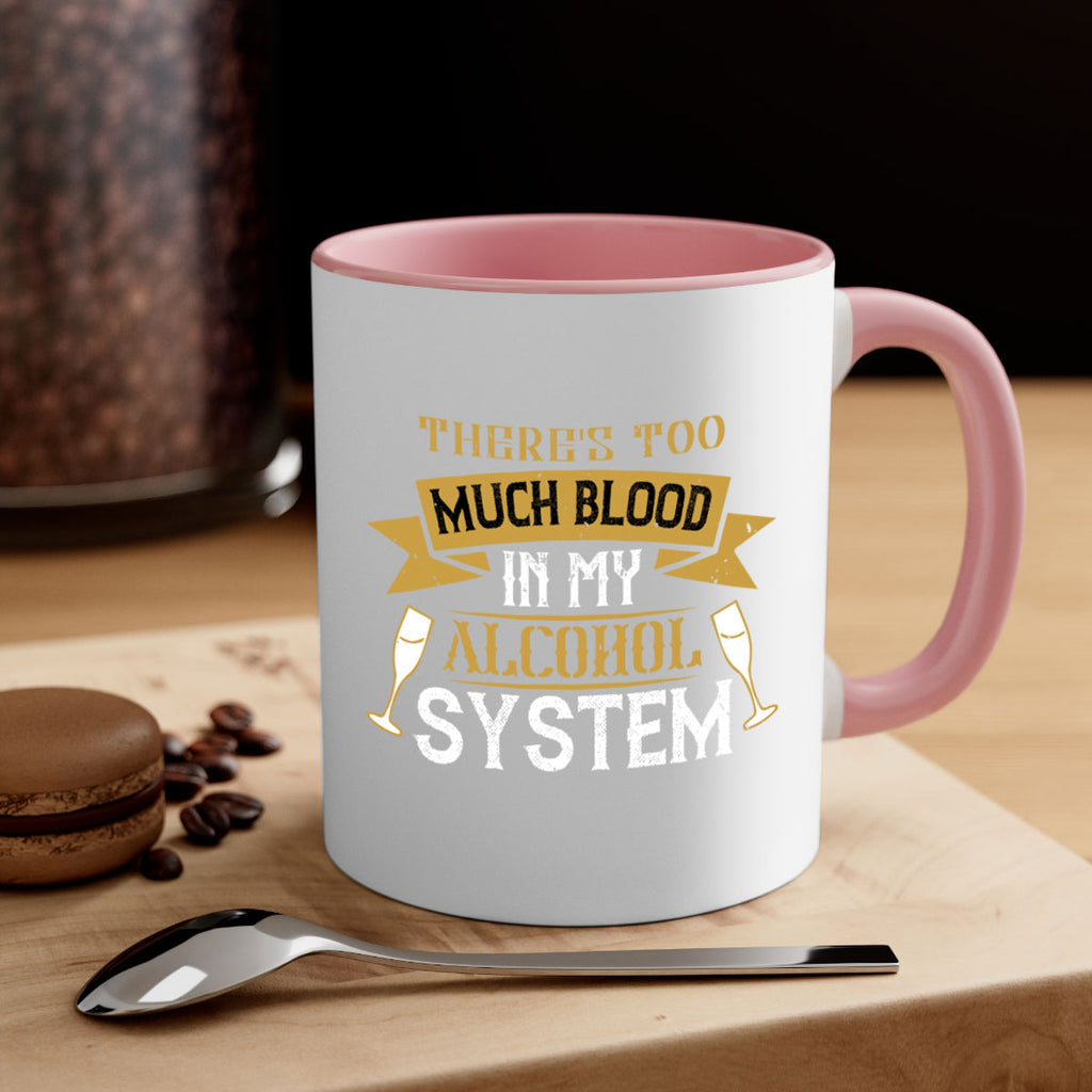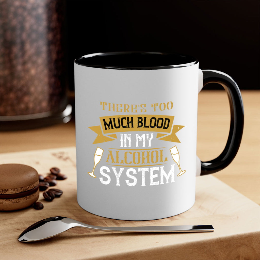 Enjoy the theres too much blood in my alcohol system 24# Mug . Here to bring big gulps of coffee, Tea or any beverage and style, these two-tone coffee mugs help people around the world start the day just right. Choose between 5 different color options and 2 sizes to best complement the design. Each mug comes with a colored handle, a colored interior, and a classy, glossy finish so that your mugs become an instant favorite.