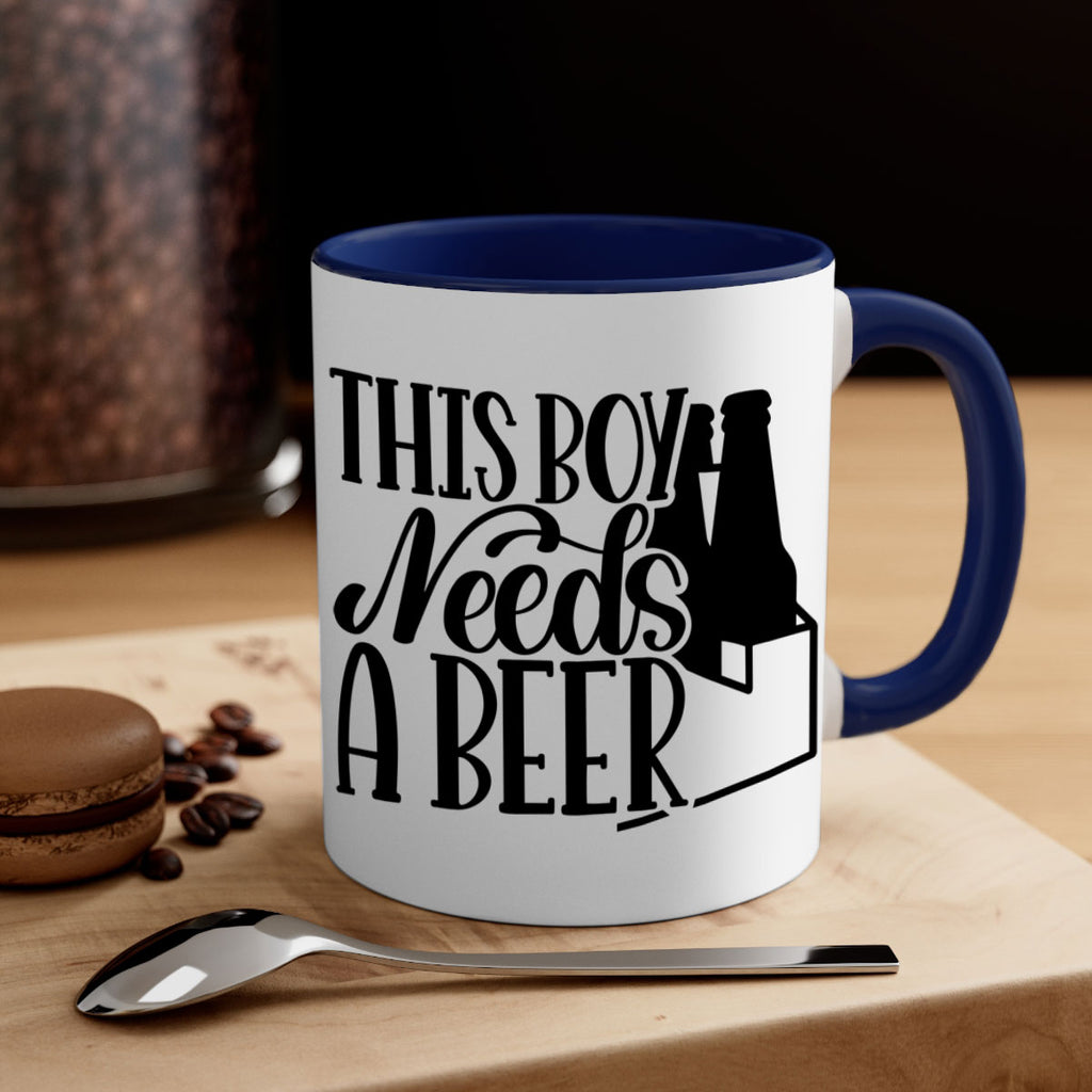 Enjoy the this boy needs a beer 18# Mug . Here to bring big gulps of coffee, Tea or any beverage and style, these two-tone coffee mugs help people around the world start the day just right. Choose between 5 different color options and 2 sizes to best complement the design. Each mug comes with a colored handle, a colored interior, and a classy, glossy finish so that your mugs become an instant favorite.