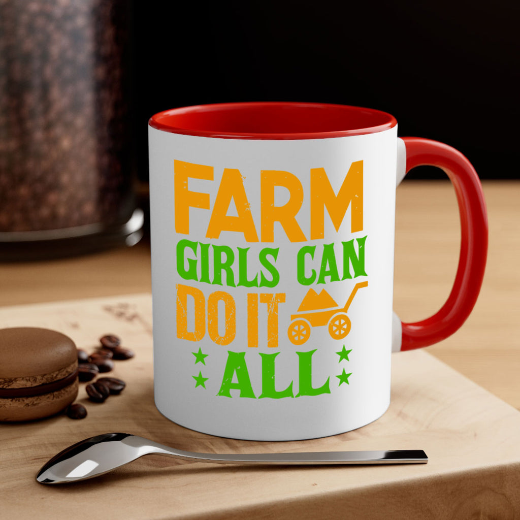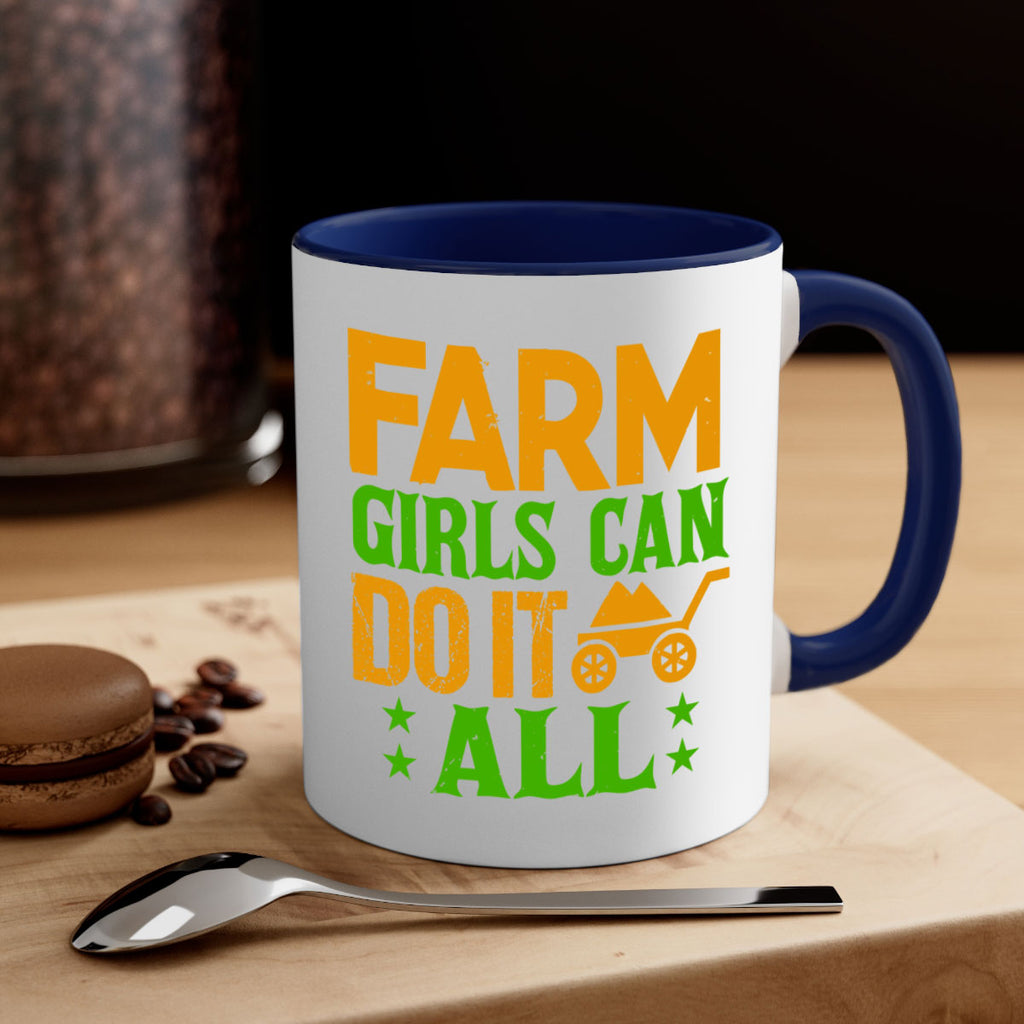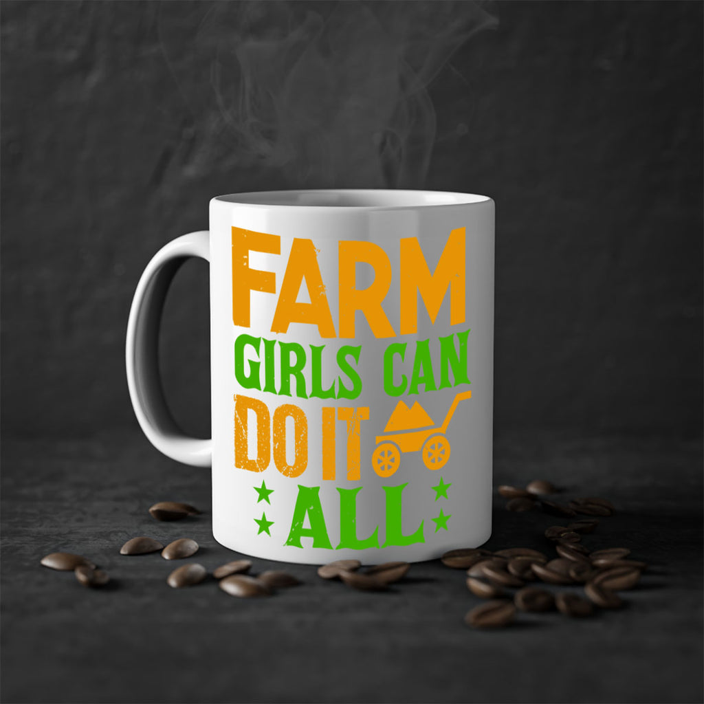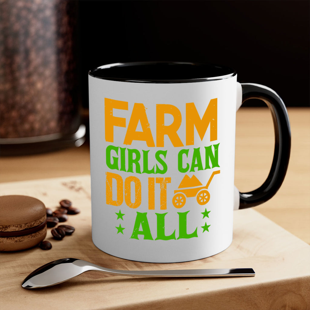 Enjoy the Farm girls can do it all 13# Mug . Here to bring big gulps of coffee, Tea or any beverage and style, these two-tone coffee mugs help people around the world start the day just right. Choose between 5 different color options and 2 sizes to best complement the design. Each mug comes with a colored handle, a colored interior, and a classy, glossy finish so that your mugs become an instant favorite.
