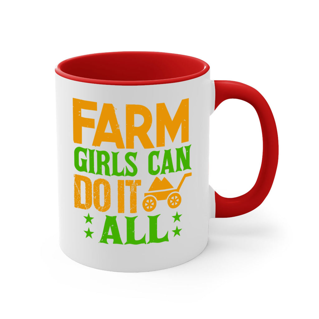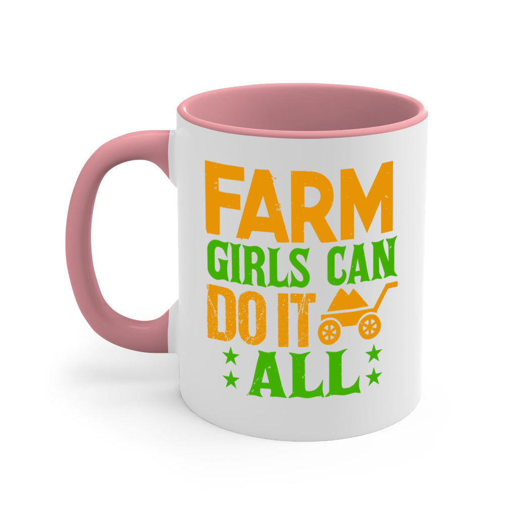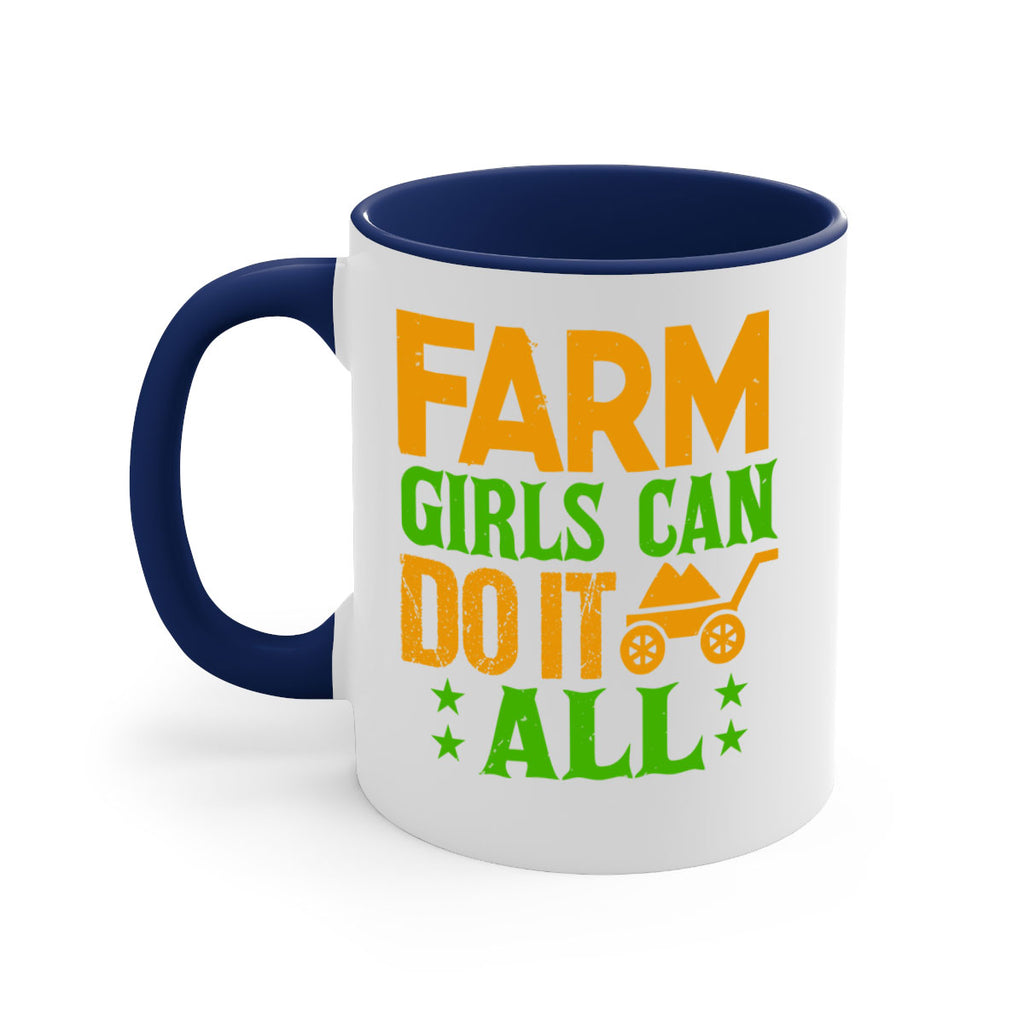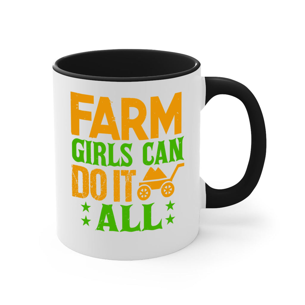 Enjoy the Farm girls can do it all 13# Mug . Here to bring big gulps of coffee, Tea or any beverage and style, these two-tone coffee mugs help people around the world start the day just right. Choose between 5 different color options and 2 sizes to best complement the design. Each mug comes with a colored handle, a colored interior, and a classy, glossy finish so that your mugs become an instant favorite.