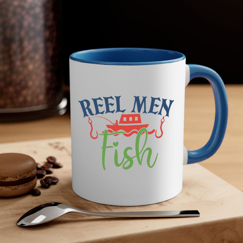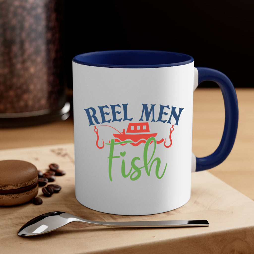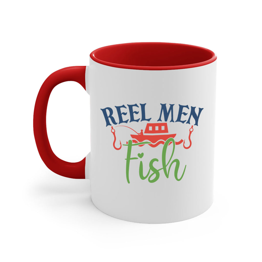 Enjoy the reel men fish 196# Mug . Here to bring big gulps of coffee, Tea or any beverage and style, these two-tone coffee mugs help people around the world start the day just right. Choose between 5 different color options and 2 sizes to best complement the design. Each mug comes with a colored handle, a colored interior, and a classy, glossy finish so that your mugs become an instant favorite.