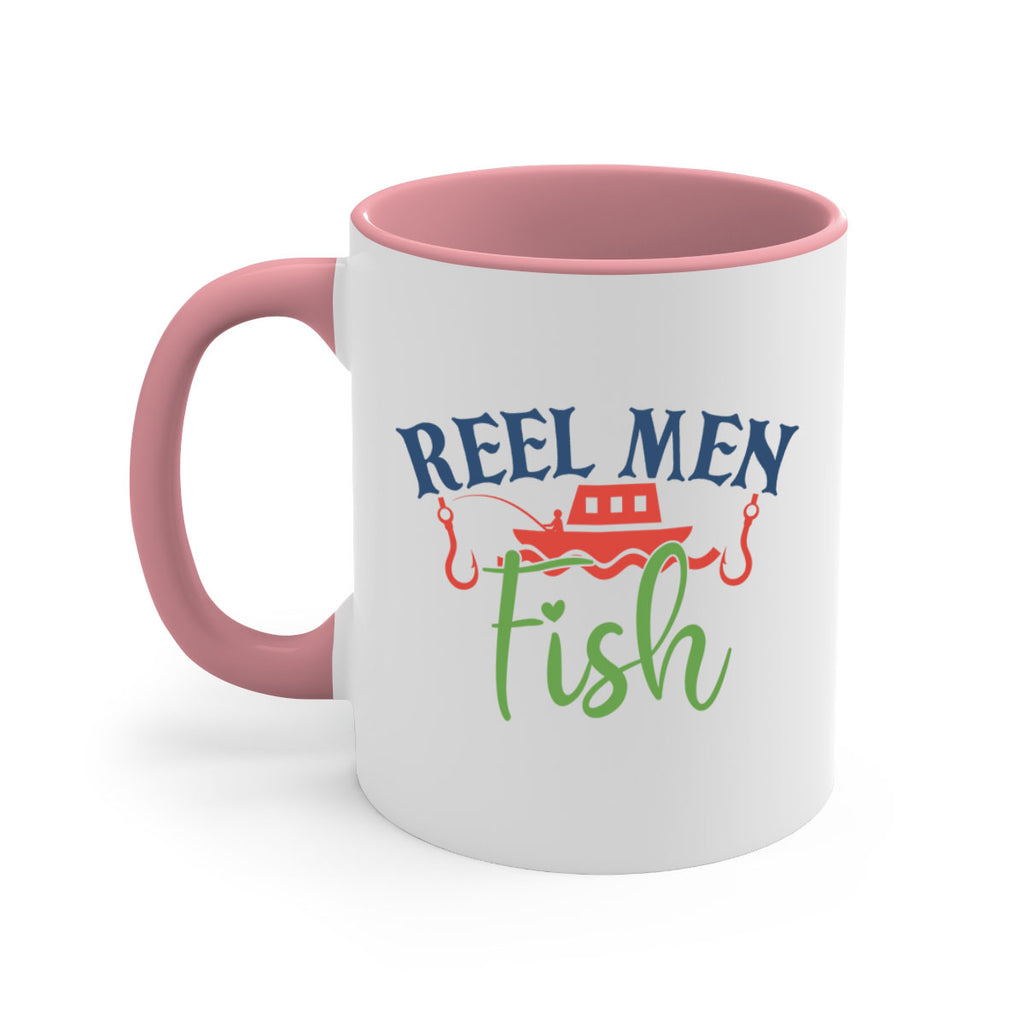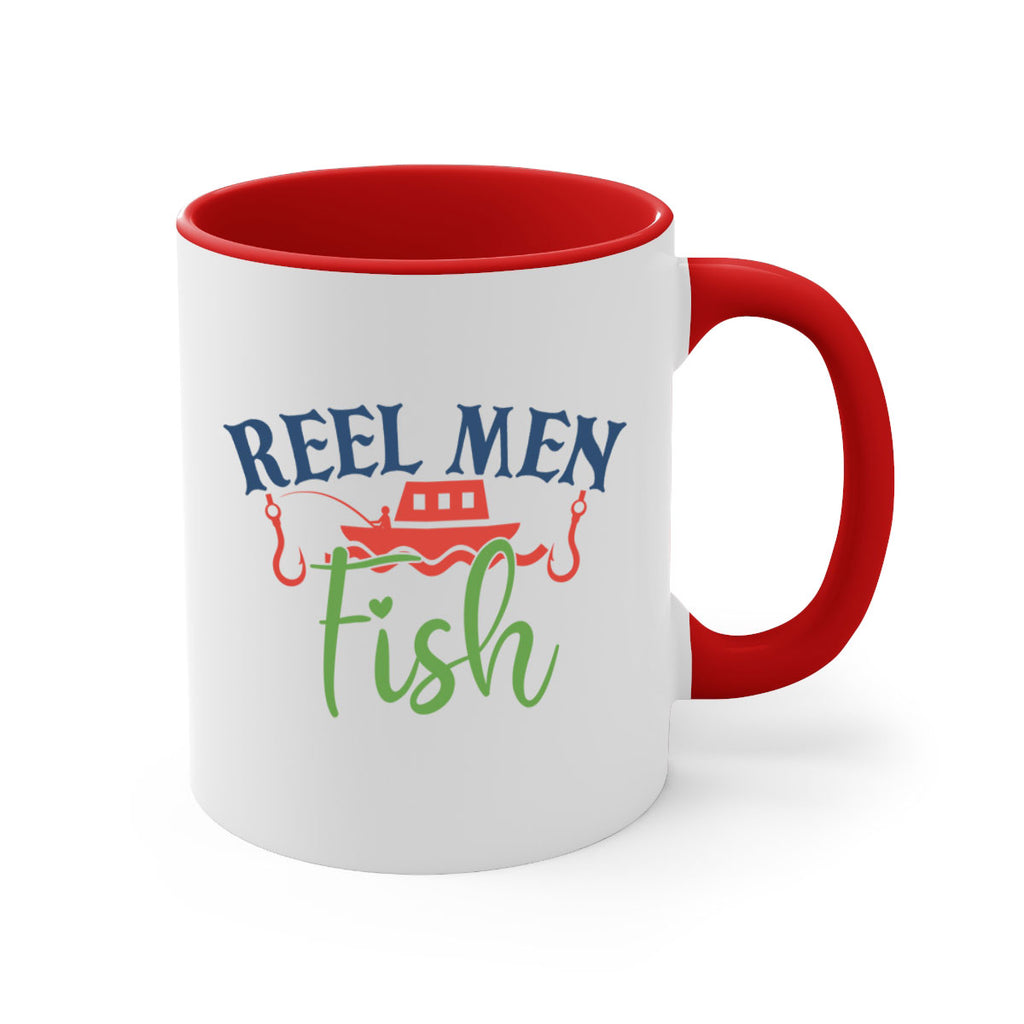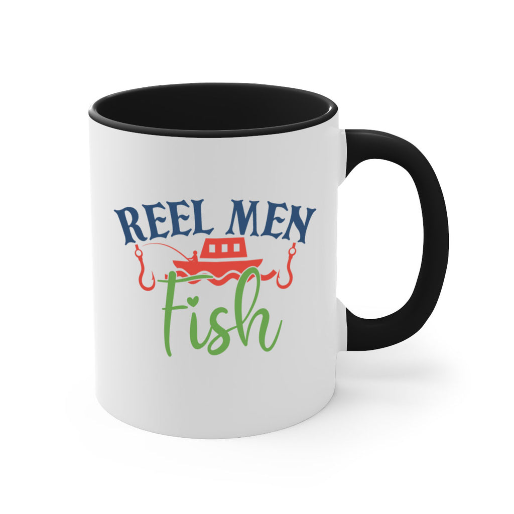 Enjoy the reel men fish 196# Mug . Here to bring big gulps of coffee, Tea or any beverage and style, these two-tone coffee mugs help people around the world start the day just right. Choose between 5 different color options and 2 sizes to best complement the design. Each mug comes with a colored handle, a colored interior, and a classy, glossy finish so that your mugs become an instant favorite.
