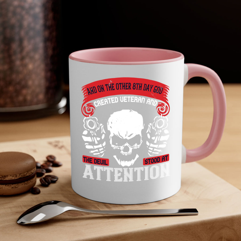 Enjoy the and on the other th day god created veteran and the devil stood at attention 74# Mug . Here to bring big gulps of coffee, Tea or any beverage and style, these two-tone coffee mugs help people around the world start the day just right. Choose between 5 different color options and 2 sizes to best complement the design. Each mug comes with a colored handle, a colored interior, and a classy, glossy finish so that your mugs become an instant favorite.