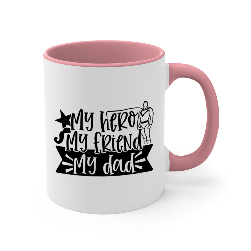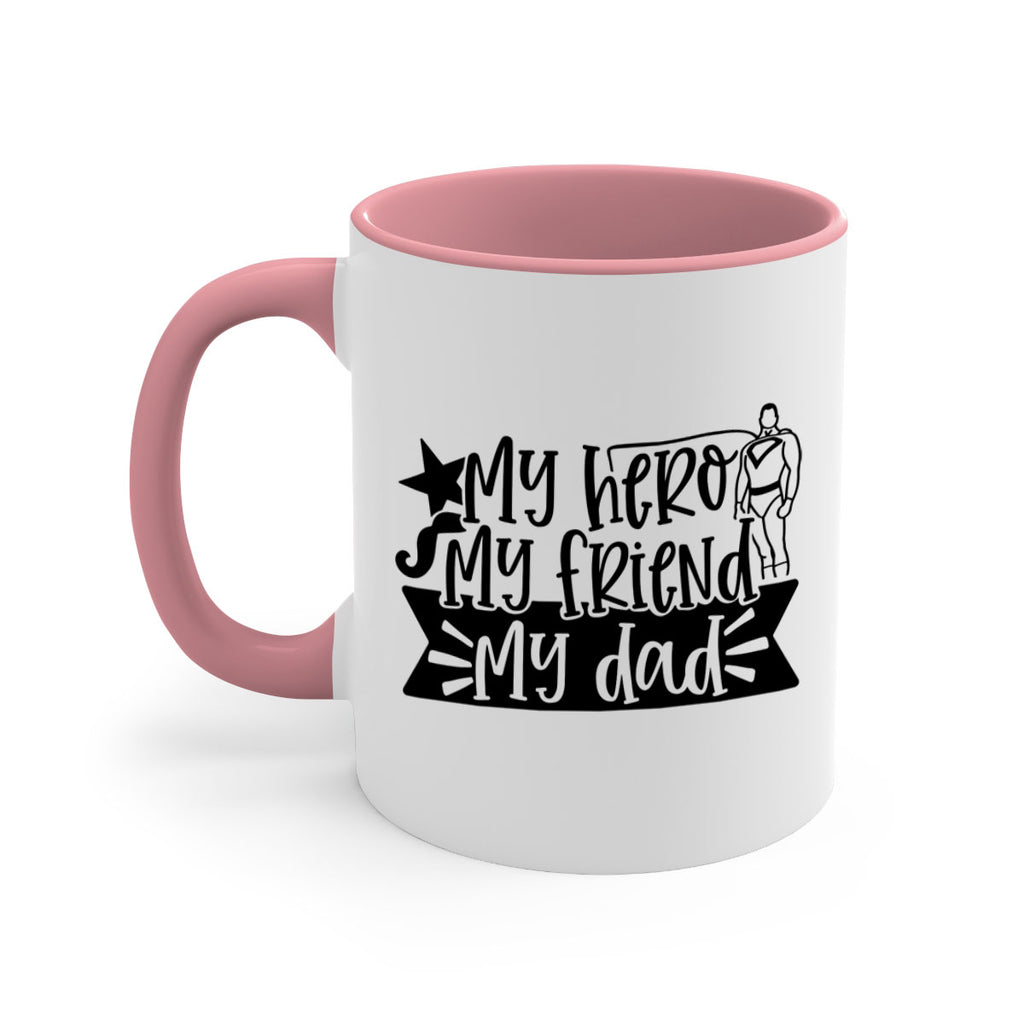 Enjoy the my hero my friend my dad 25# Mug . Here to bring big gulps of coffee, Tea or any beverage and style, these two-tone coffee mugs help people around the world start the day just right. Choose between 5 different color options and 2 sizes to best complement the design. Each mug comes with a colored handle, a colored interior, and a classy, glossy finish so that your mugs become an instant favorite.