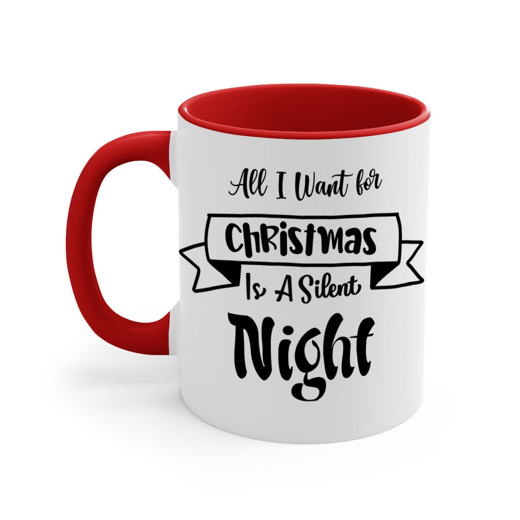 Enjoy the all i want for christmas is a silent night style 43# Mug . Here to bring big gulps of coffee, Tea or any beverage and style, these two-tone coffee mugs help people around the world start the day just right. Choose between 5 different color options and 2 sizes to best complement the design. Each mug comes with a colored handle, a colored interior, and a classy, glossy finish so that your mugs become an instant favorite.