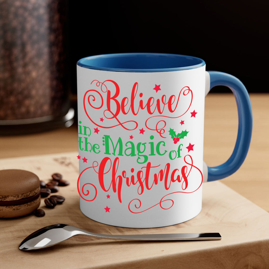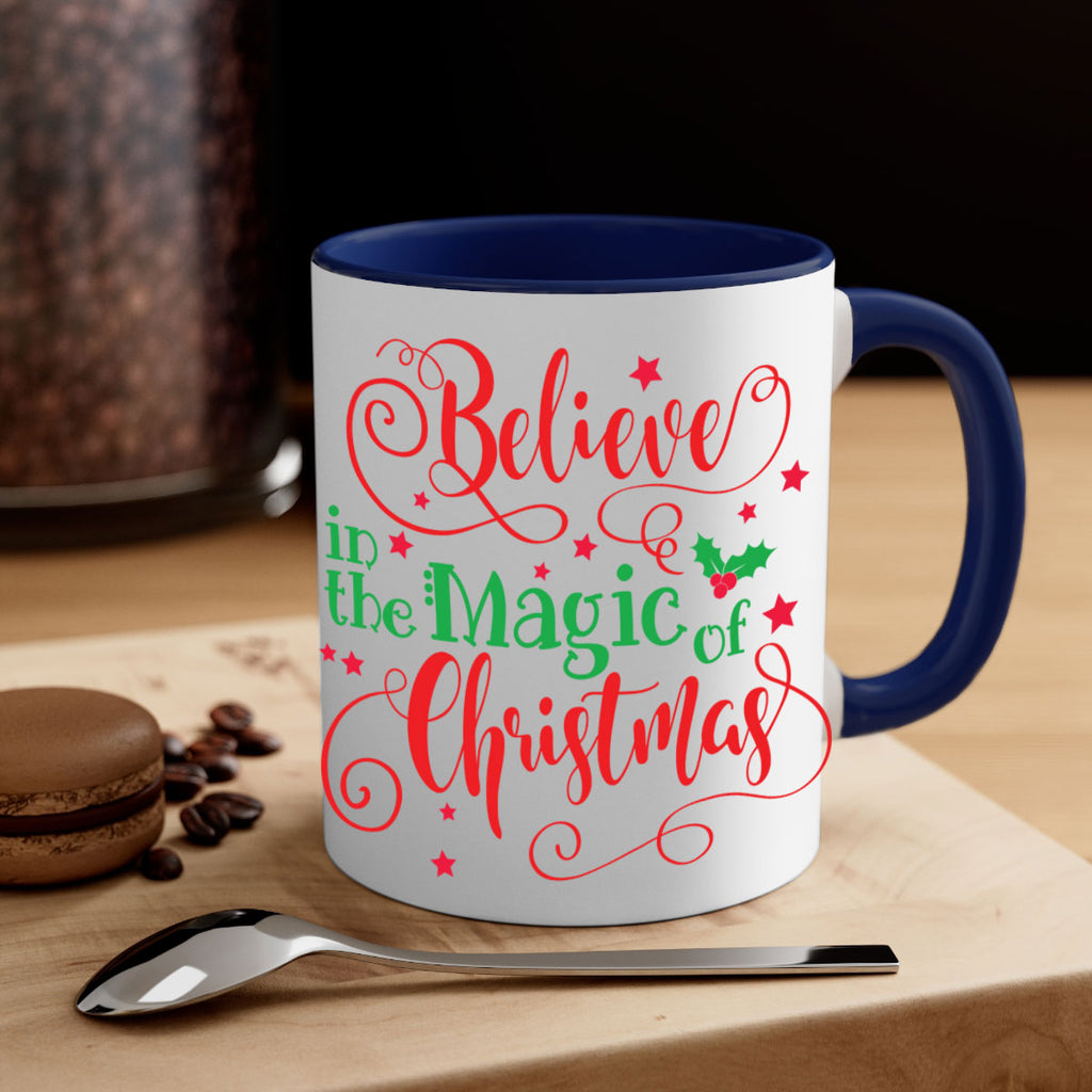 Enjoy the believe in the magic of christmas style 77# Mug . Here to bring big gulps of coffee, Tea or any beverage and style, these two-tone coffee mugs help people around the world start the day just right. Choose between 5 different color options and 2 sizes to best complement the design. Each mug comes with a colored handle, a colored interior, and a classy, glossy finish so that your mugs become an instant favorite.