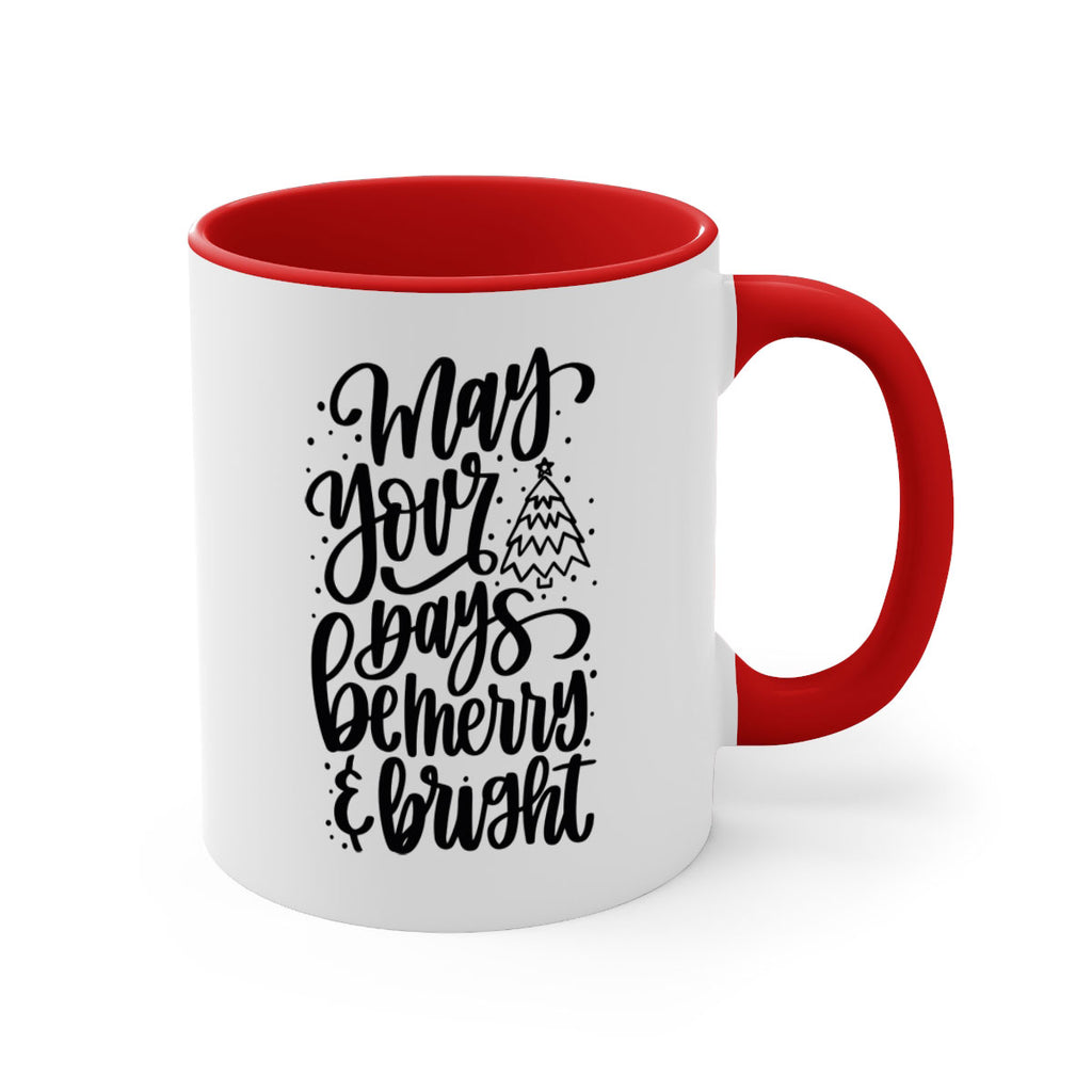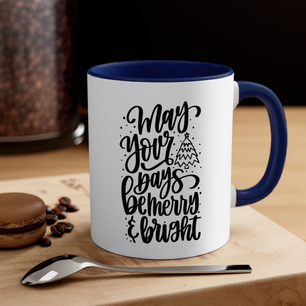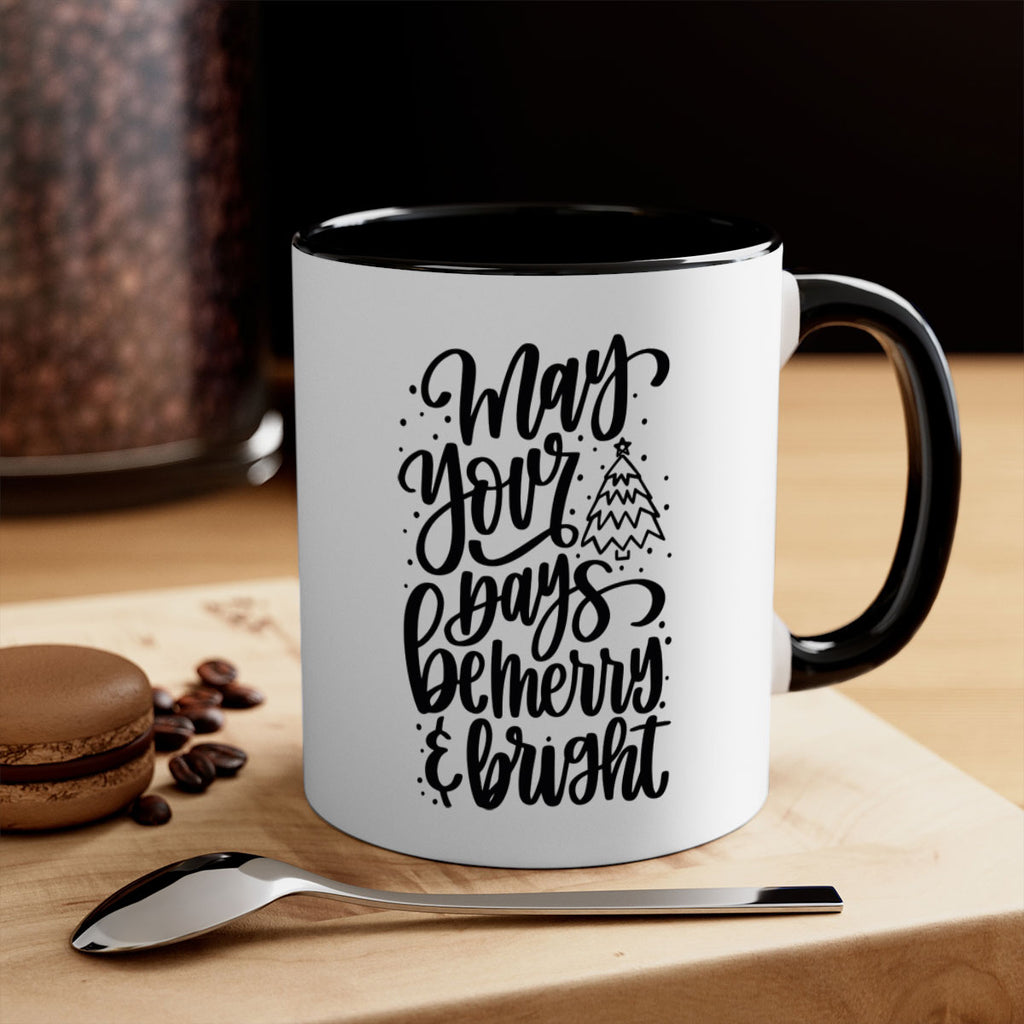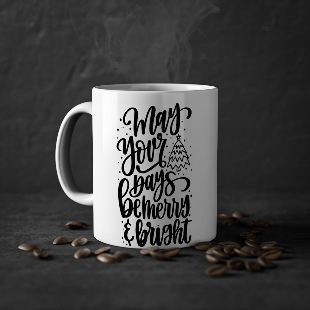 Enjoy the may your days be merry bright 99# Mug . Here to bring big gulps of coffee, Tea or any beverage and style, these two-tone coffee mugs help people around the world start the day just right. Choose between 5 different color options and 2 sizes to best complement the design. Each mug comes with a colored handle, a colored interior, and a classy, glossy finish so that your mugs become an instant favorite.
