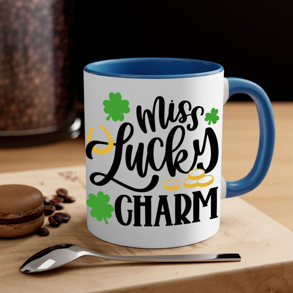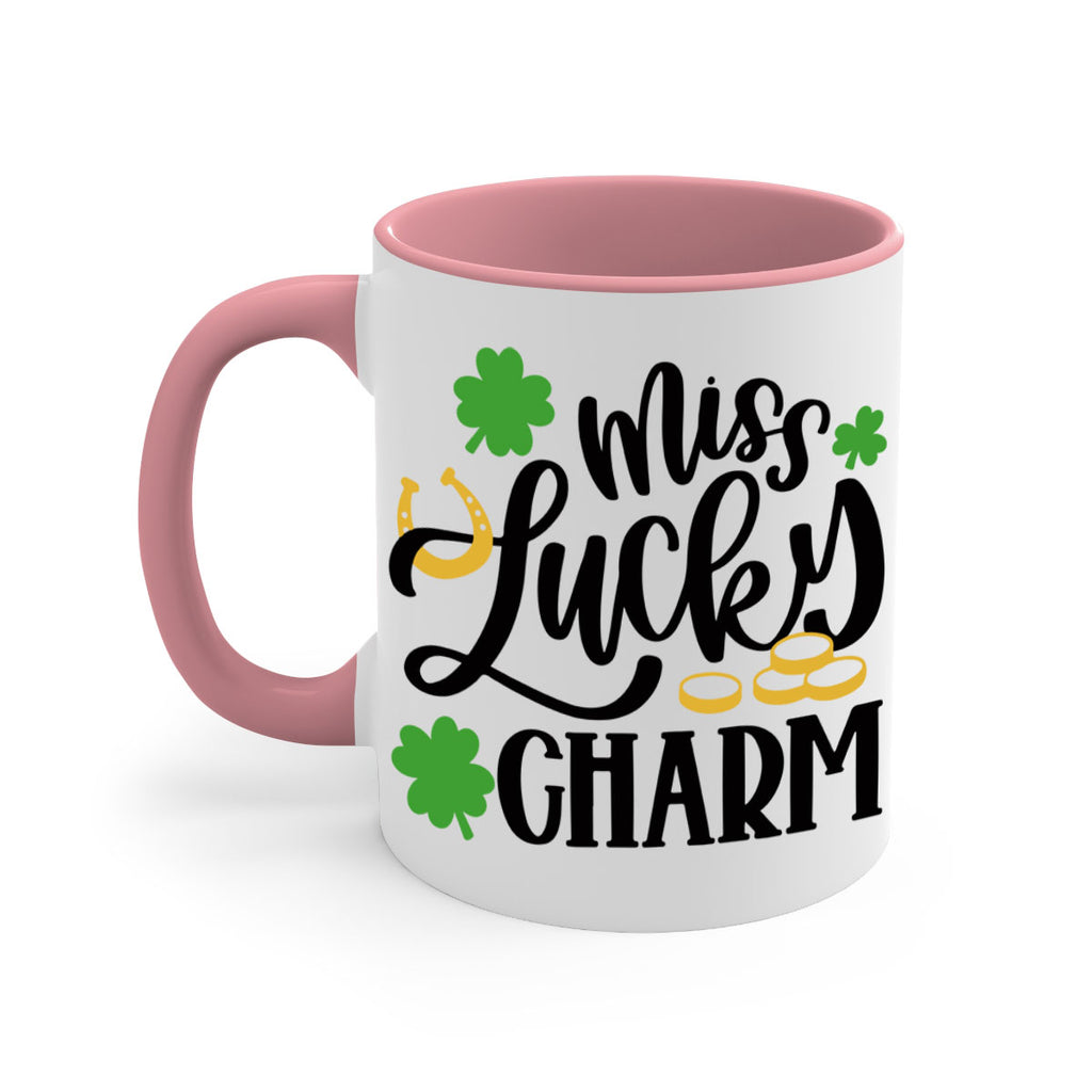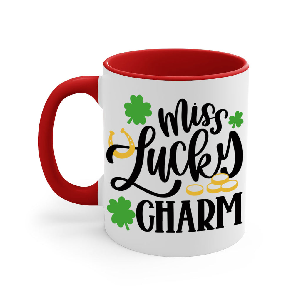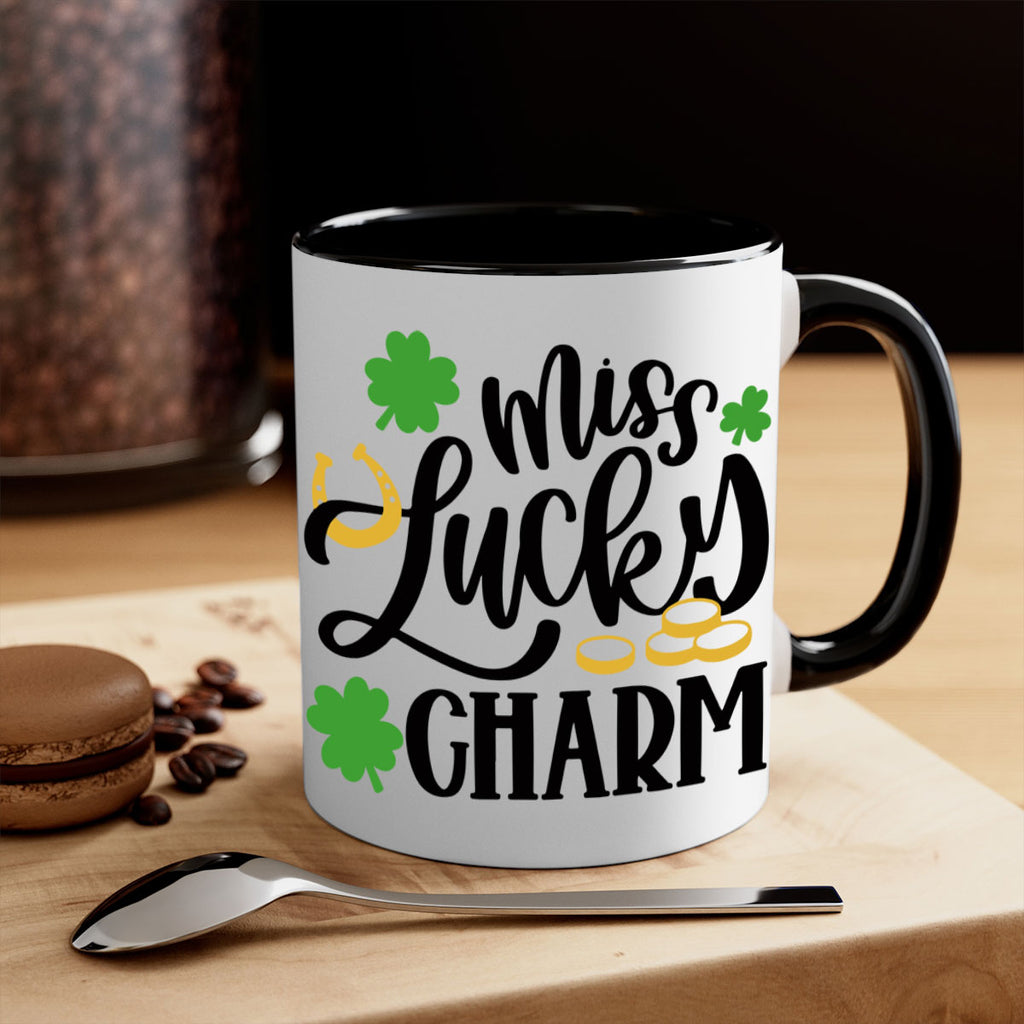 Enjoy the Miss Lucky Charm Style 47# Mug . Here to bring big gulps of coffee, Tea or any beverage and style, these two-tone coffee mugs help people around the world start the day just right. Choose between 5 different color options and 2 sizes to best complement the design. Each mug comes with a colored handle, a colored interior, and a classy, glossy finish so that your mugs become an instant favorite.