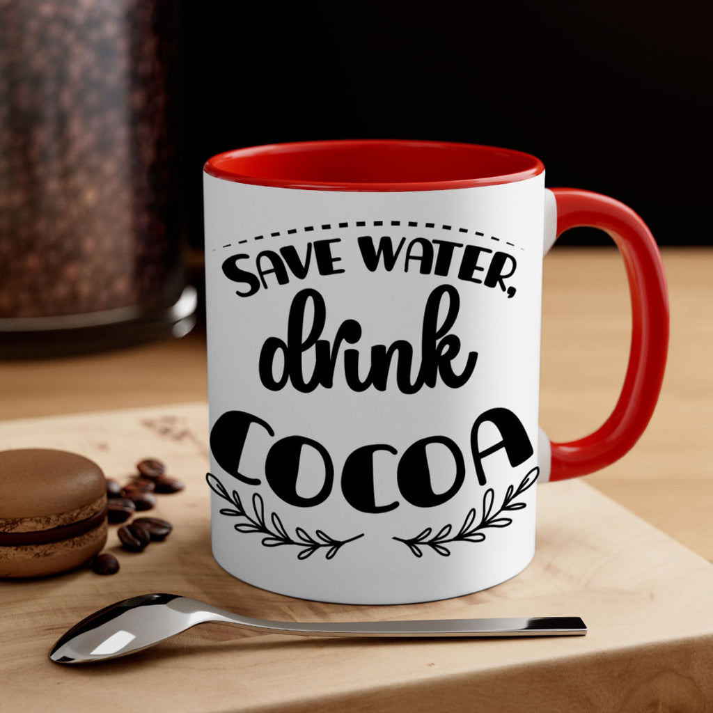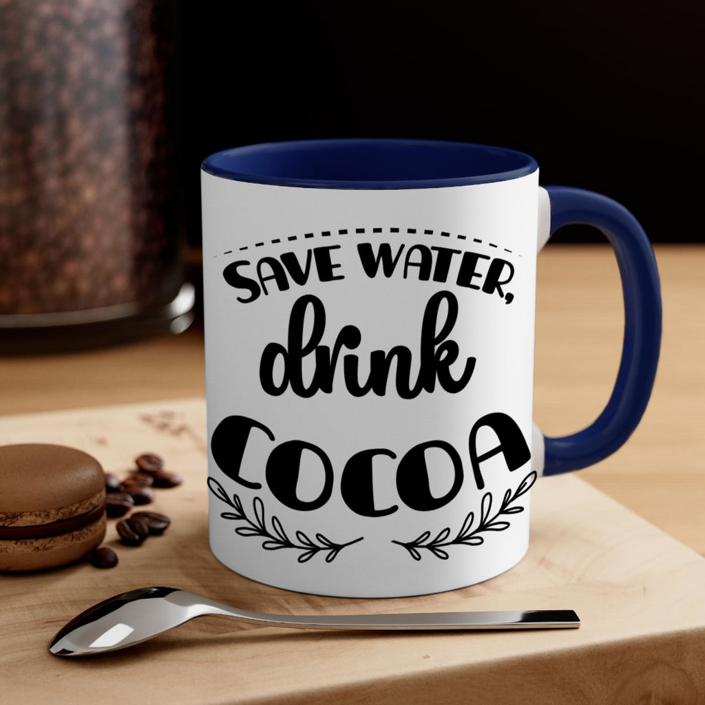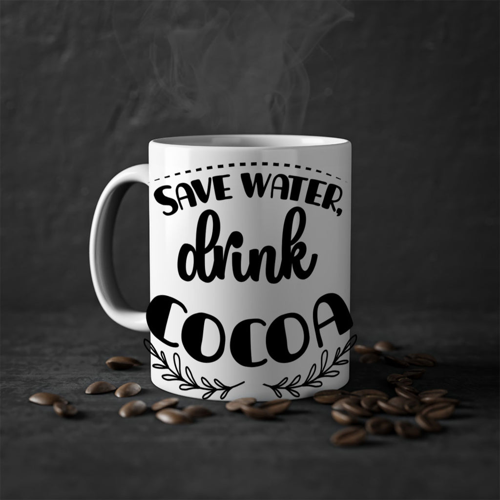 Enjoy the save water, drink cocoa style 1168# Mug . Here to bring big gulps of coffee, Tea or any beverage and style, these two-tone coffee mugs help people around the world start the day just right. Choose between 5 different color options and 2 sizes to best complement the design. Each mug comes with a colored handle, a colored interior, and a classy, glossy finish so that your mugs become an instant favorite.